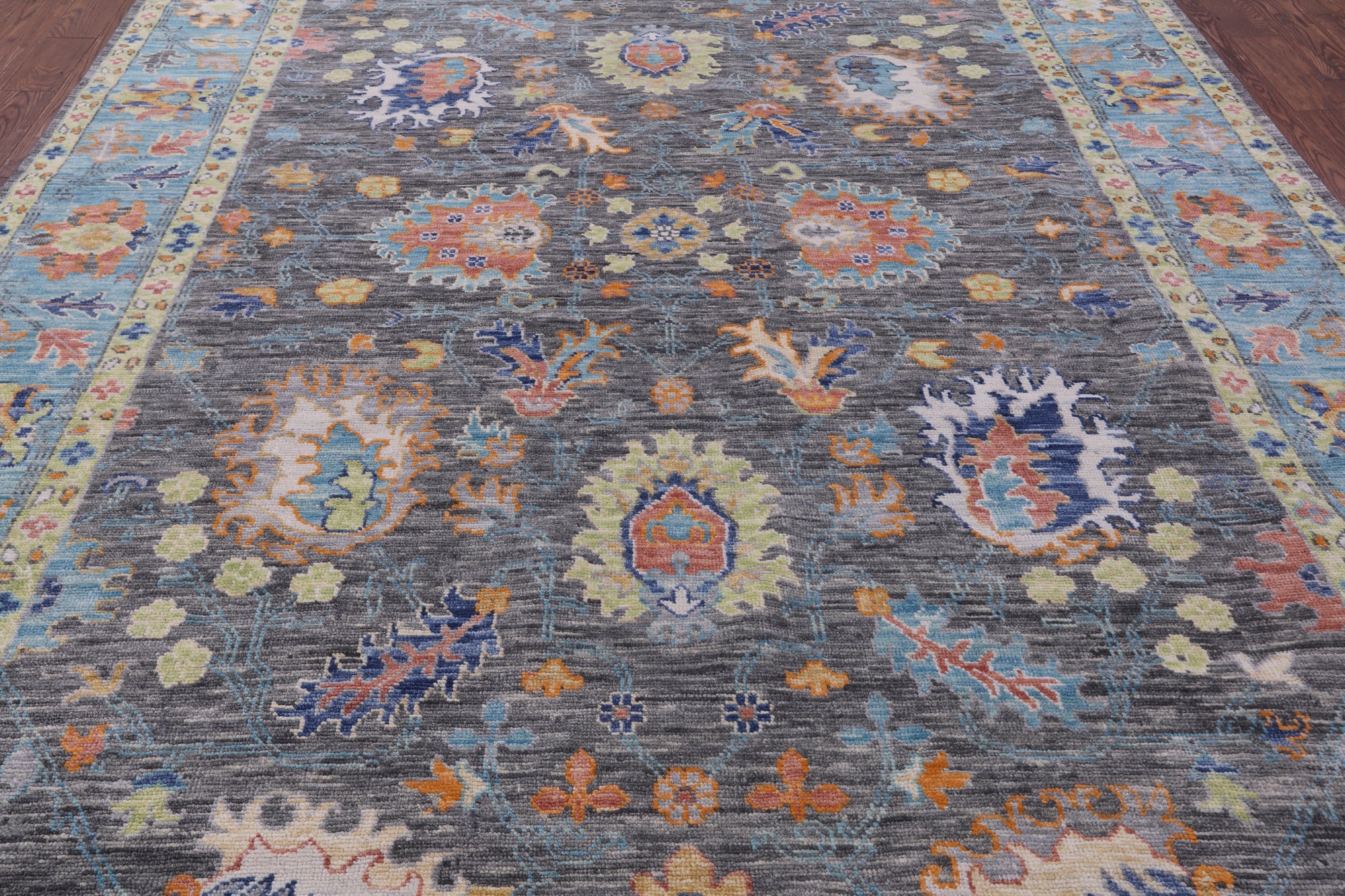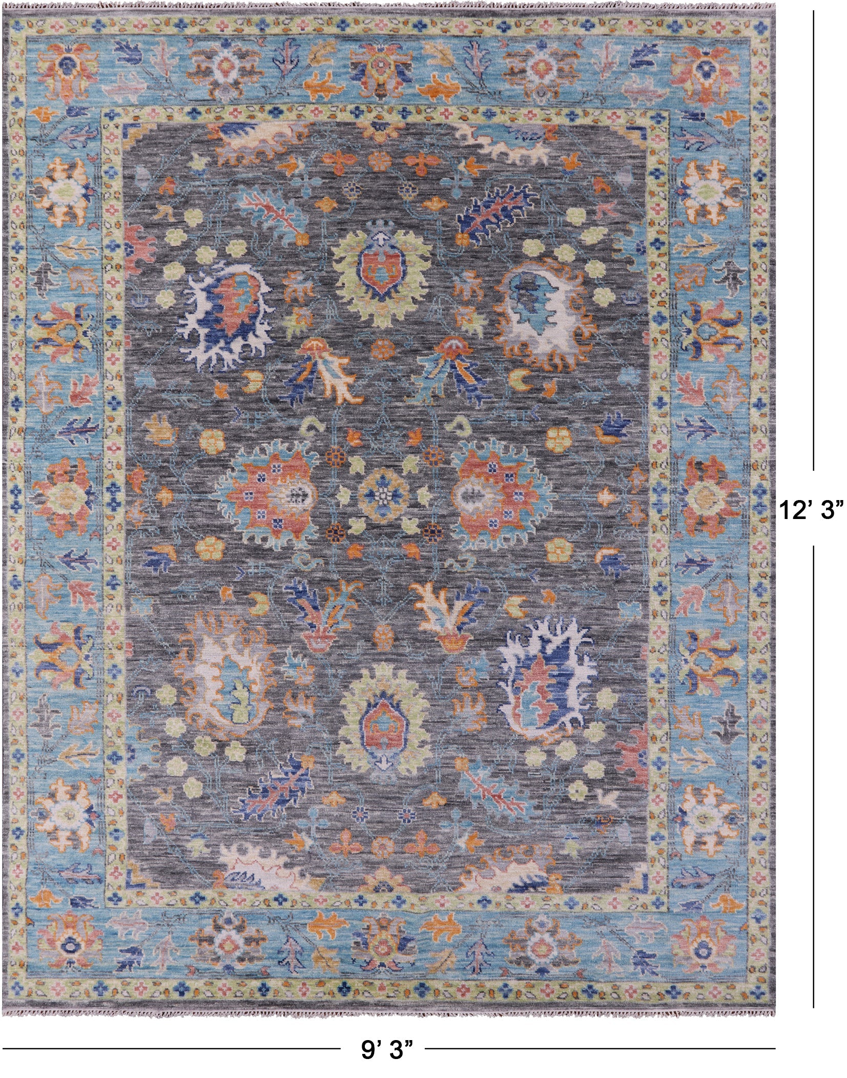 Grey 9' 3" X 12' 3" Turkish Angora Oushak Handmade Rug - Q19084
