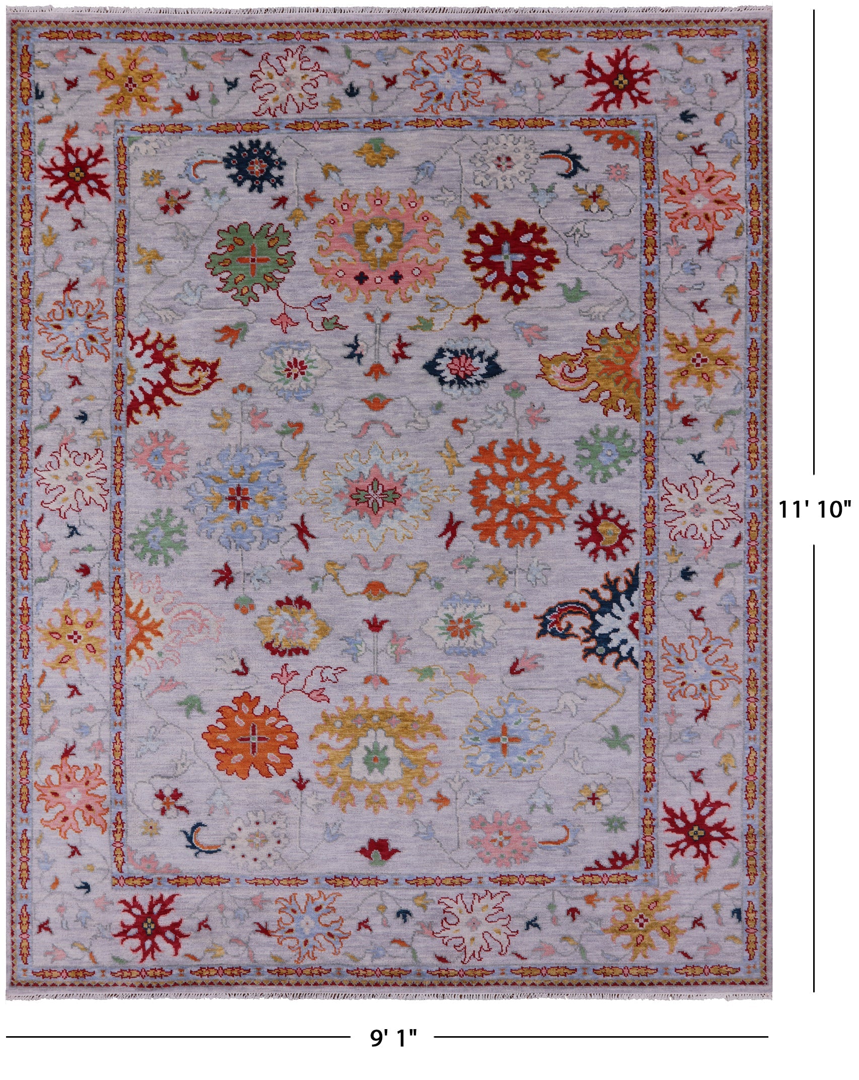 Grey 9' 1" X 11' 10" Turkish Angora Oushak Handmade Wool Rug - Q11705