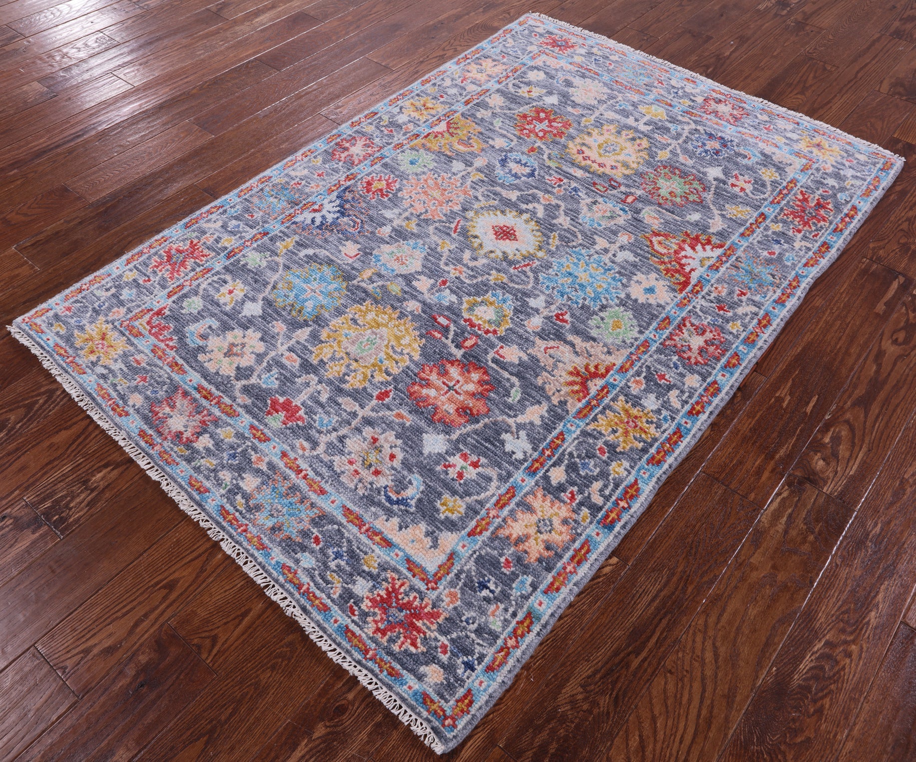 Grey Turkish Angora Oushak Handmade Wool Rug 4' 1" X 6' 1" - Q15007 is backordered and will ship as soon as it is back in stock.