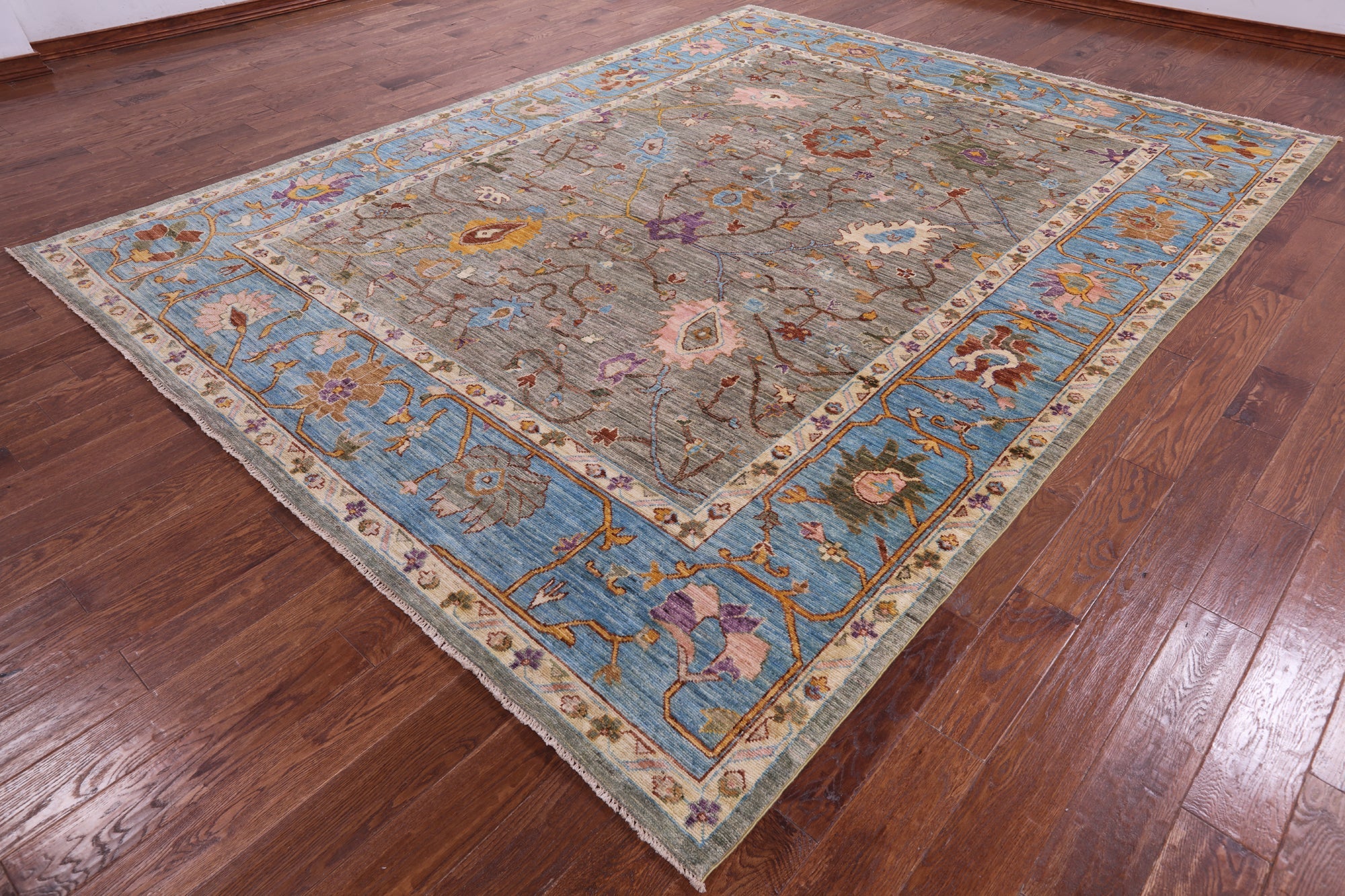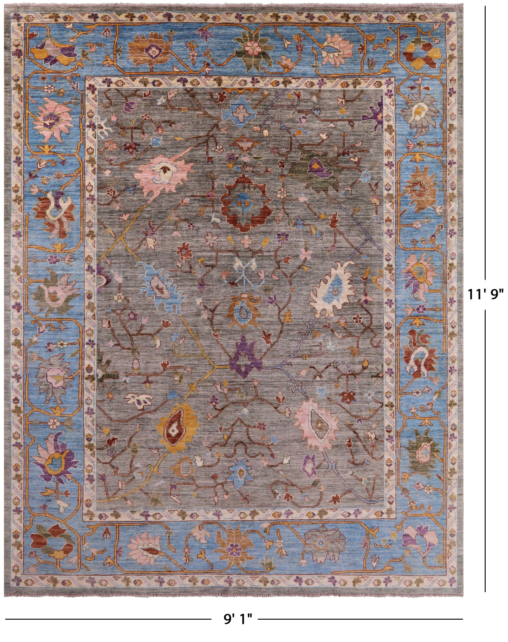 Grey 9' 1" X 11' 9" Turkish Oushak Hand Knotted Wool Rug - Q14009