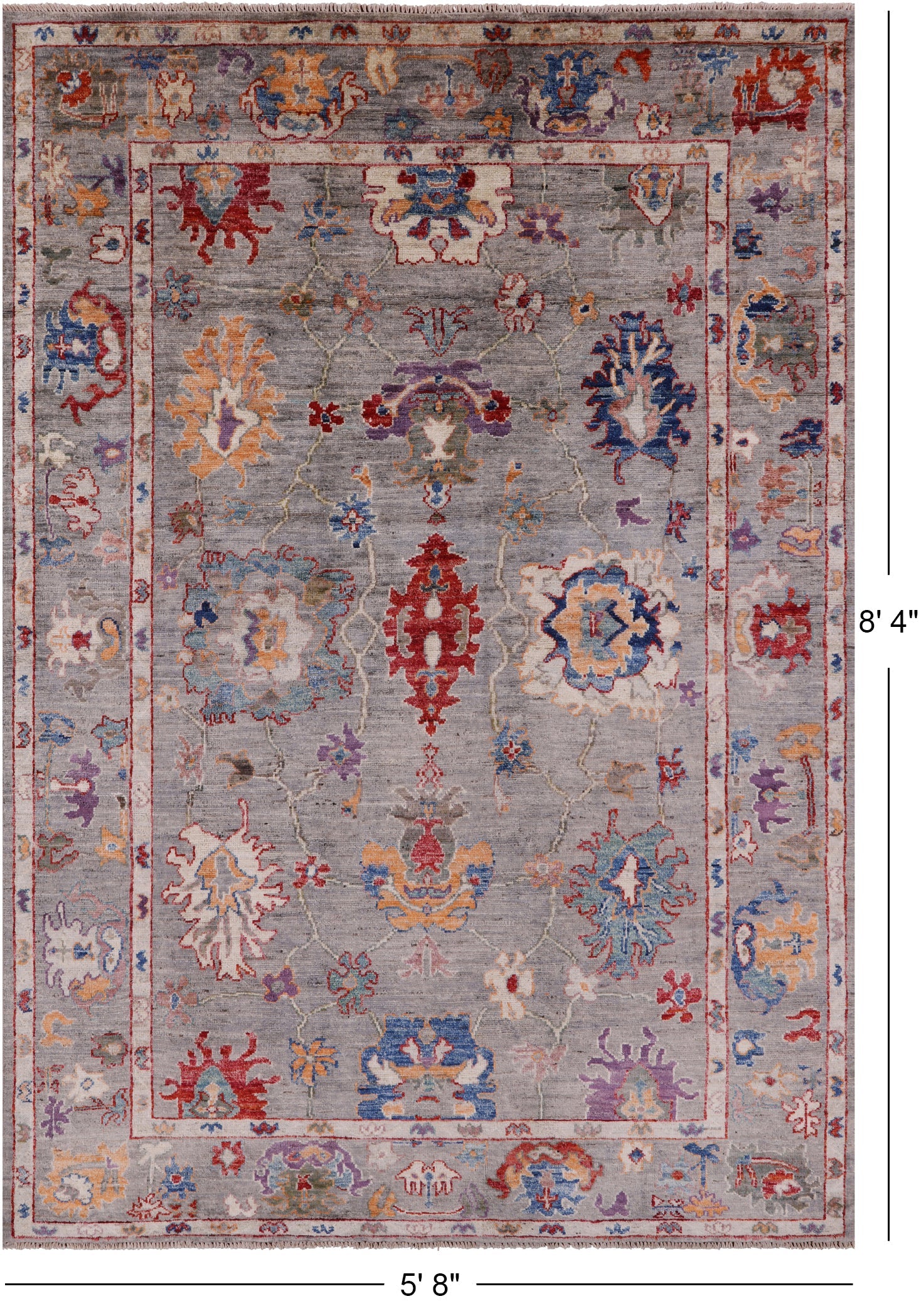 Grey 5' 8" X 8' 4" Turkish Oushak Hand Knotted Wool Rug - Q9688
