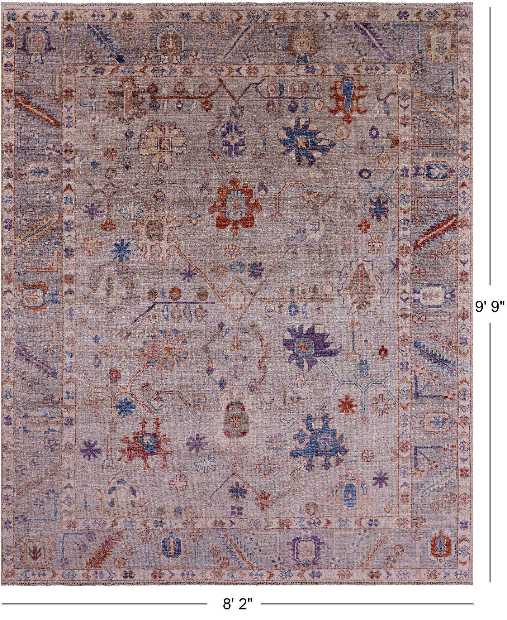 Grey Turkish Oushak Hand Knotted Wool Rug 8' 2" X 9' 9" - Q9724