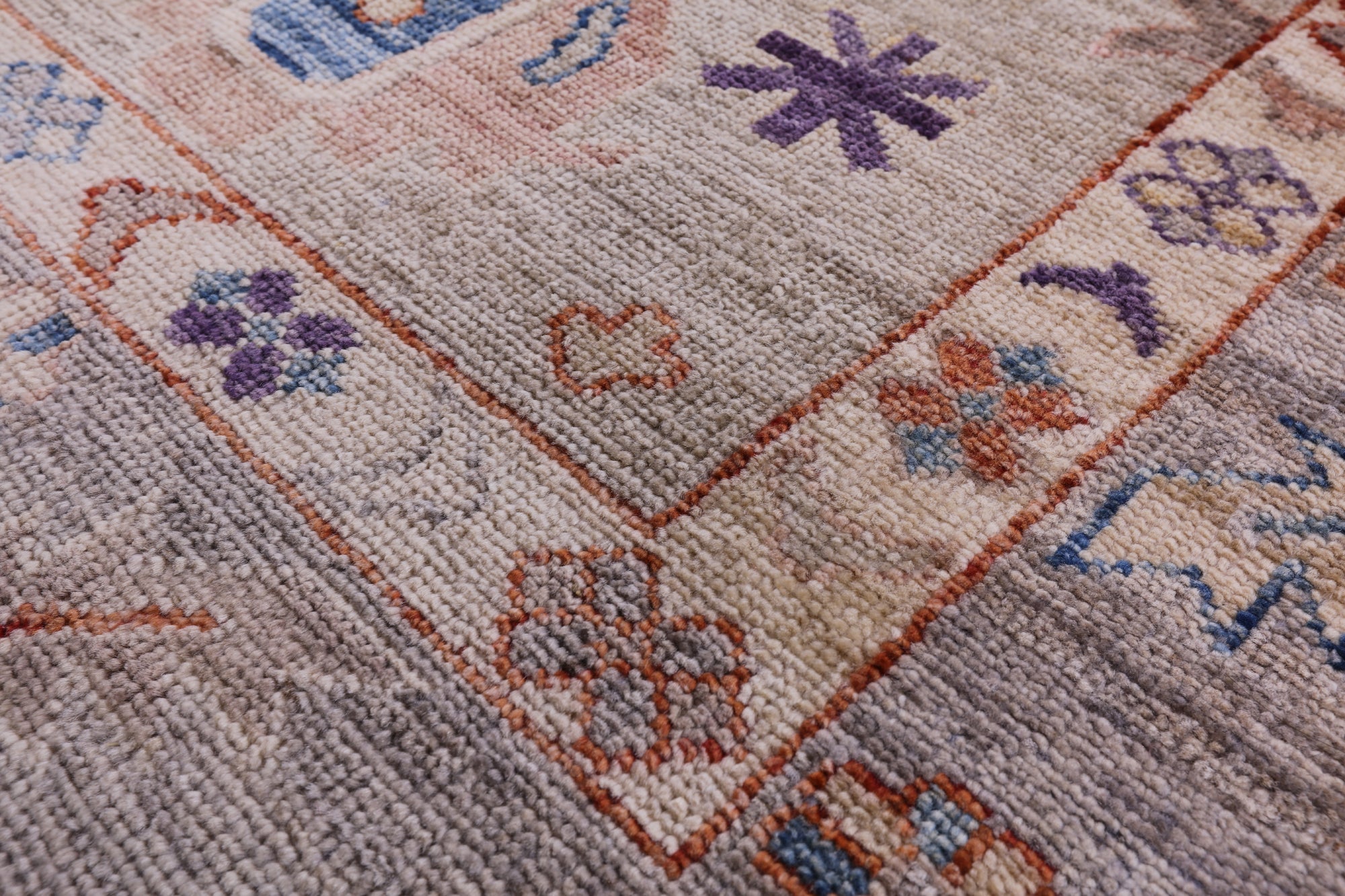 Oushak rugs, hand-knotted with meticulous craftsmanship, are celebrated for their timeless beauty, luxurious feel, and vibrant colors. These rugs feature a harmonious blend of muted earthy tones and colorful hues, with intricate designs inspired by traditional Turkish motifs. Their versatile style seamlessly complements various interiors, from traditional to modern. With a dense pile and careful hand-knotting techniques, Oushak handmade rugs not only enhance visual appeal but also stand as enduring pieces, adding a touch of refined elegance and a splash of color to any space.