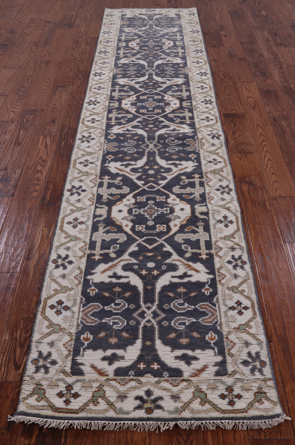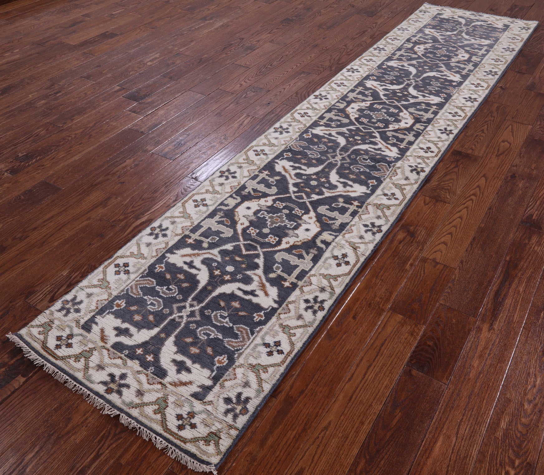 Grey Turkish Oushak Hand Knotted Wool Runner Rug 2' 7" X 11' 9" - Q1110 is backordered and will ship as soon as it is back in stock.