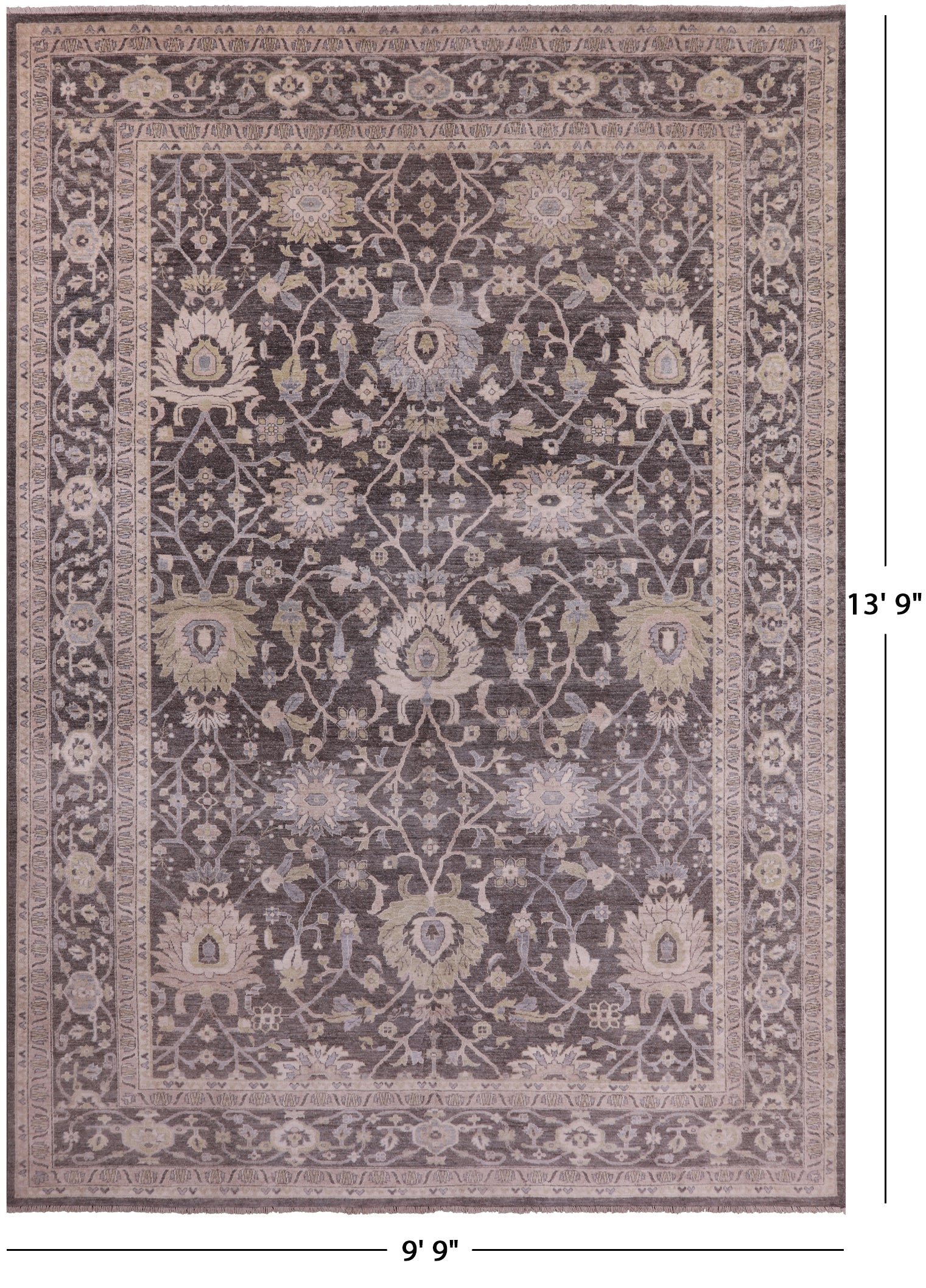 Grey 9' 9" X 13' 9" Turkish Oushak Handmade Wool Rug - Q9539