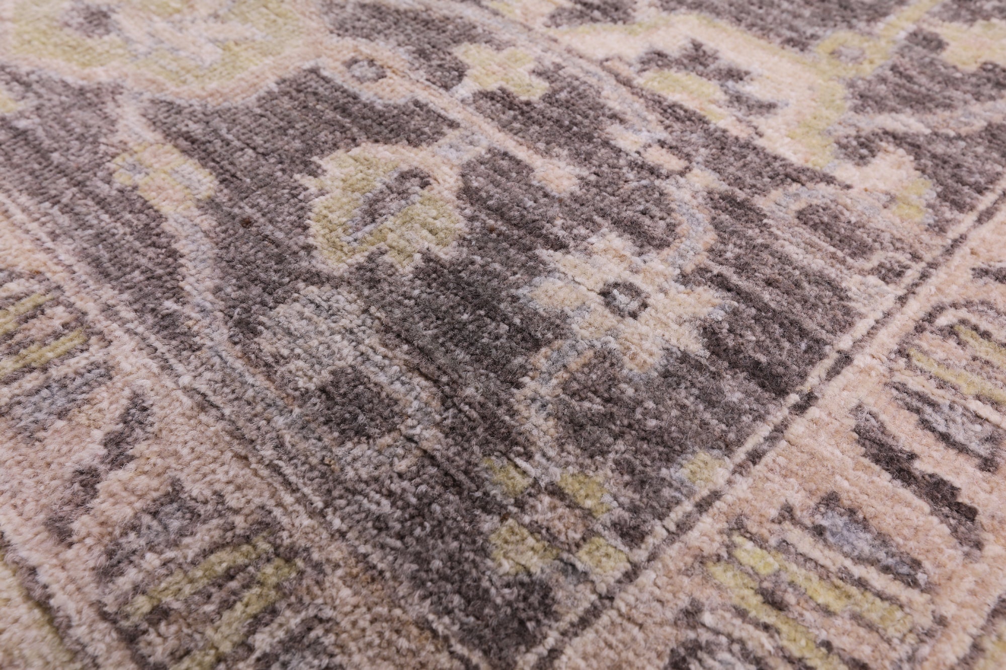 Oushak rugs, hand-knotted with meticulous craftsmanship, are celebrated for their timeless beauty, luxurious feel, and vibrant colors. These rugs feature a harmonious blend of muted earthy tones and colorful hues, with intricate designs inspired by traditional Turkish motifs. Their versatile style seamlessly complements various interiors, from traditional to modern. With a dense pile and careful hand-knotting techniques, Oushak handmade rugs not only enhance visual appeal but also stand as enduring pieces, adding a touch of refined elegance and a splash of color to any space.