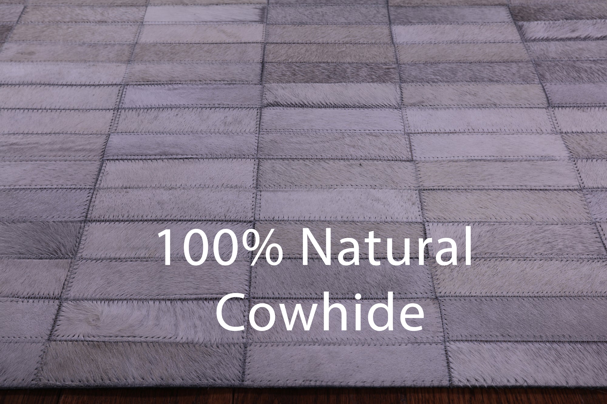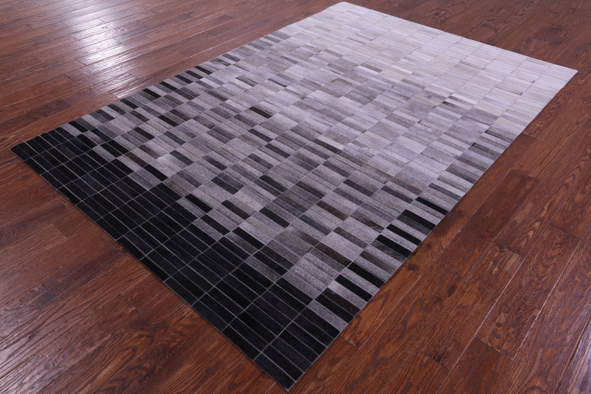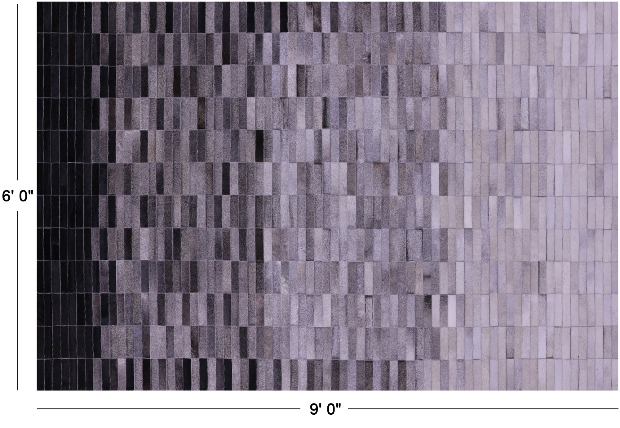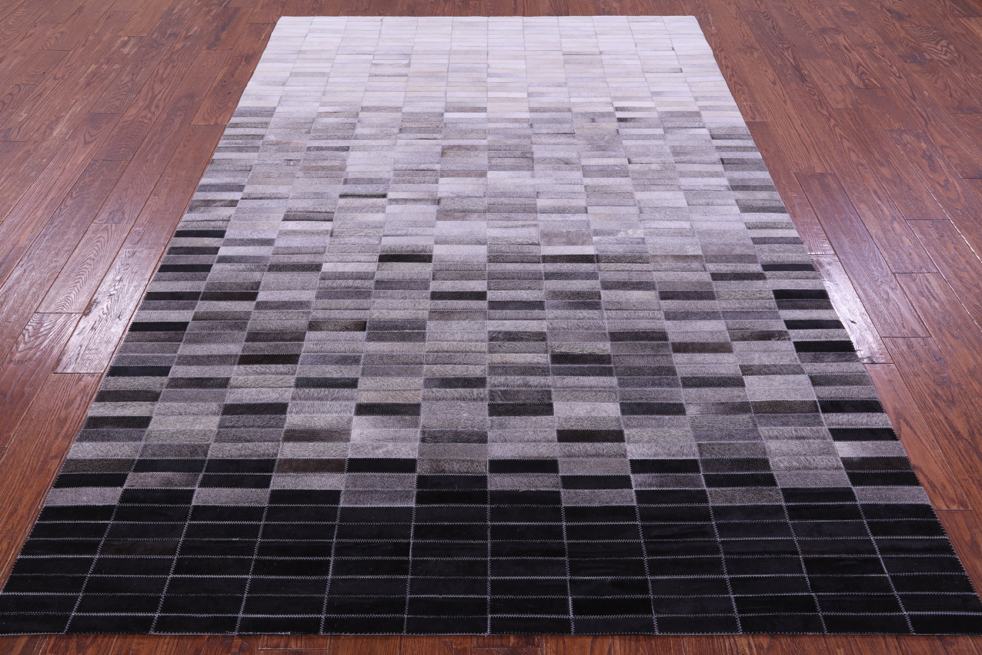 6' 0" X 9' 0" Grey & White Gradient Brickwork Natural Cowhide Hand Stitched Rug - C5724