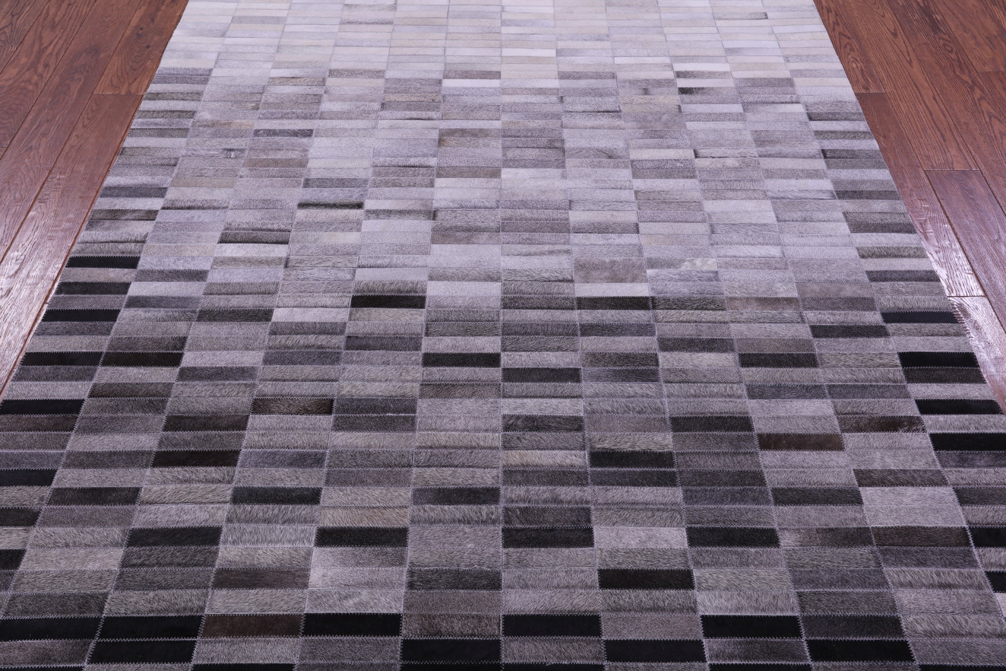 6' 0" X 9' 0" Grey & White Gradient Brickwork Natural Cowhide Hand Stitched Rug - C5724 is backordered and will ship as soon as it is back in stock.