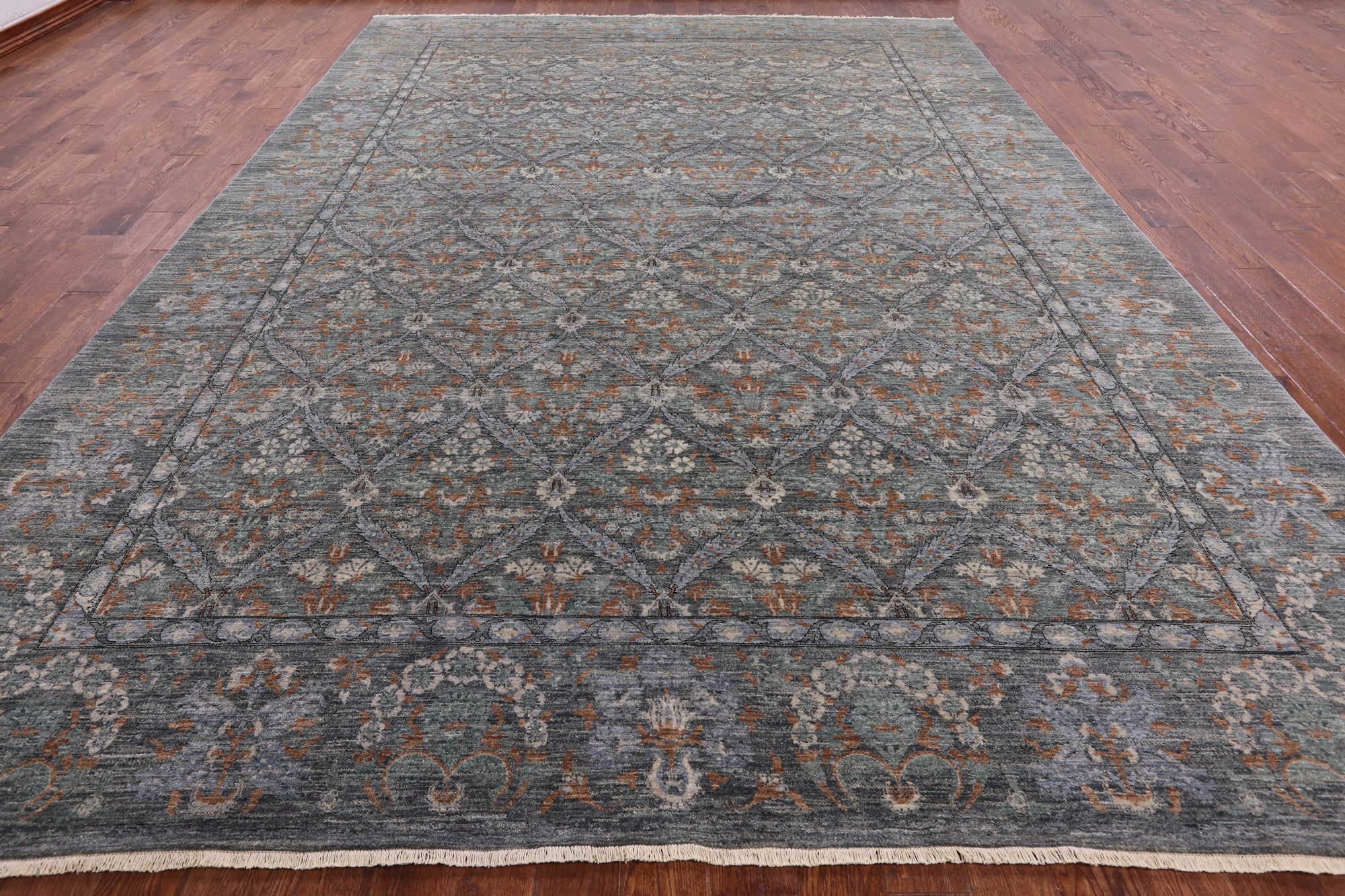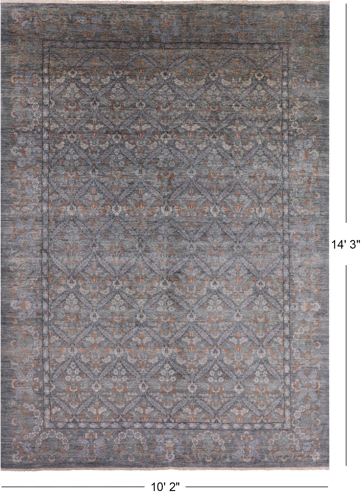Grey William Morris Hand Knotted Rug 10' 2" X 14' 3" - Q6576