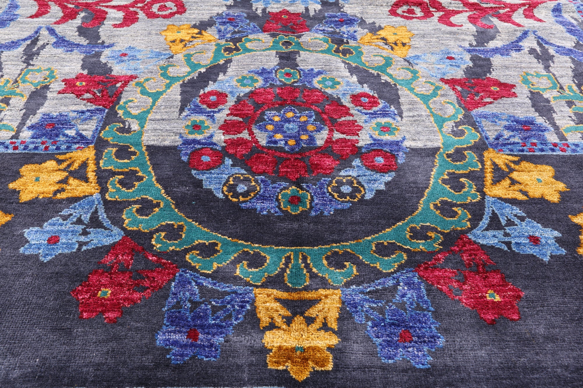 William Morris design are part of arts and crafts movement often including natural forms. These 19th and early 20th century designs are distinctive for their stylized natural forms, their symmetry and their vibrant colors. William Morris patterns are based on nature such thistles, ginkgo leaves, willow trees and flowers. These modern hand knotted rugs are woven with high quality wool, silk or both.