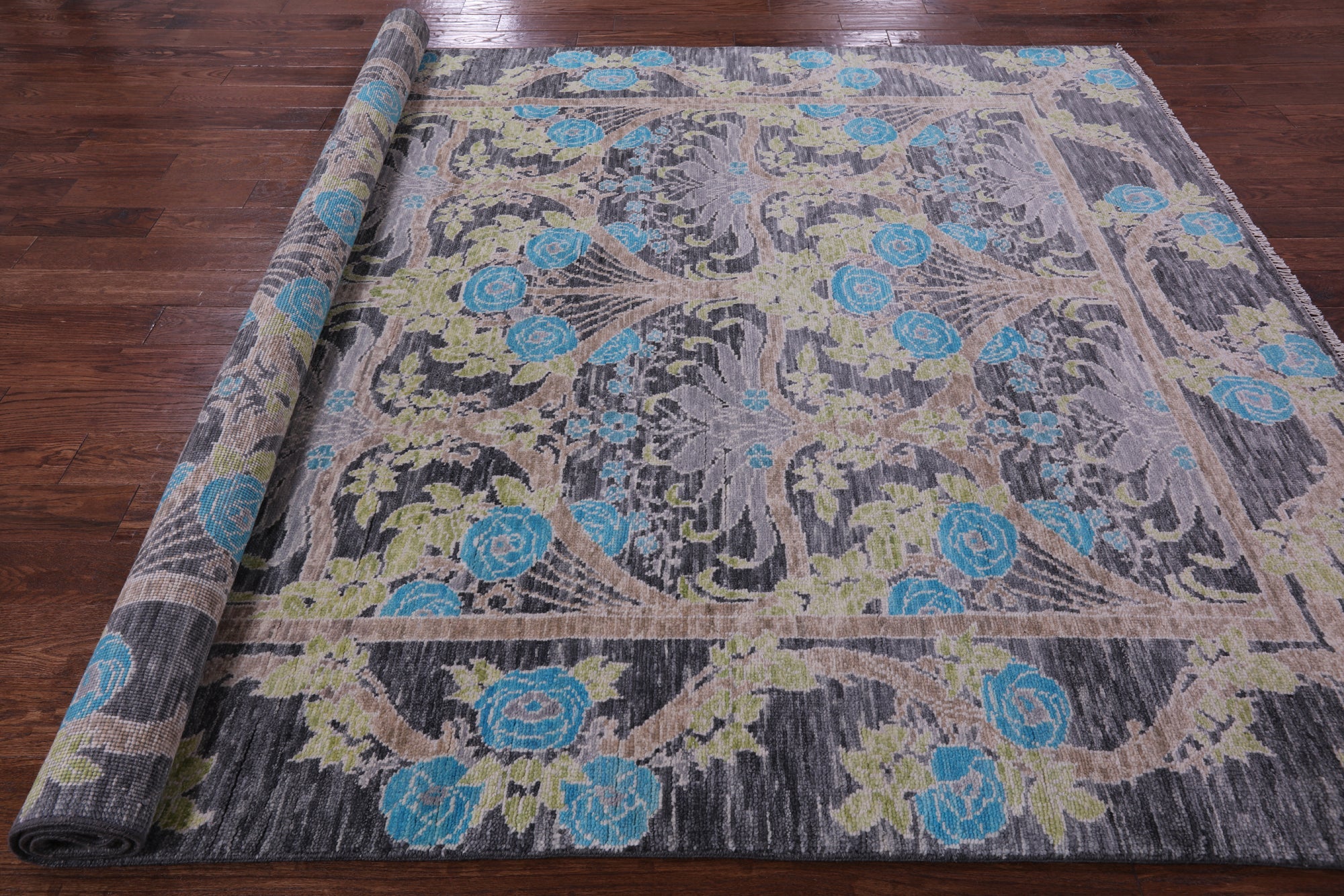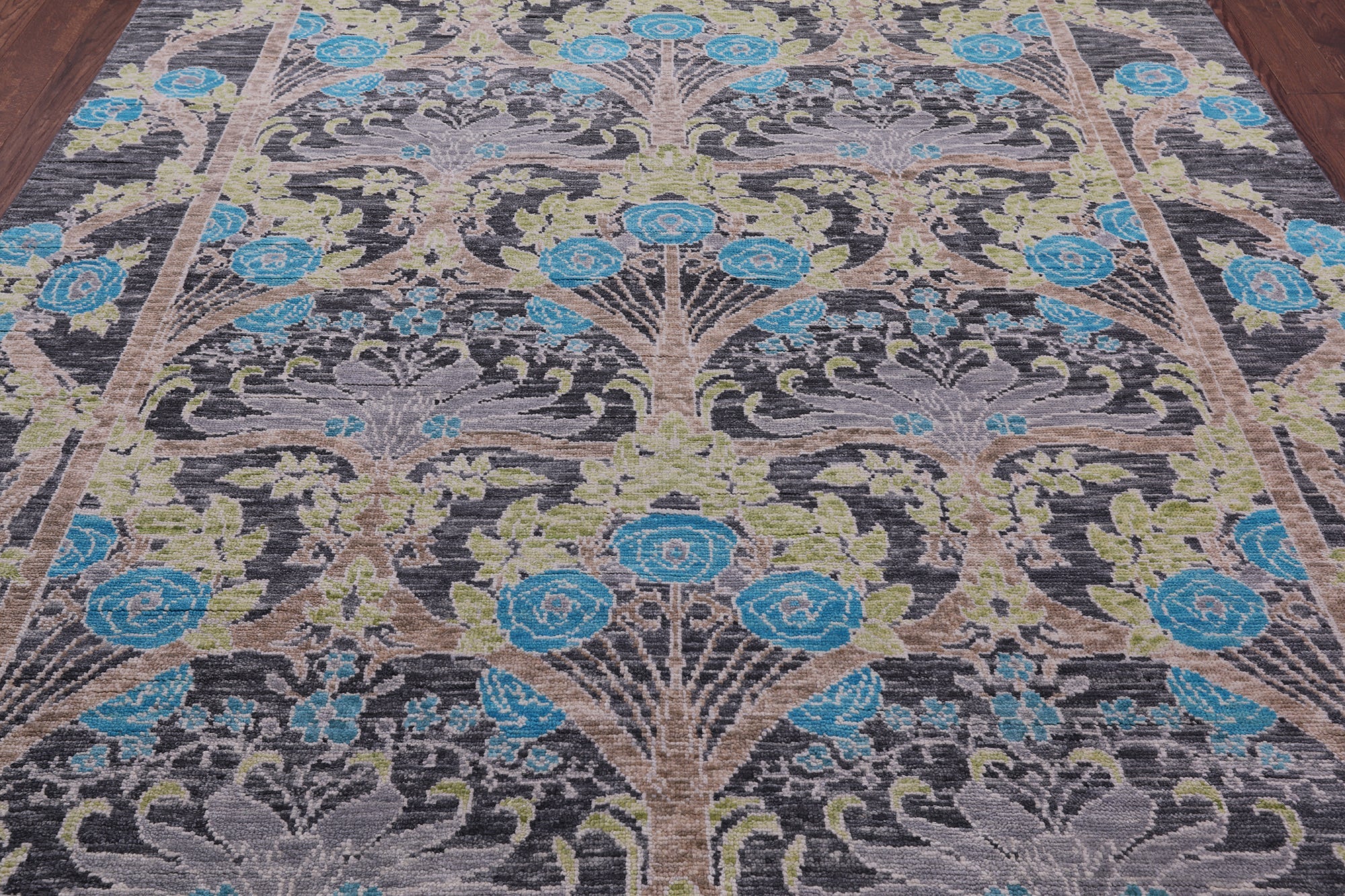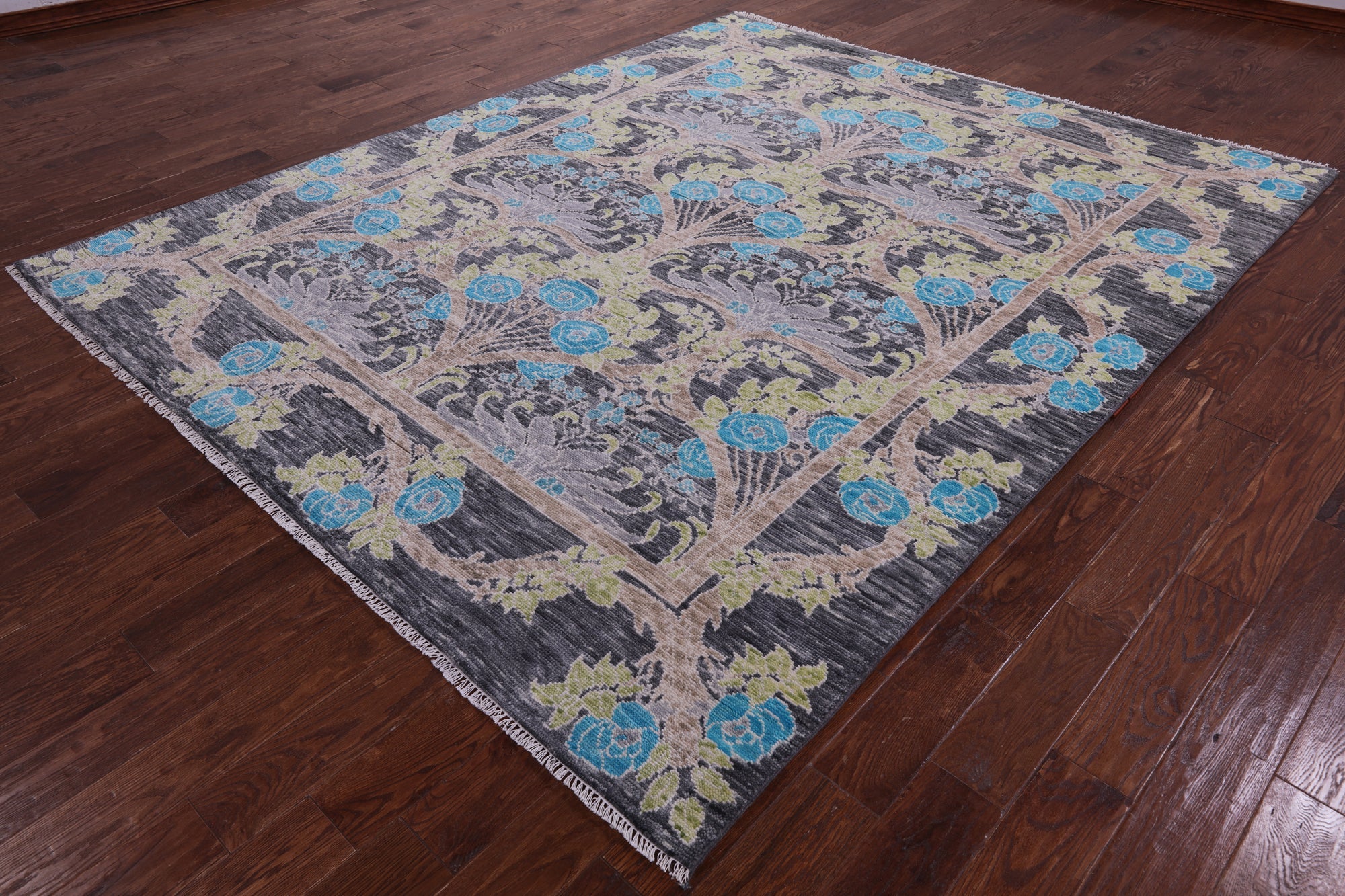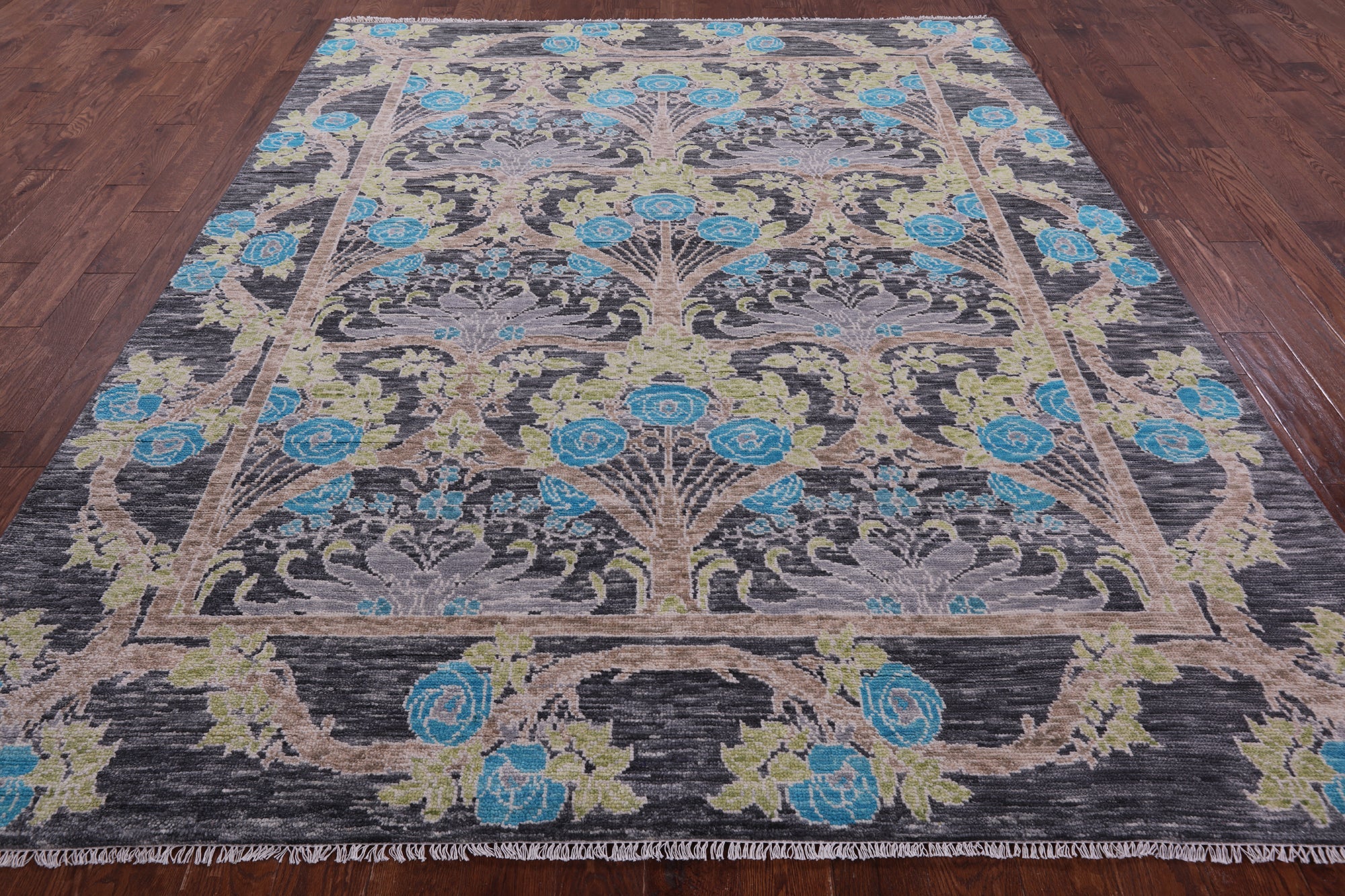 Grey William Morris Handmade Wool Rug 7' 11" X 9' 9" - Q15692 is backordered and will ship as soon as it is back in stock.