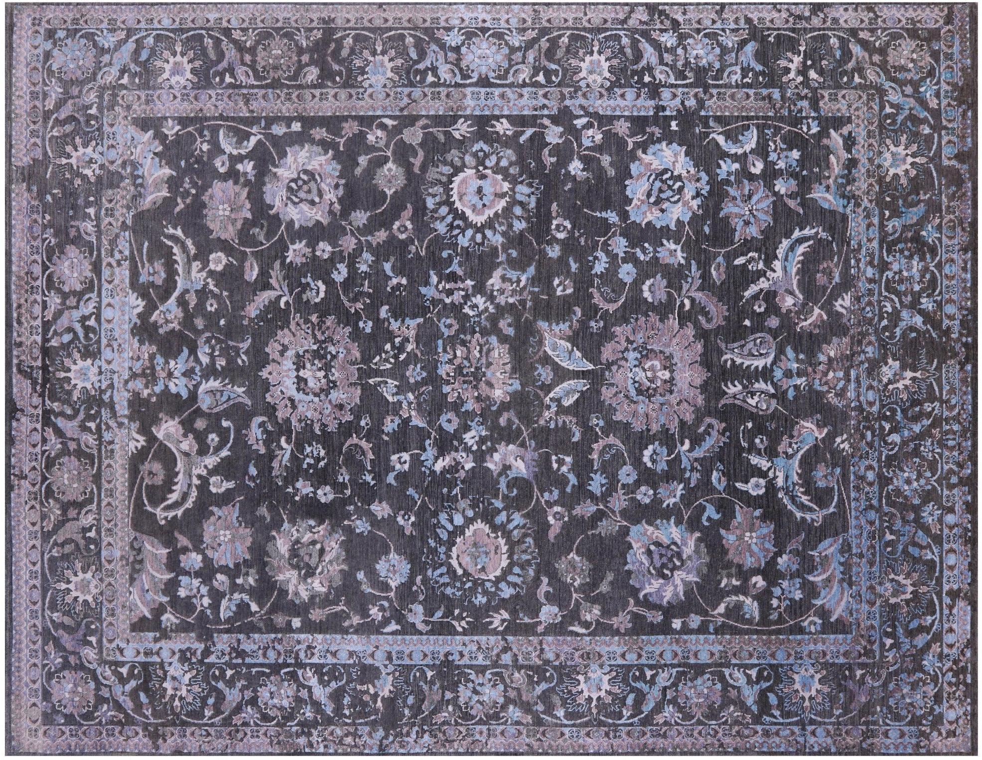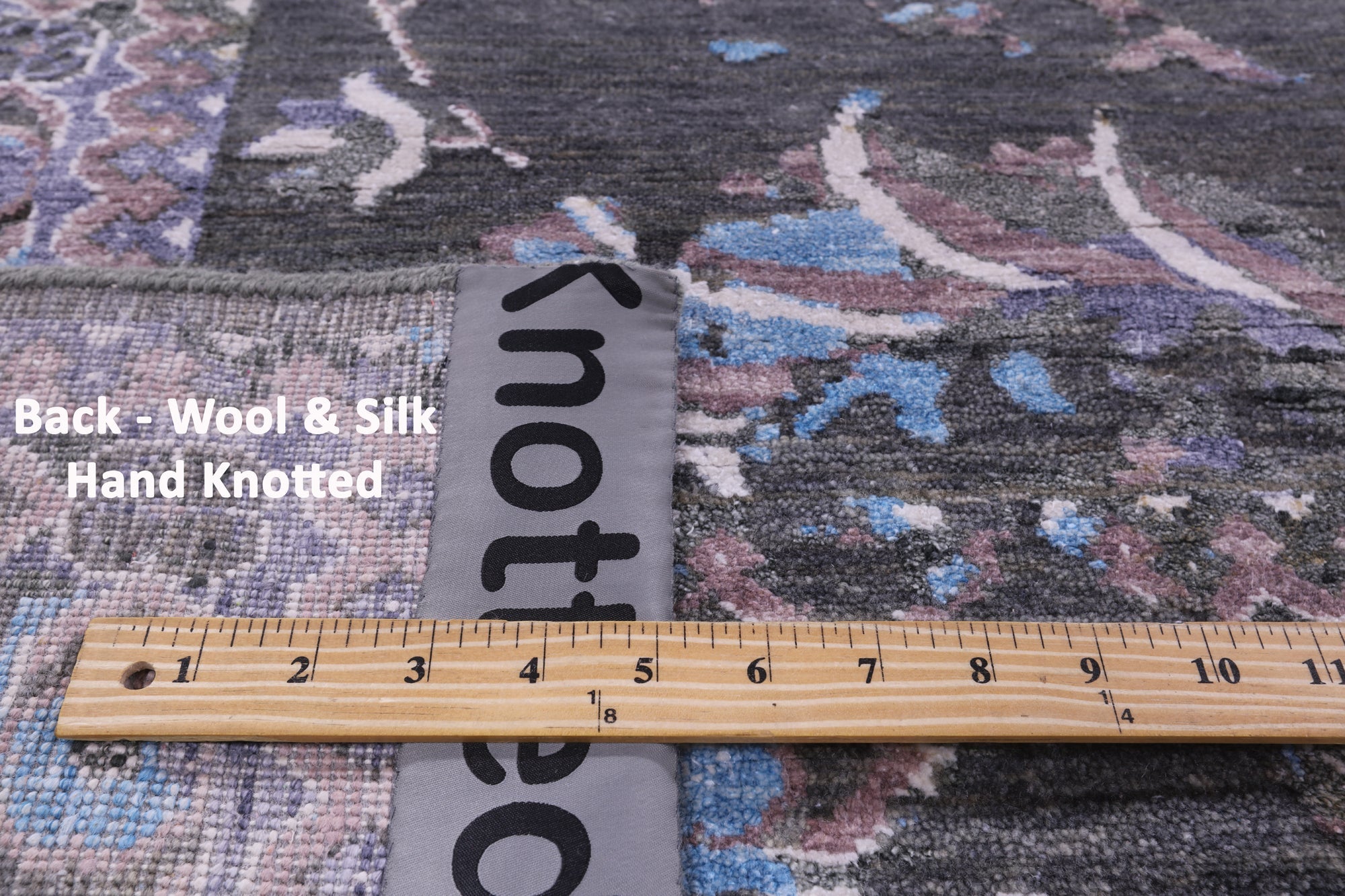 Grey 9' 0" X 11' 6" Wool & Silk Hand Knotted Persian Tabriz Rug - Q19169