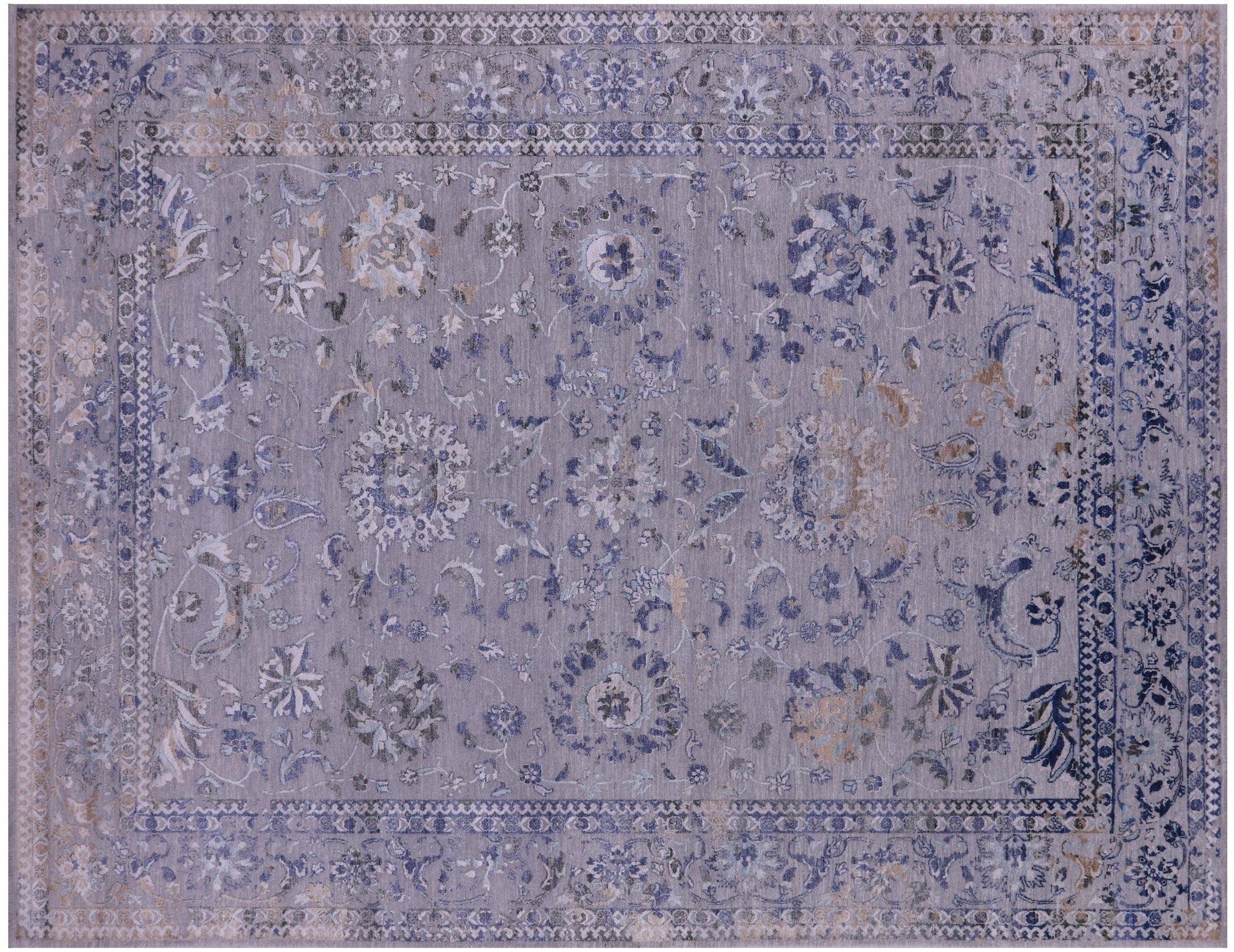 Grey Wool & Silk Hand Knotted Persian Tabriz Rug 8' 11" X 11' 9" - Q19187