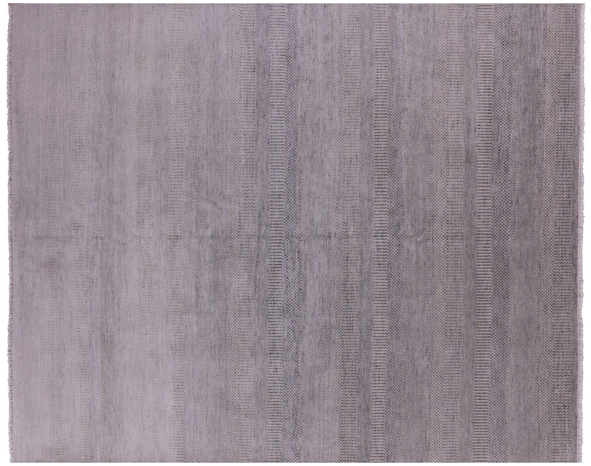 Grey 8' 2" X 9' 10" Wool & Silk Hand-Knotted Savannah Gabbeh Rug - Q6620