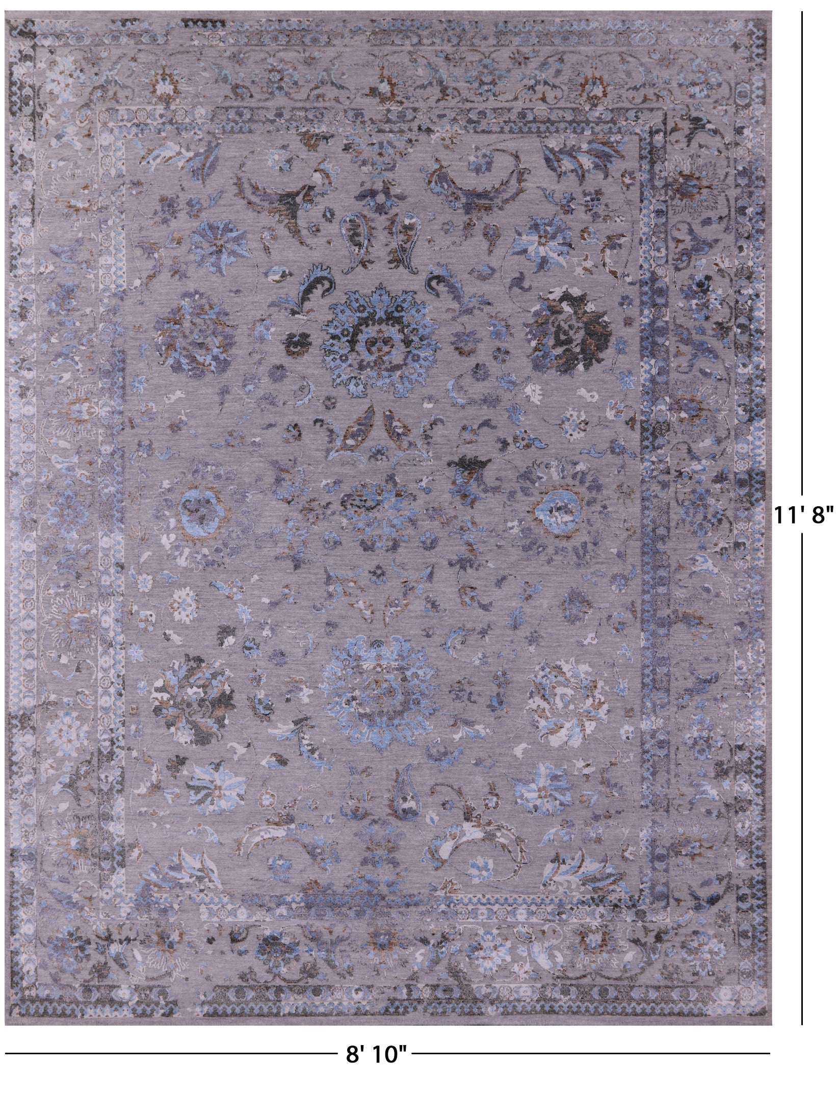 Grey Wool & Silk Handmade Persian Tabriz Rug 8' 10" X 11' 8" - Q19199 is backordered and will ship as soon as it is back in stock.