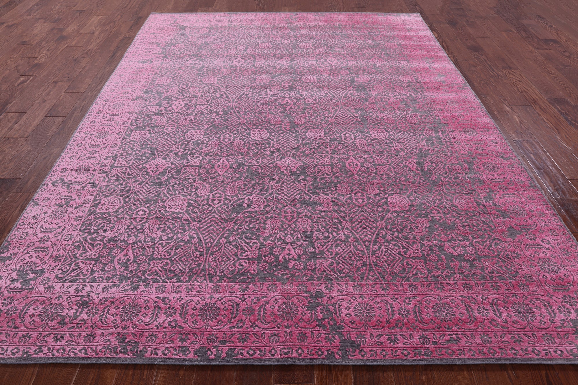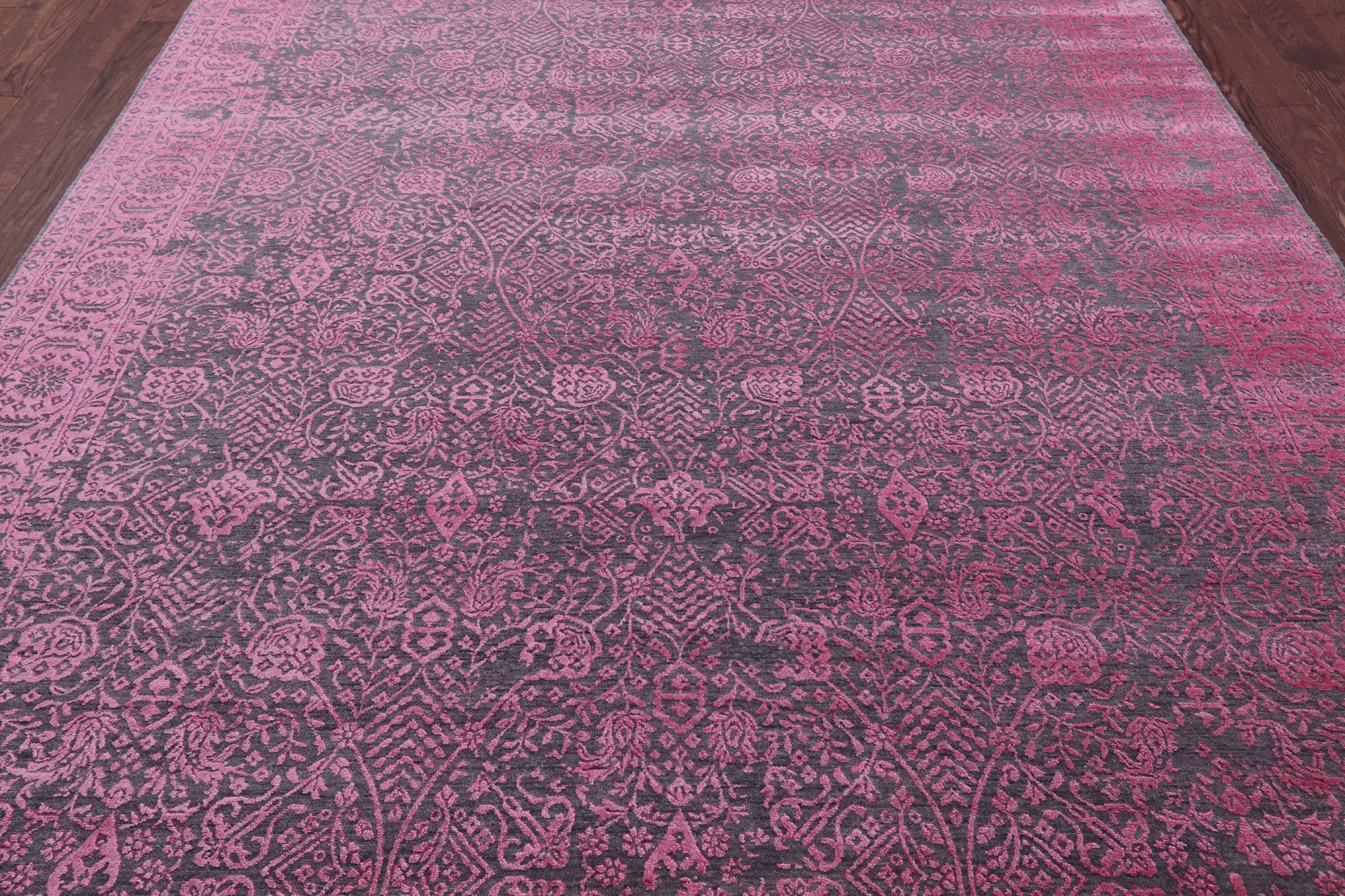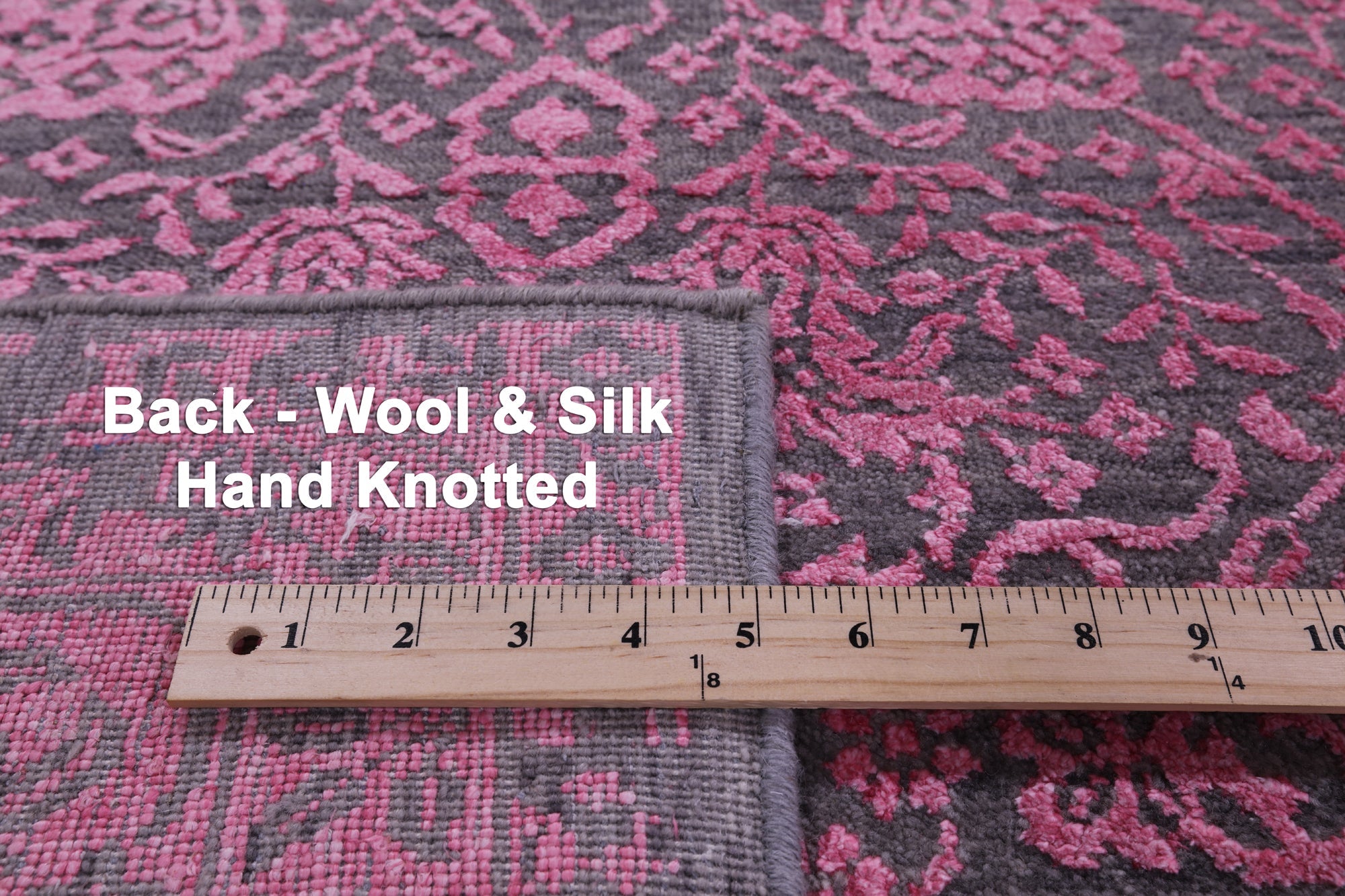 Grey 7' 10" X 10' 5" Wool & Silk Persian Tabriz Hand Knotted Rug - Q21634