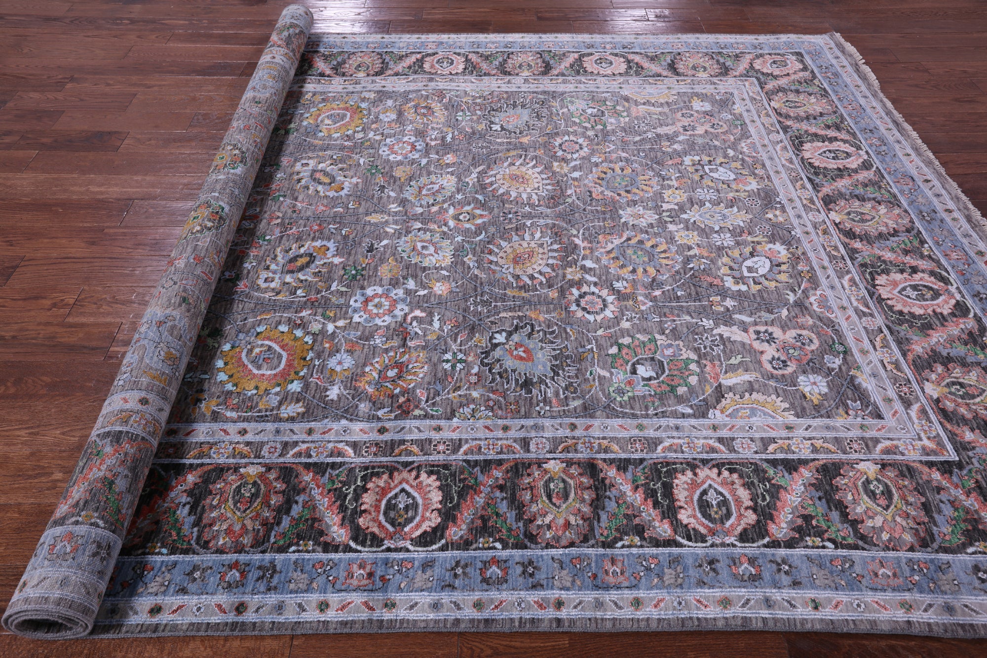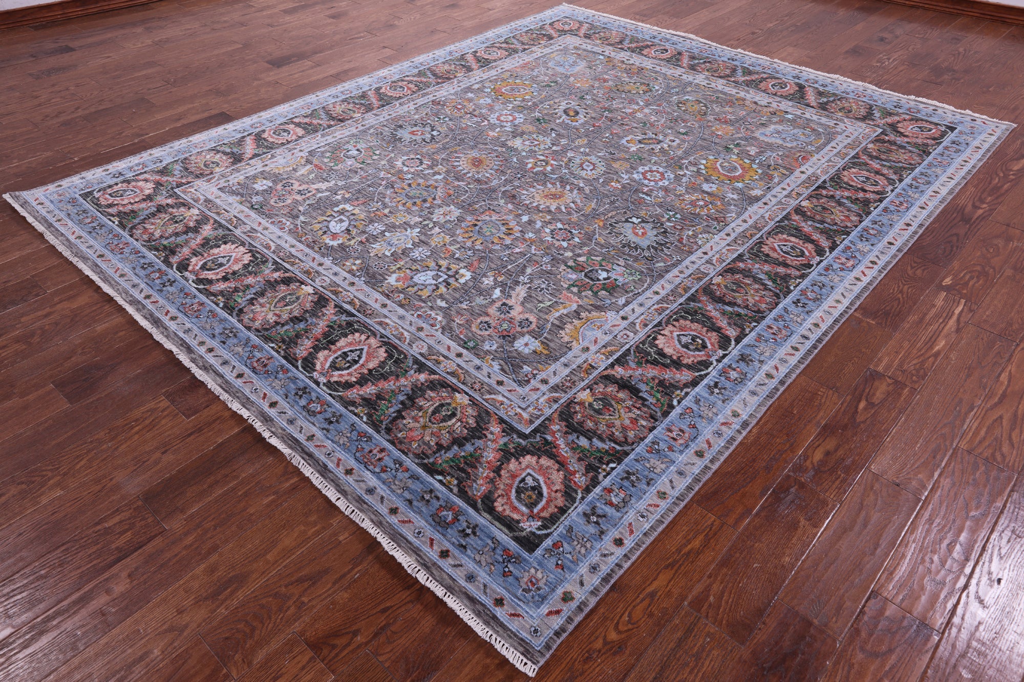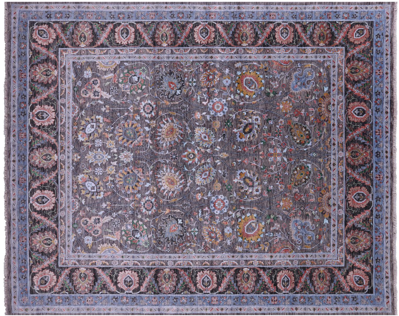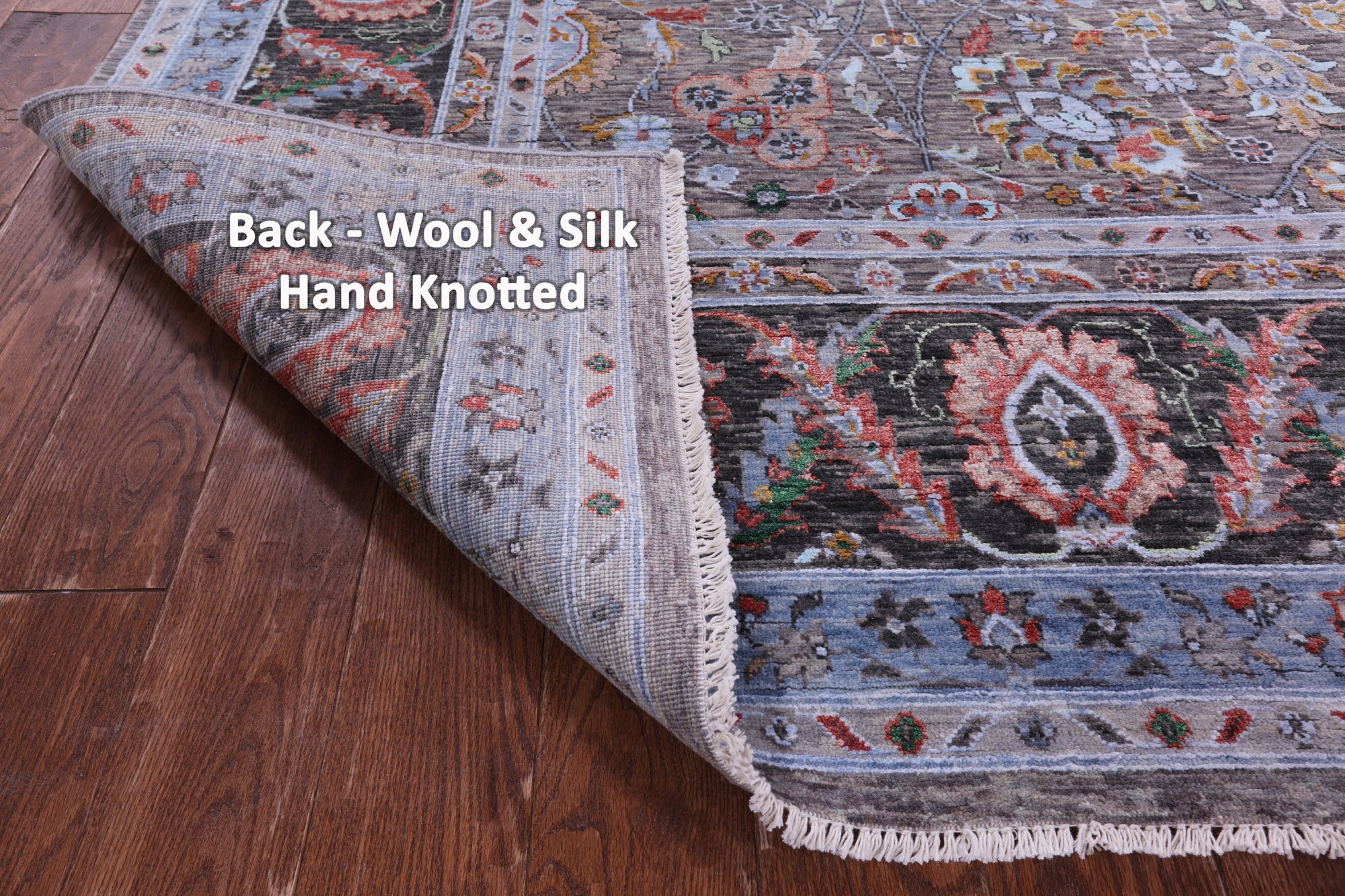 Grey Wool & Silk Persian Tabriz Hand Knotted Rug 7' 11" X 9' 11" - Q23472