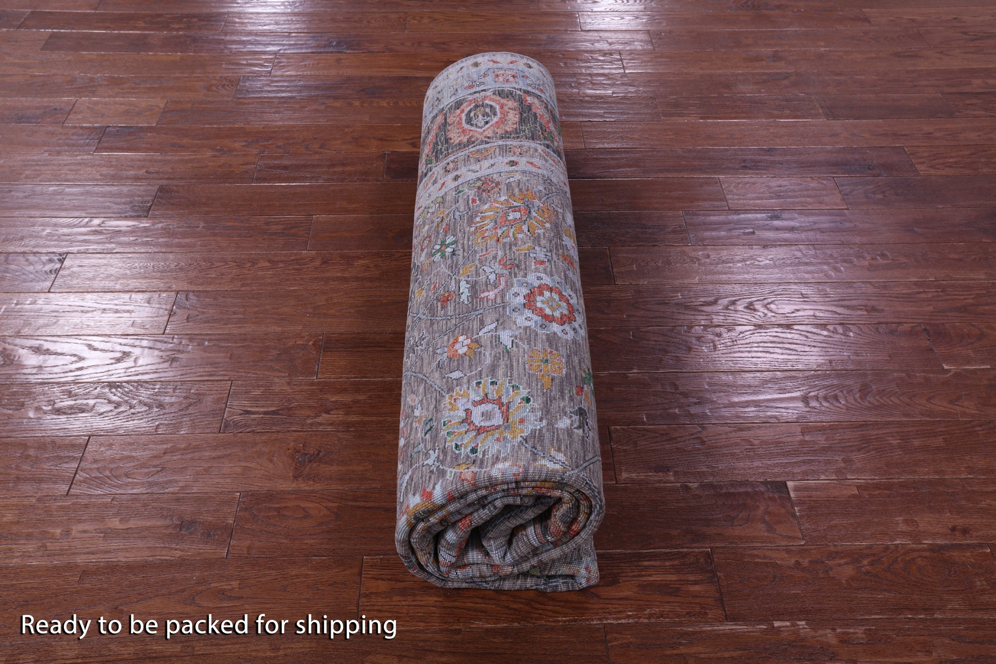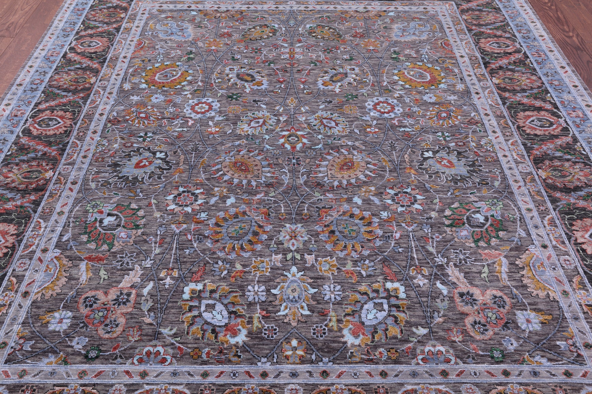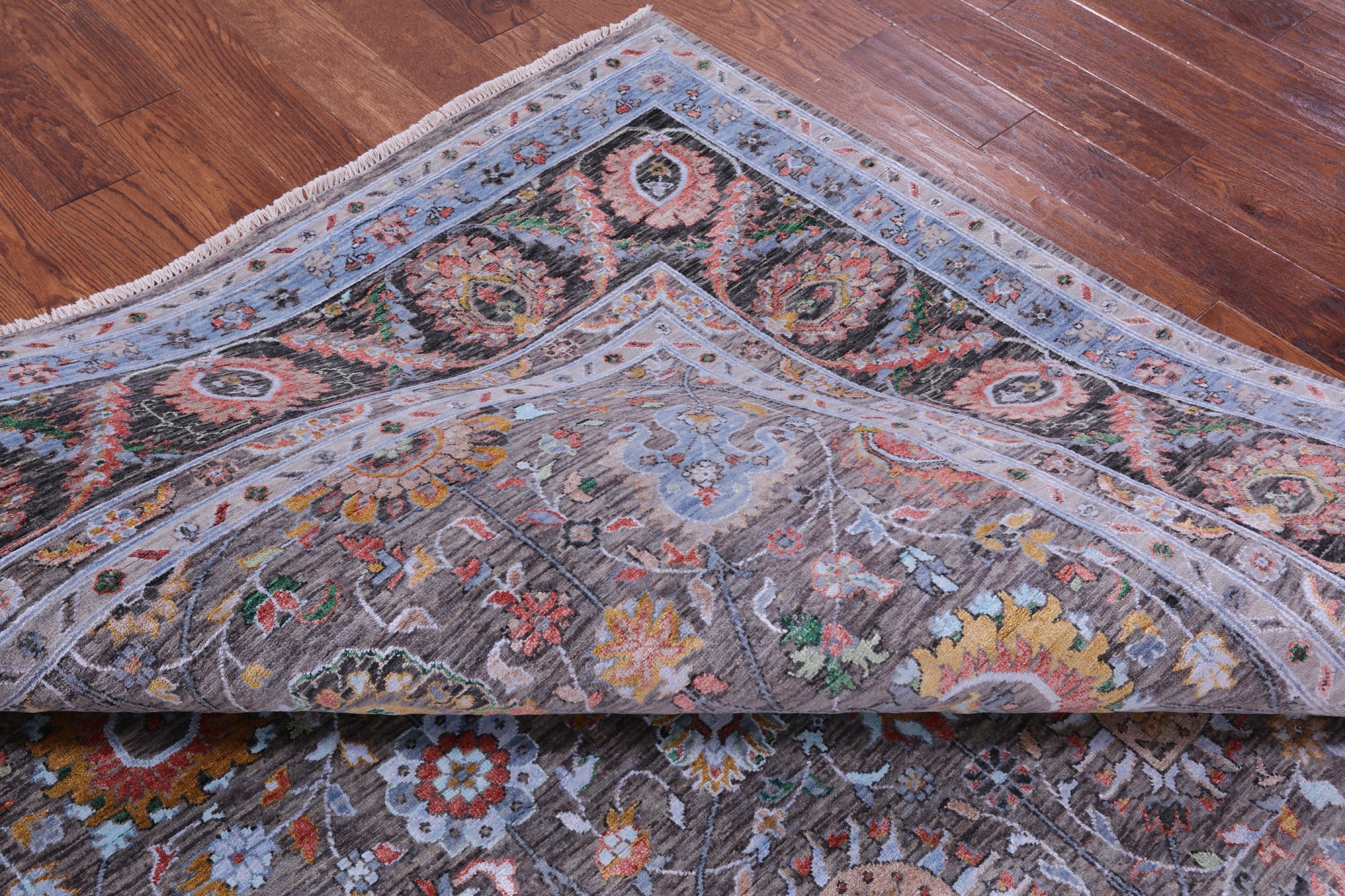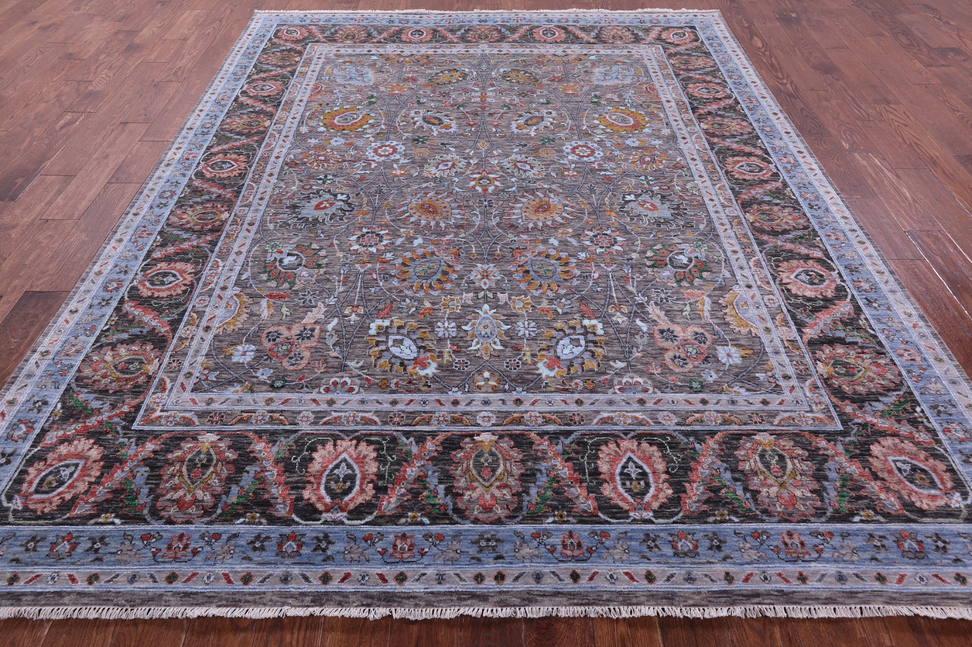 Grey Wool & Silk Persian Tabriz Hand Knotted Rug 7' 11" X 9' 11" - Q23472