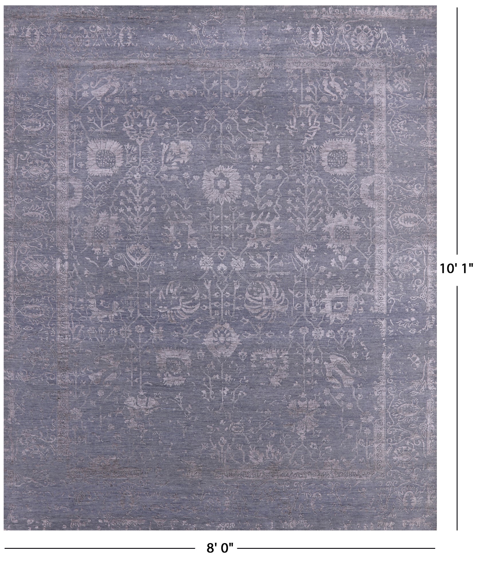 Grey Wool & Silk Persian Tabriz Handmade Rug 8' 0" X 10' 1" - Q19147