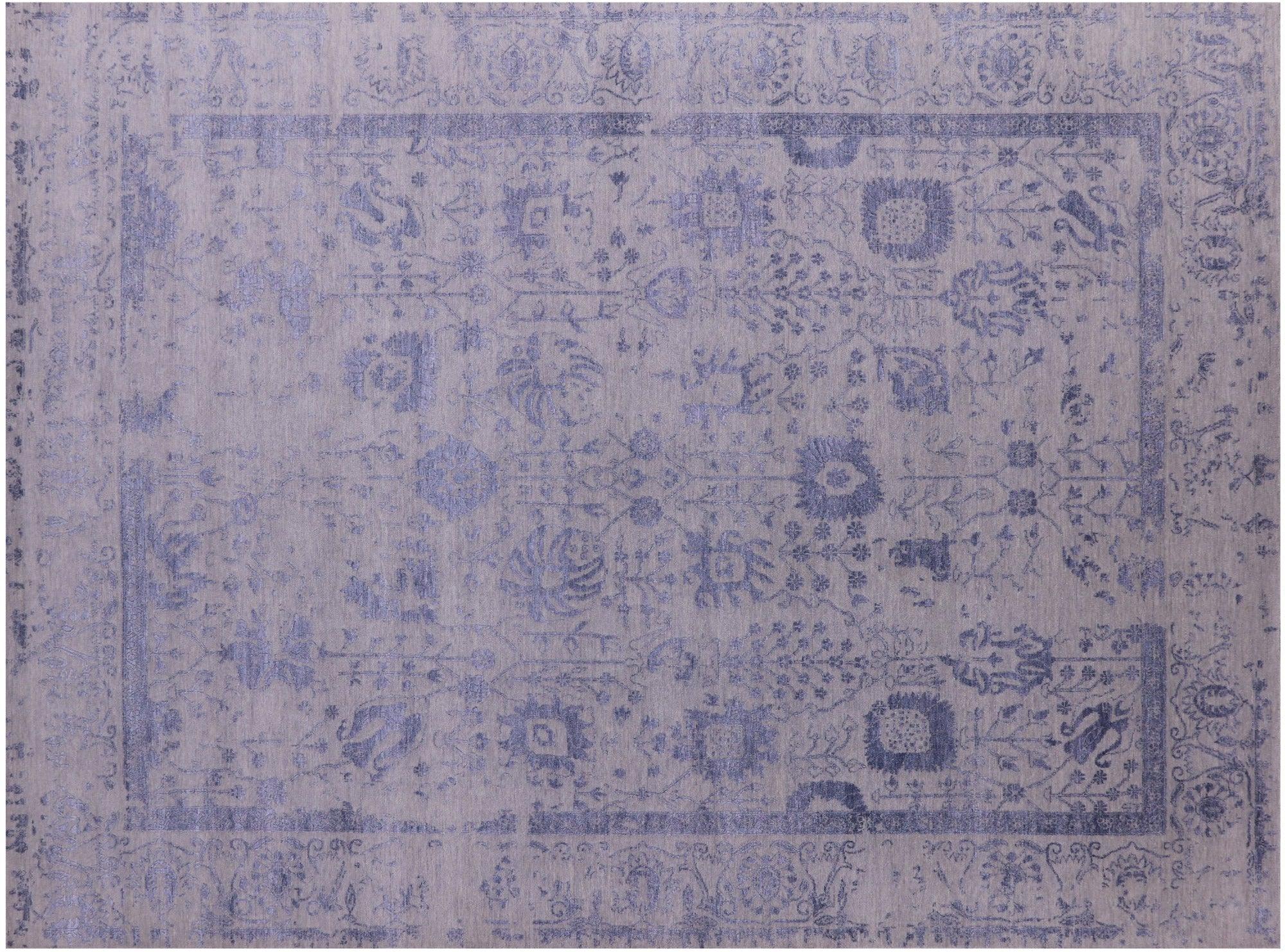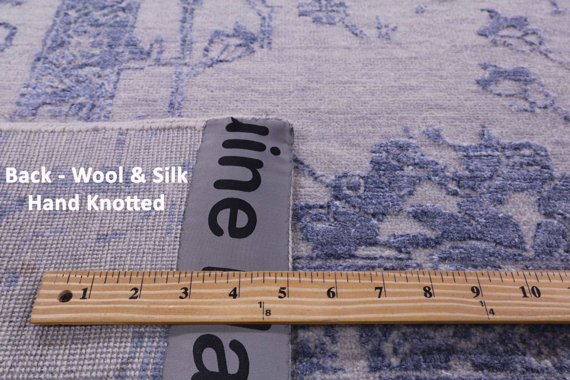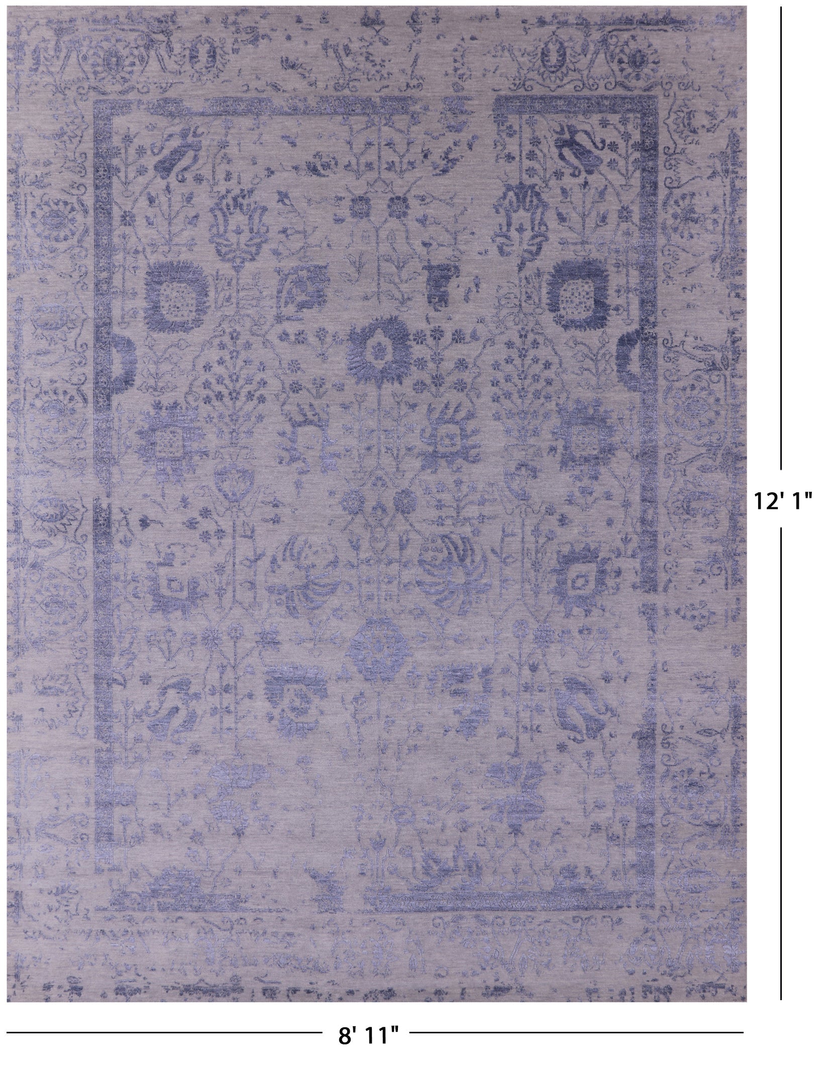 Grey 8' 11" X 12' 1" Wool & Silk Persian Tabriz Handmade Rug - Q19159