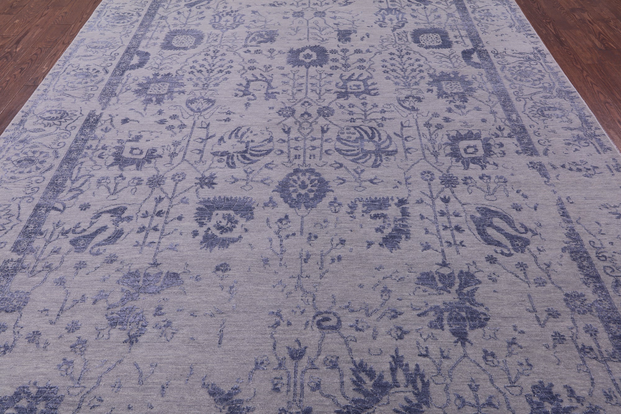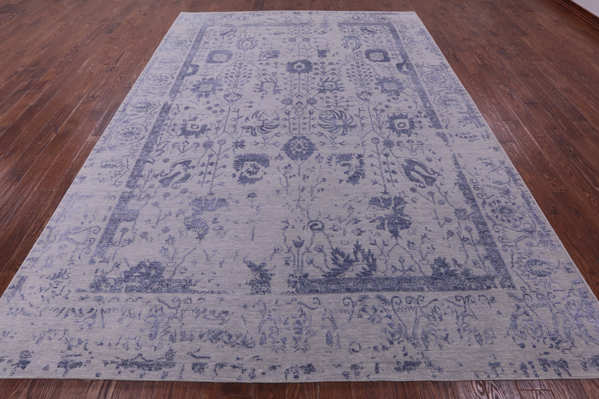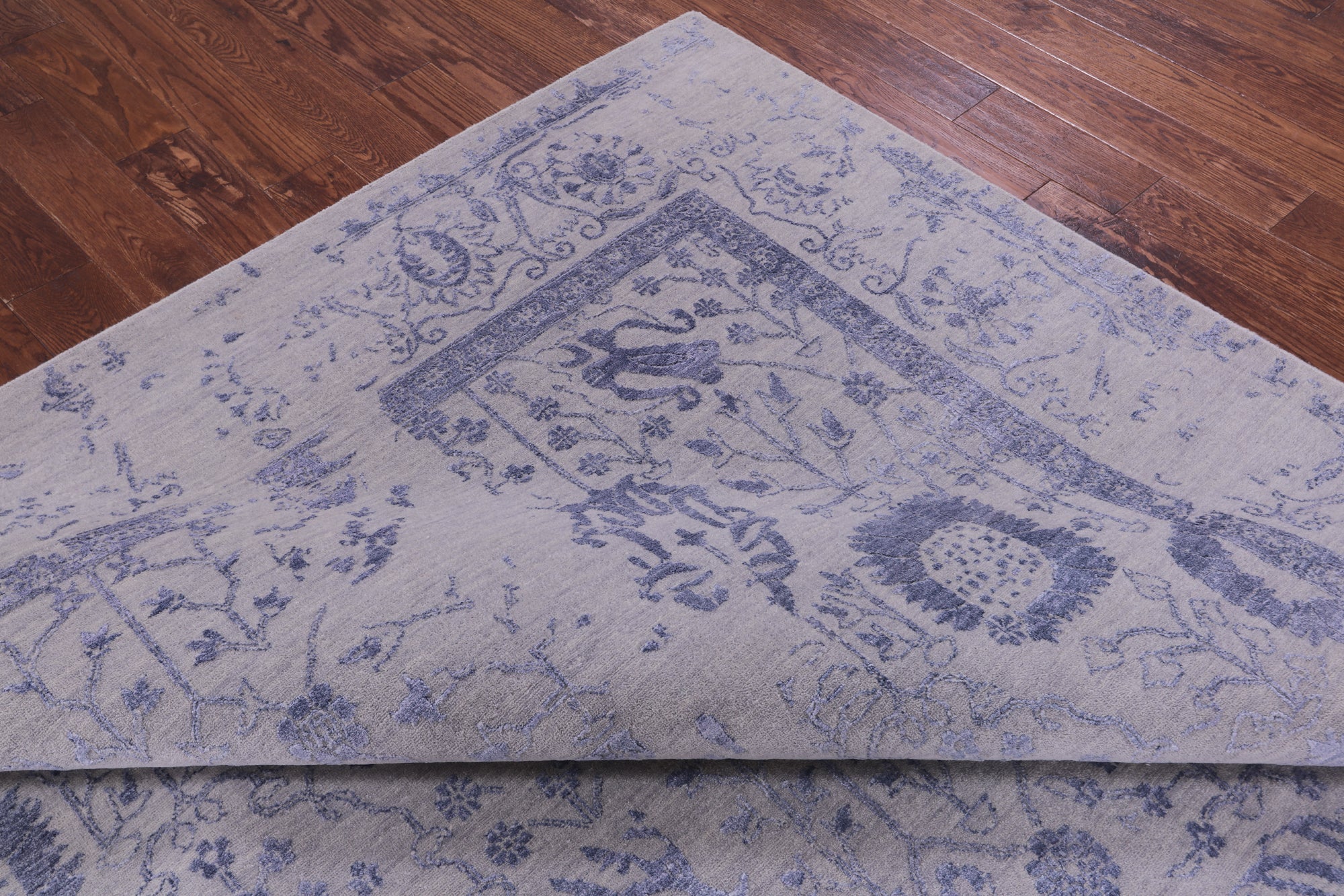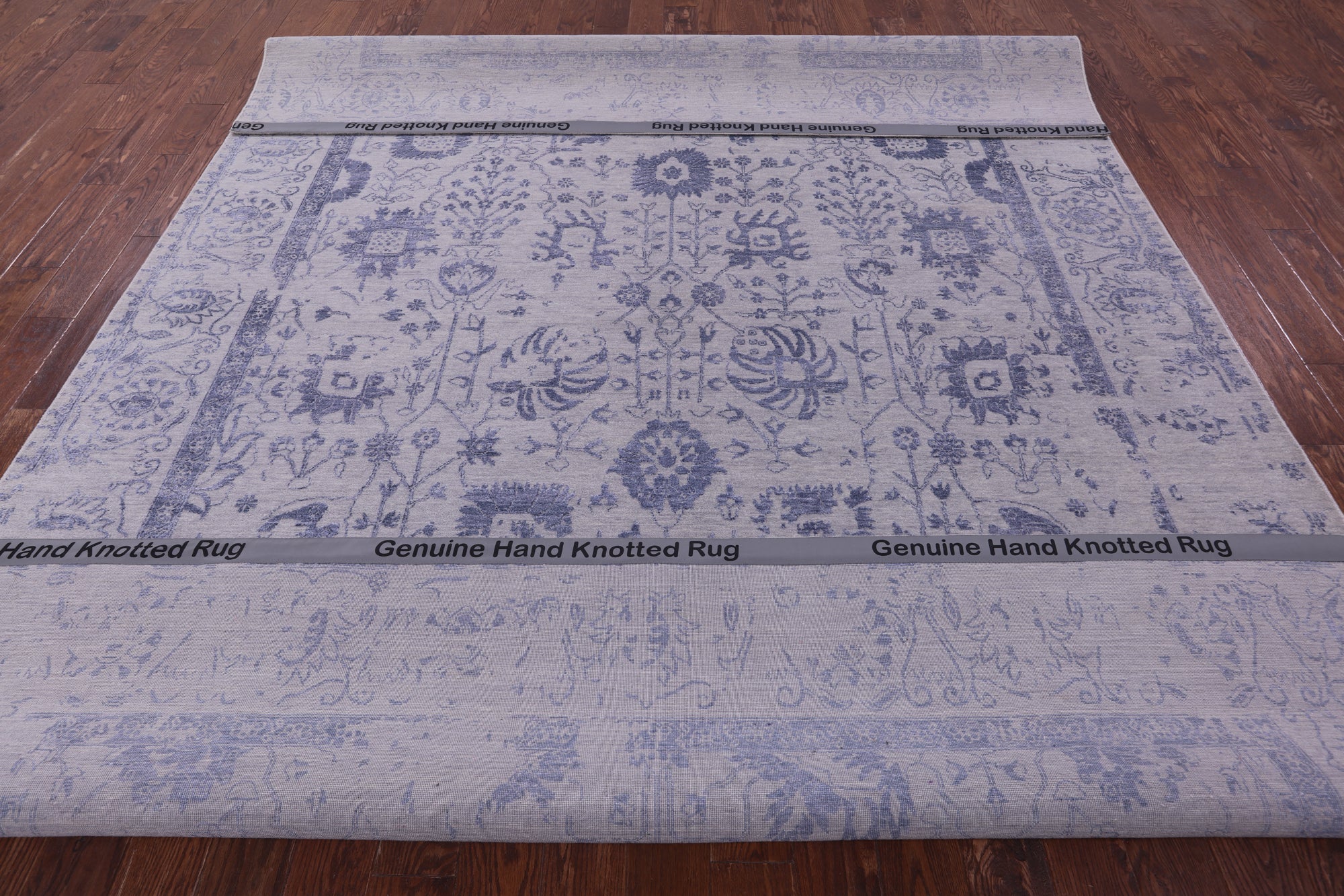 Grey 8' 11" X 12' 1" Wool & Silk Persian Tabriz Handmade Rug - Q19159