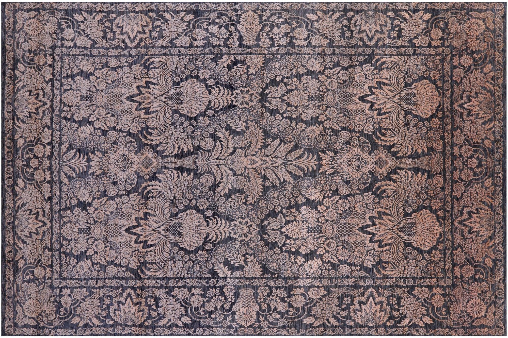 Grey Wool & Silk Persian Tabriz Handmade Rug 8' 11" X 13' 7" - Q22423