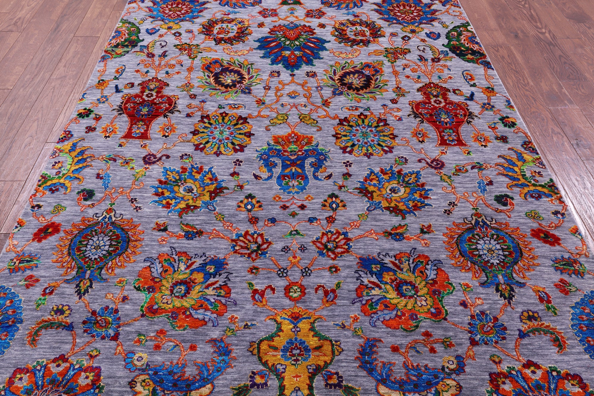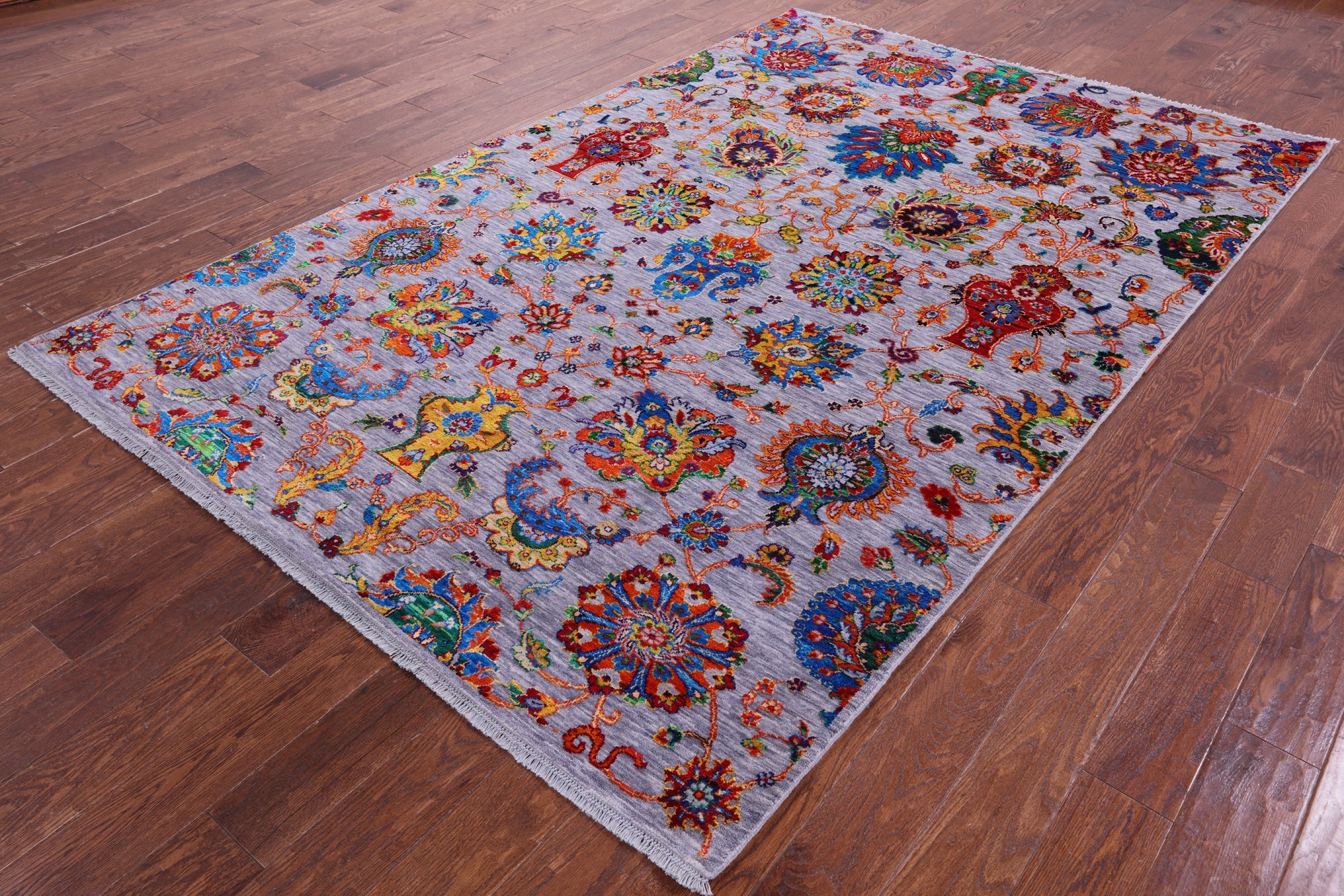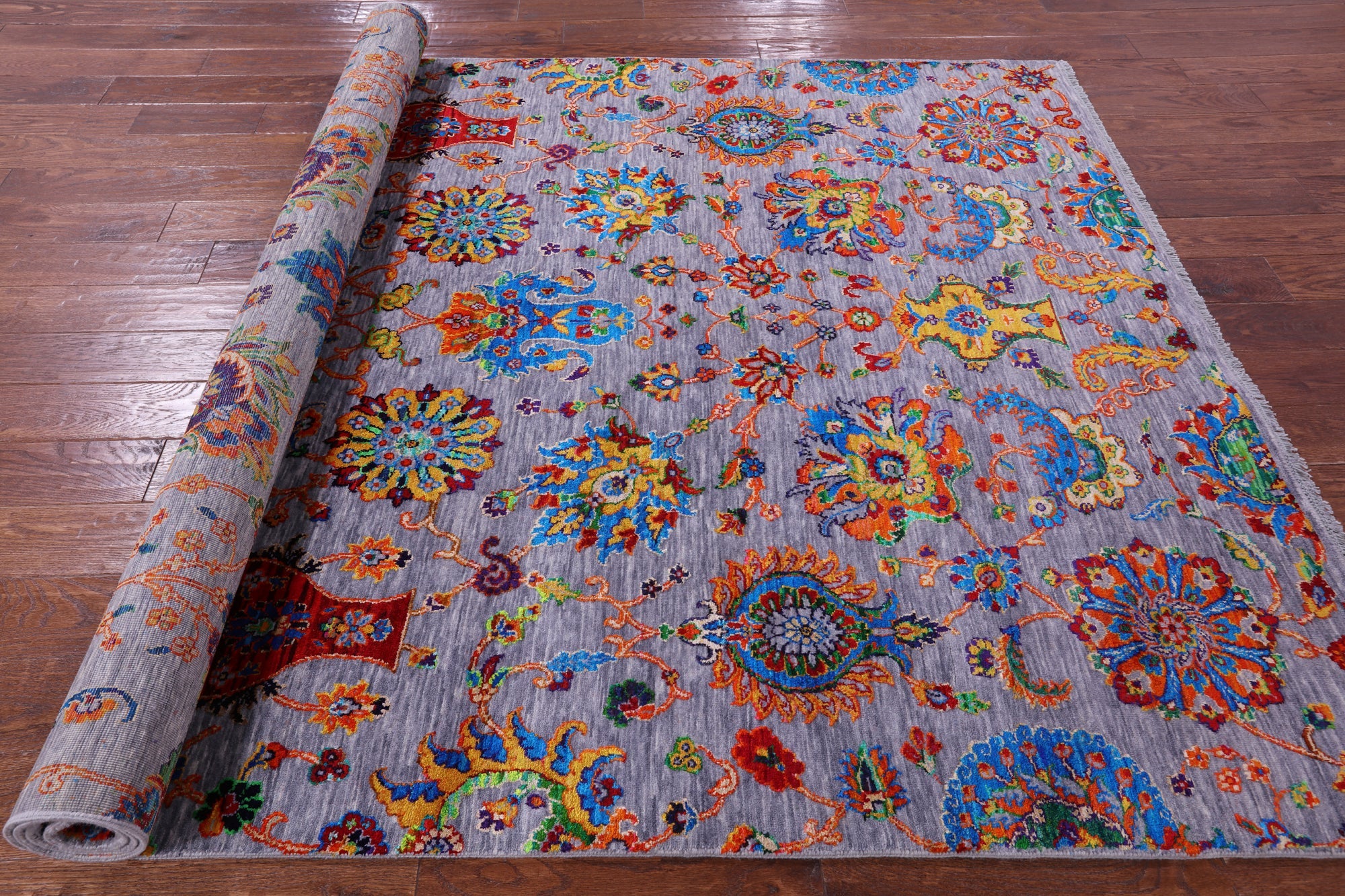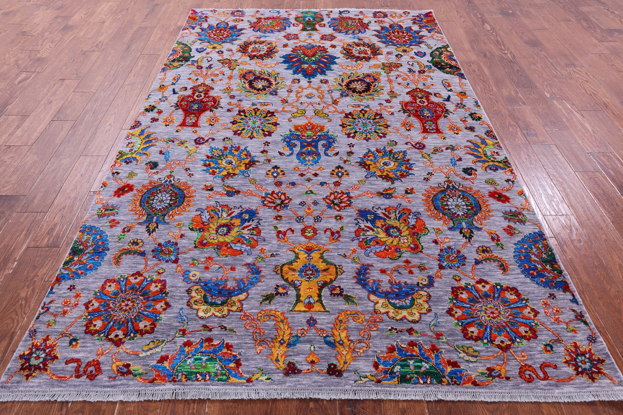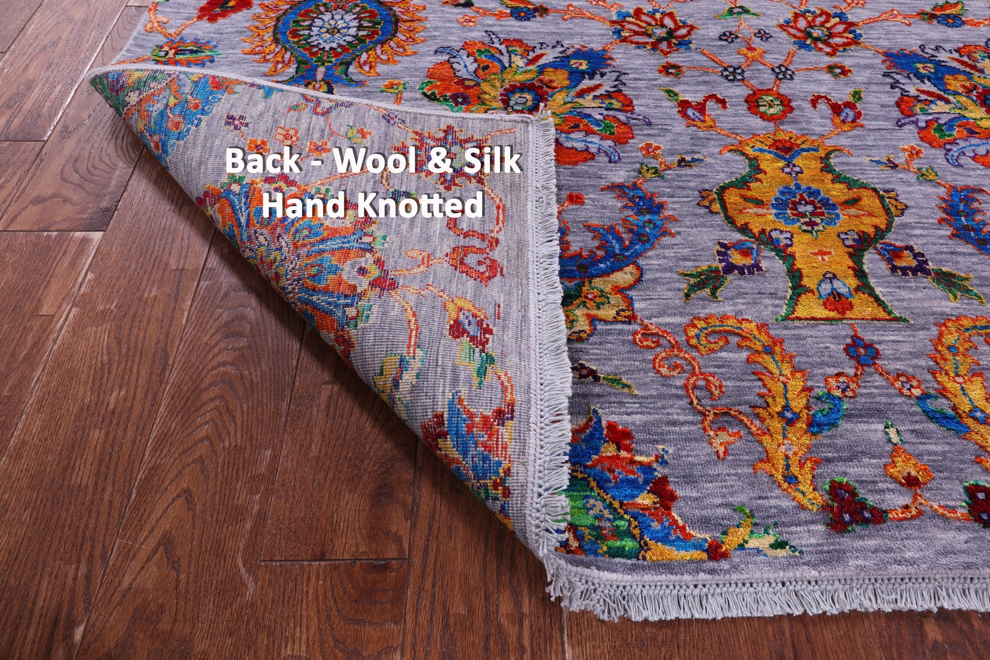 Grey 6' 0" X 9' 5" Wool & Silk Persian Tabriz Handmade Rug - Q22566
