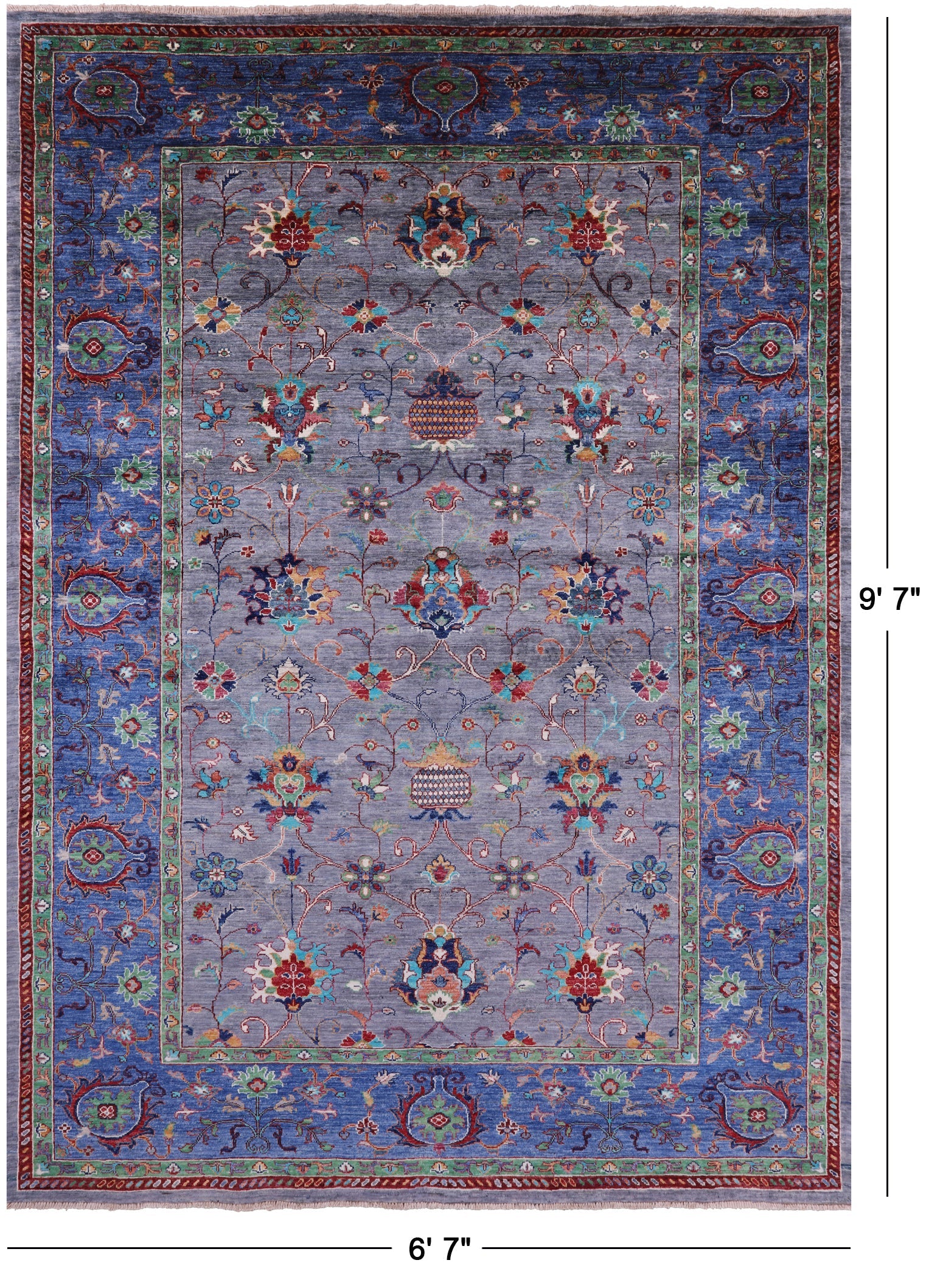Hand Knotted Persian Tabriz Wool Rug 6' 7" X 9' 7" - Q17155