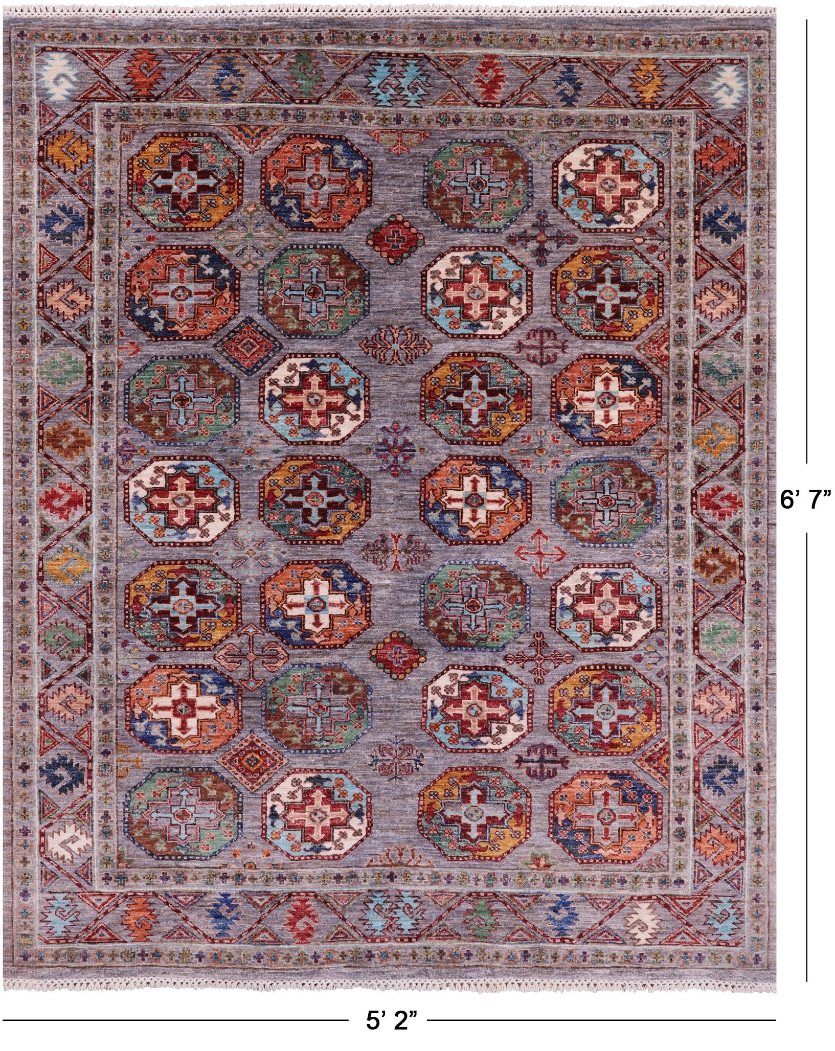 Handmade Super Turkmen Ersari Wool Rug 5' 2" X 6' 7" - Q18574 is backordered and will ship as soon as it is back in stock.