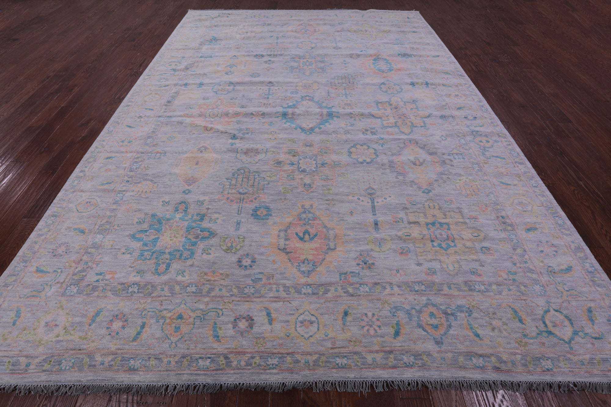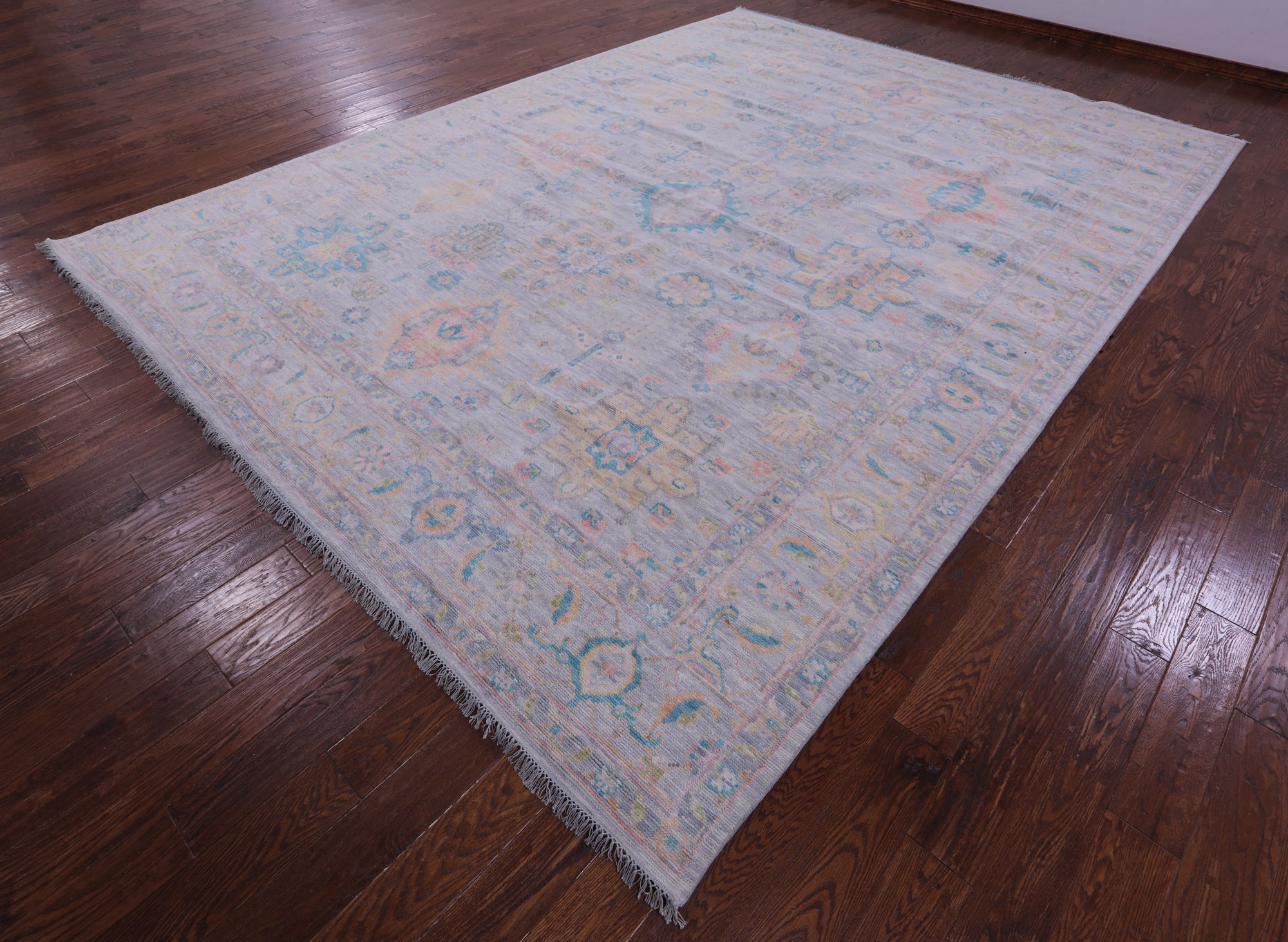 Silver Hand-Knotted Kazak Wool Rug 10' 2" X 14' 0" - Q19756 is backordered and will ship as soon as it is back in stock.