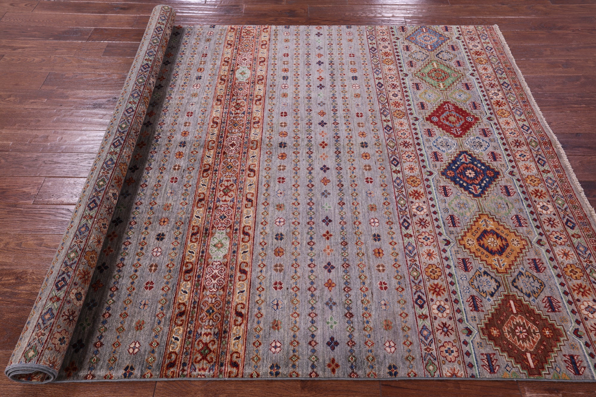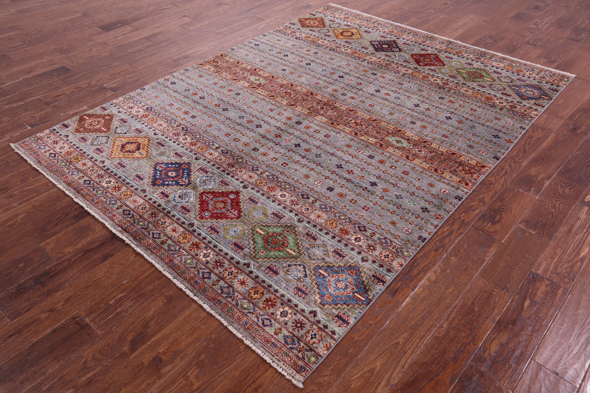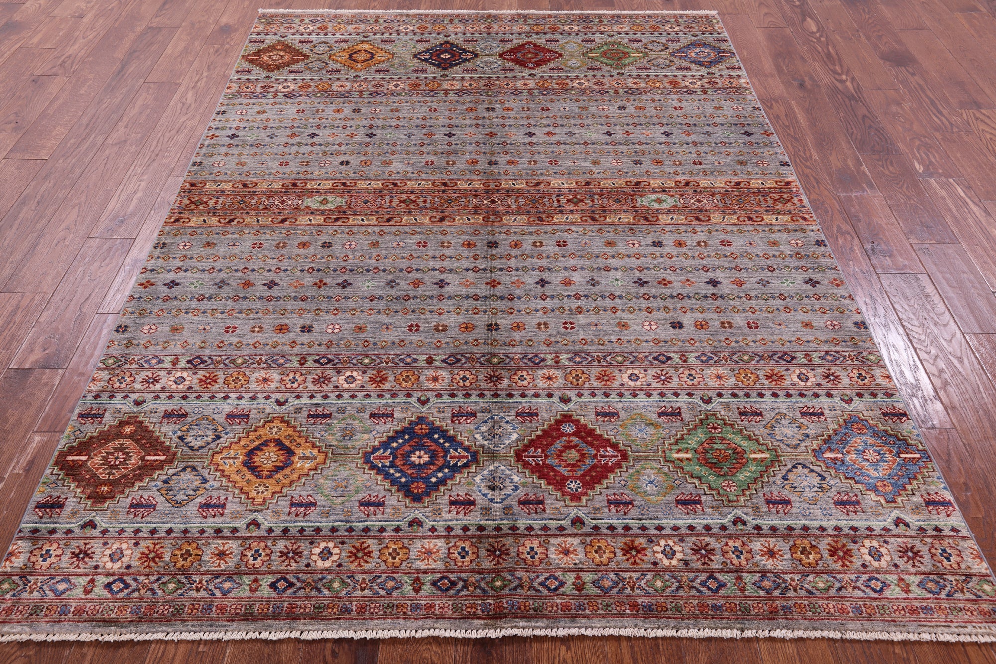 5' 9" X 8' 0" Super Kazak Khorjin Handmade Rug - Q20994 is backordered and will ship as soon as it is back in stock.