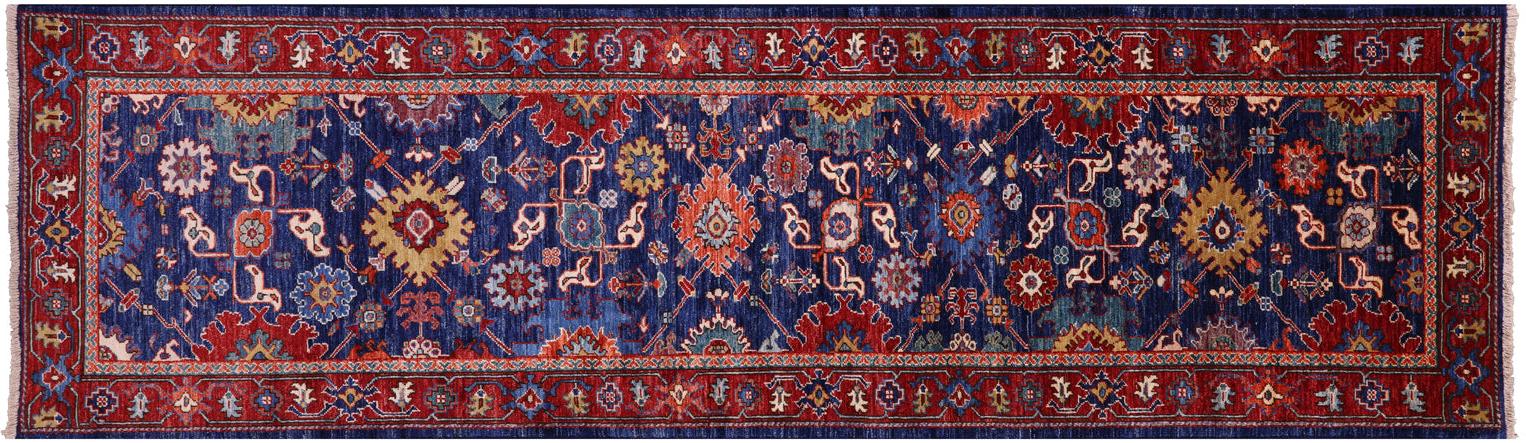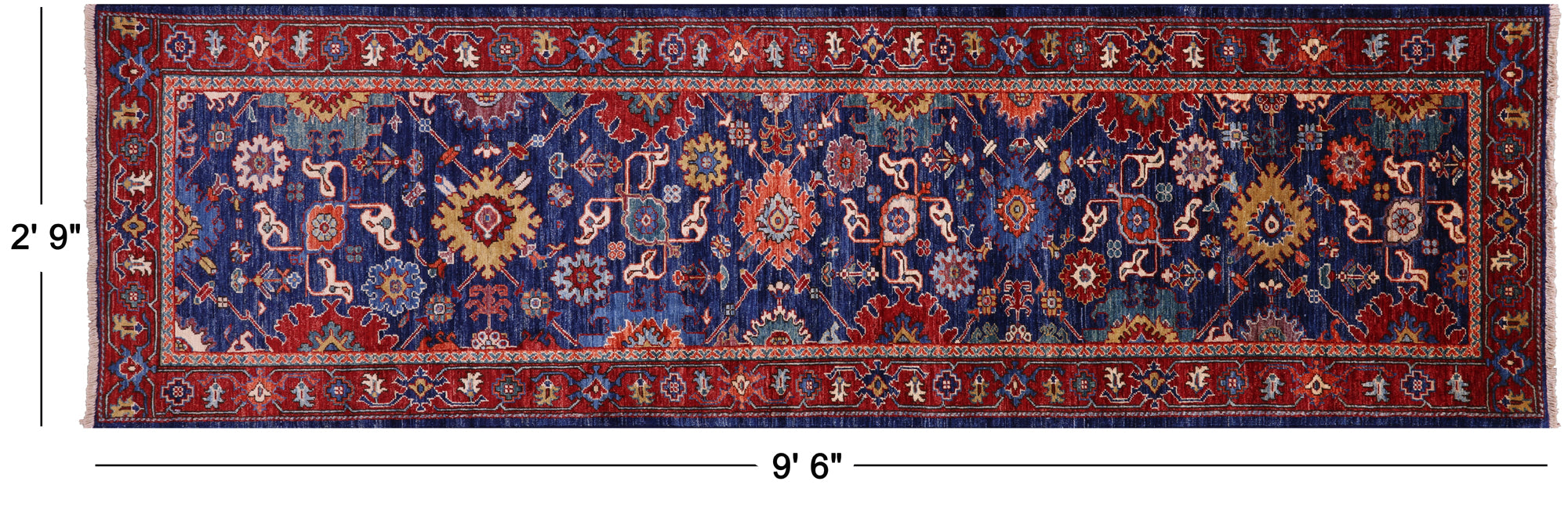 Blue 2' 9" X 9' 6" Persian Heriz Serapi Hand-Knotted Wool Runner Rug - Q23170