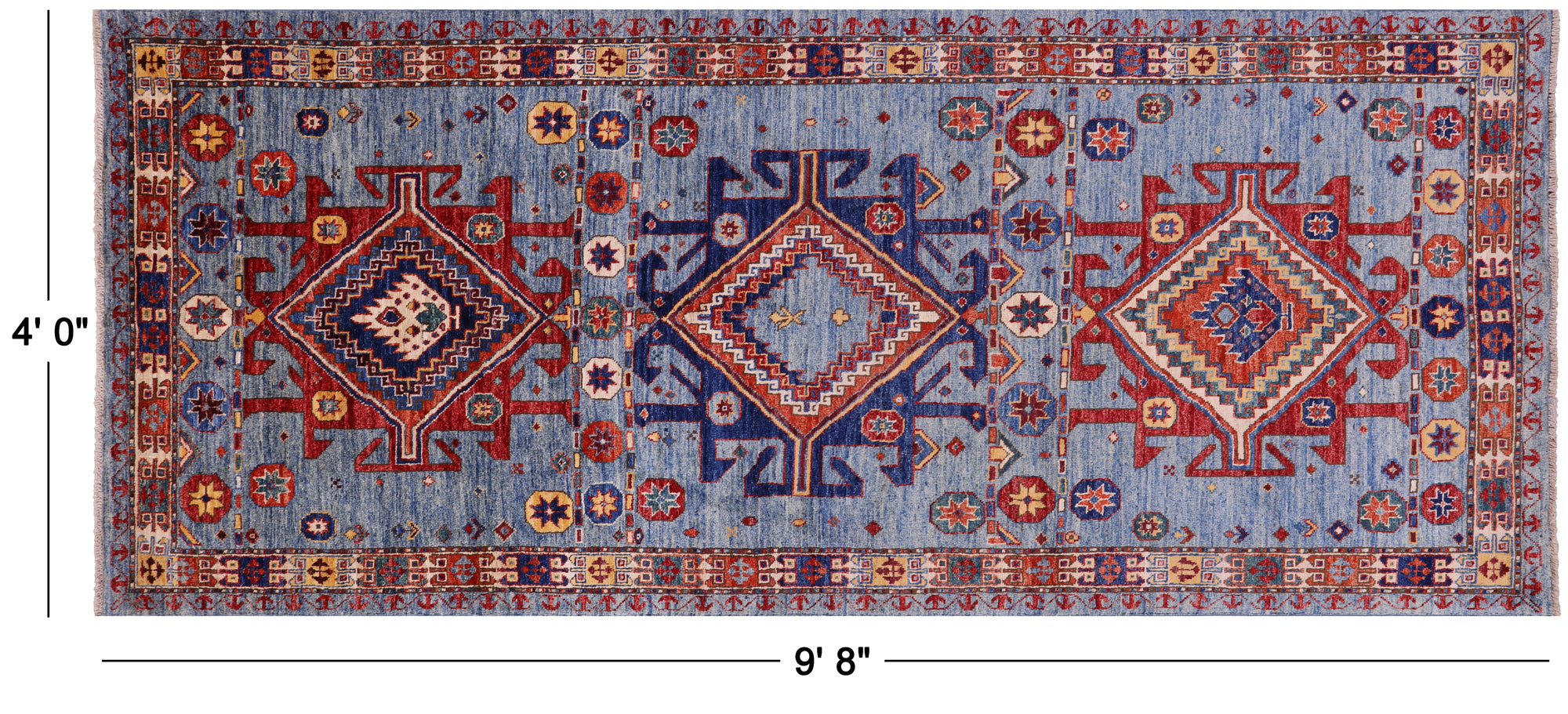 Blue Runner Persian Heriz Serapi Handmade Rug 4' 0" X 9' 8" - Q22837