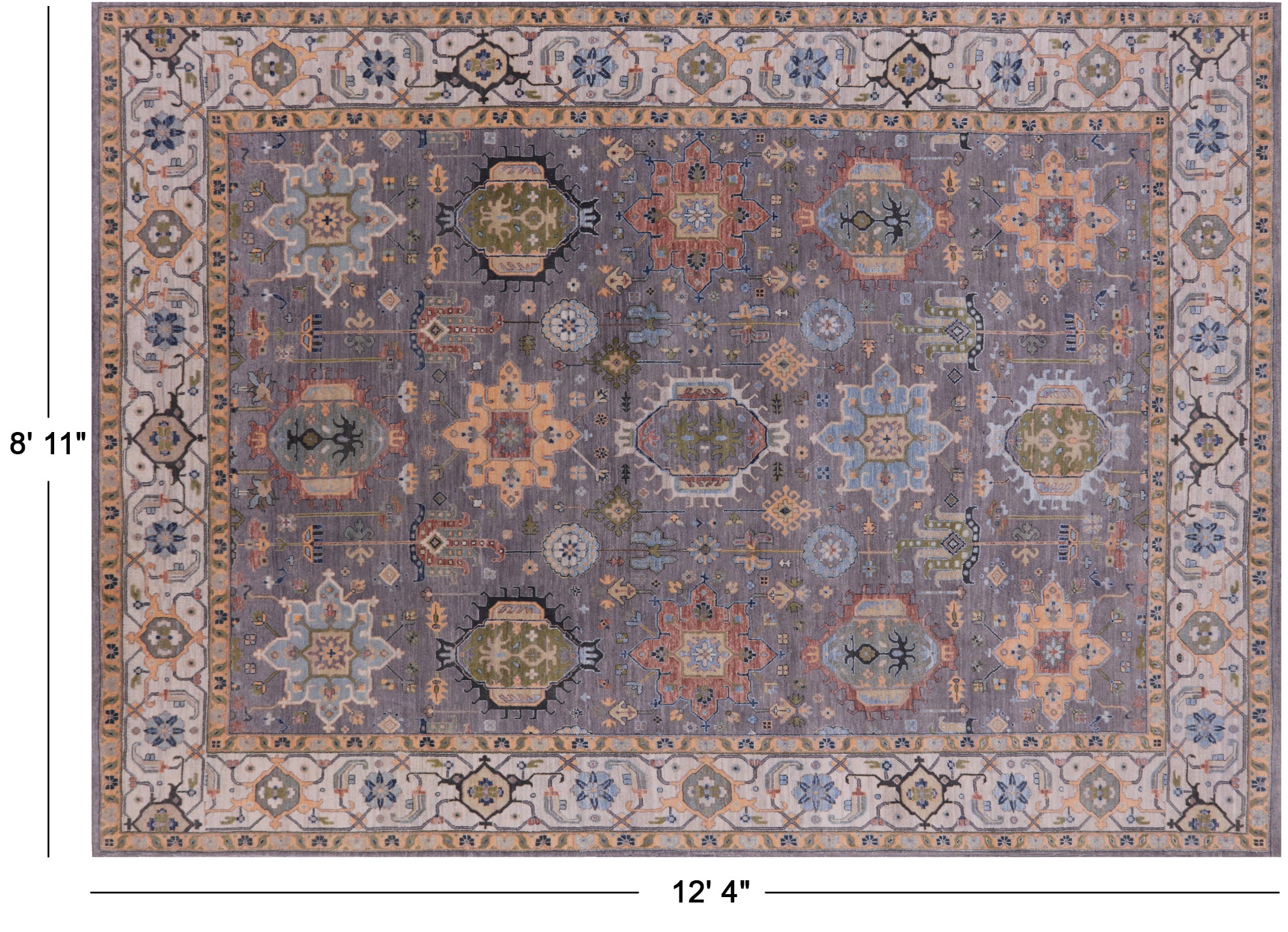 Grey Persian Heriz Serapi Handmade Wool Rug 9' 1" X 12' 4" - Q22605