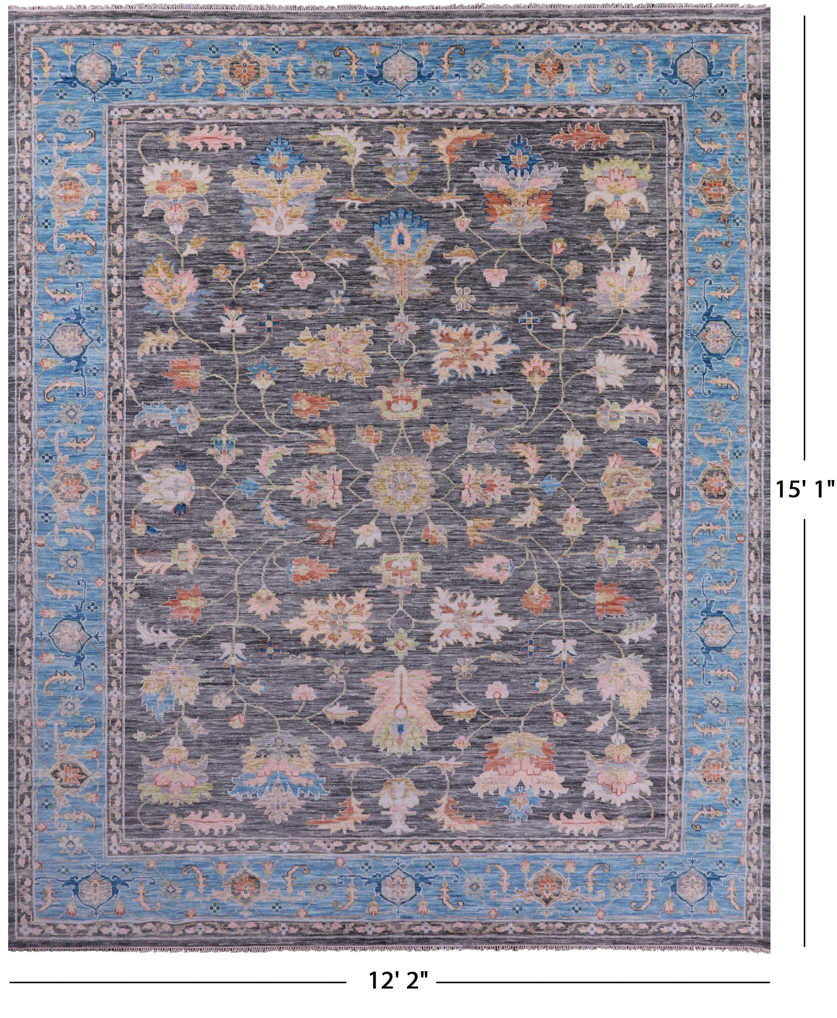 Grey Super Heriz Serapi Hand Knotted Wool Rug 12' 2" X 15' 1" - Q19091