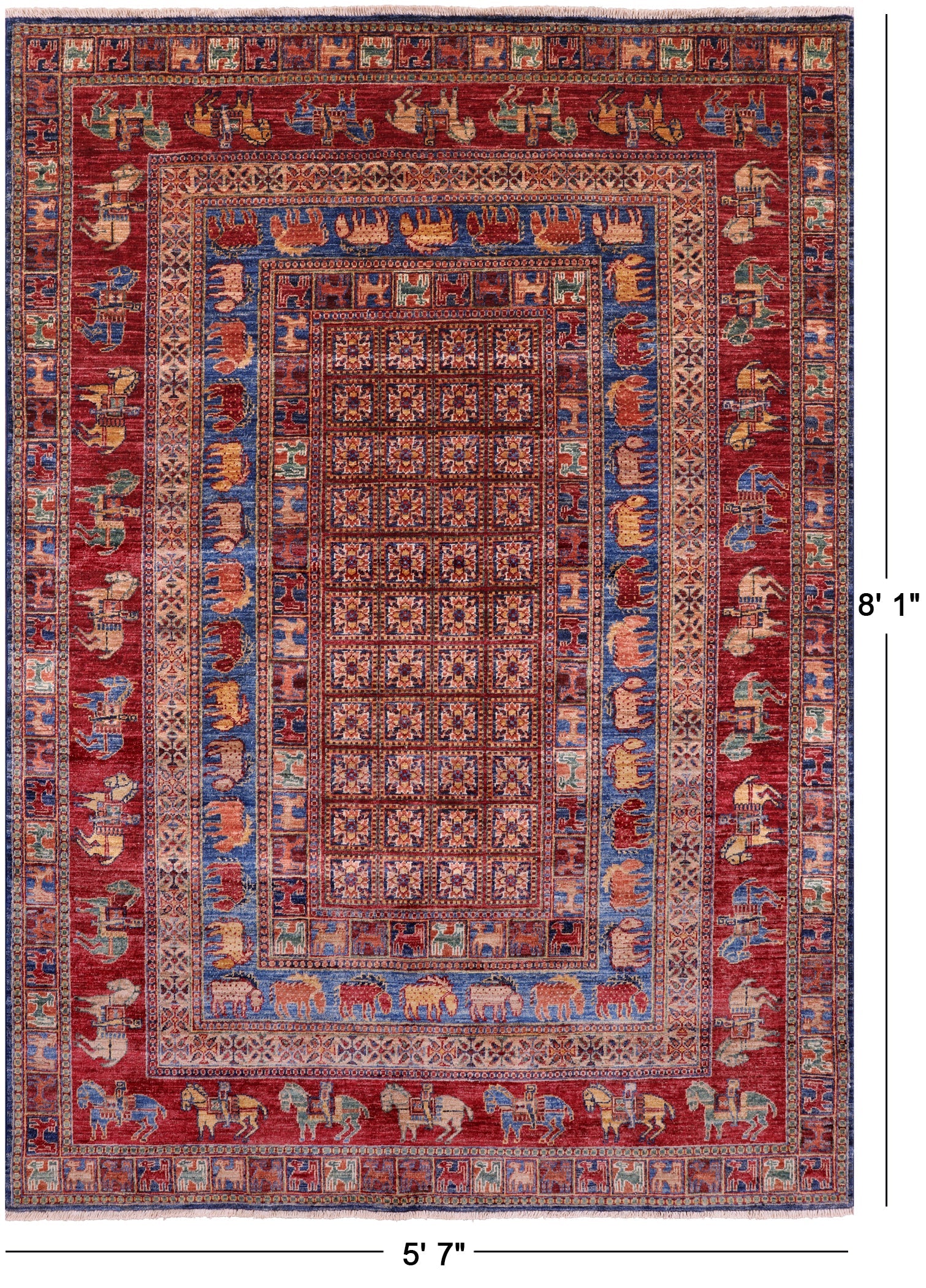 5' 7" X 8' 1" Hand-Knotted Pazyryk Historical Design Wool Rug - Q17343