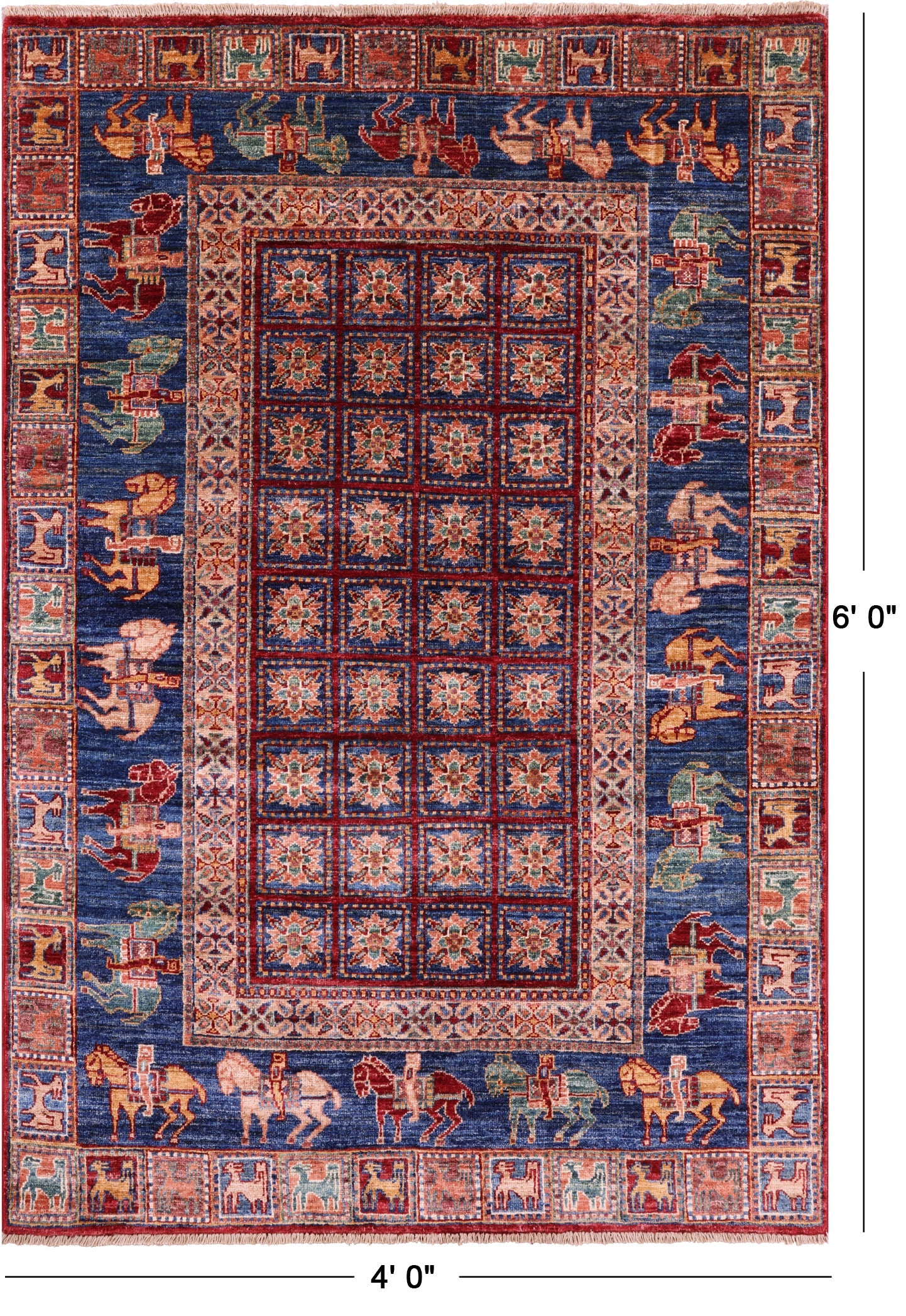 4' 0" X 6' 0" Handmade Pazyryk Historical Design Wool Rug - Q16898