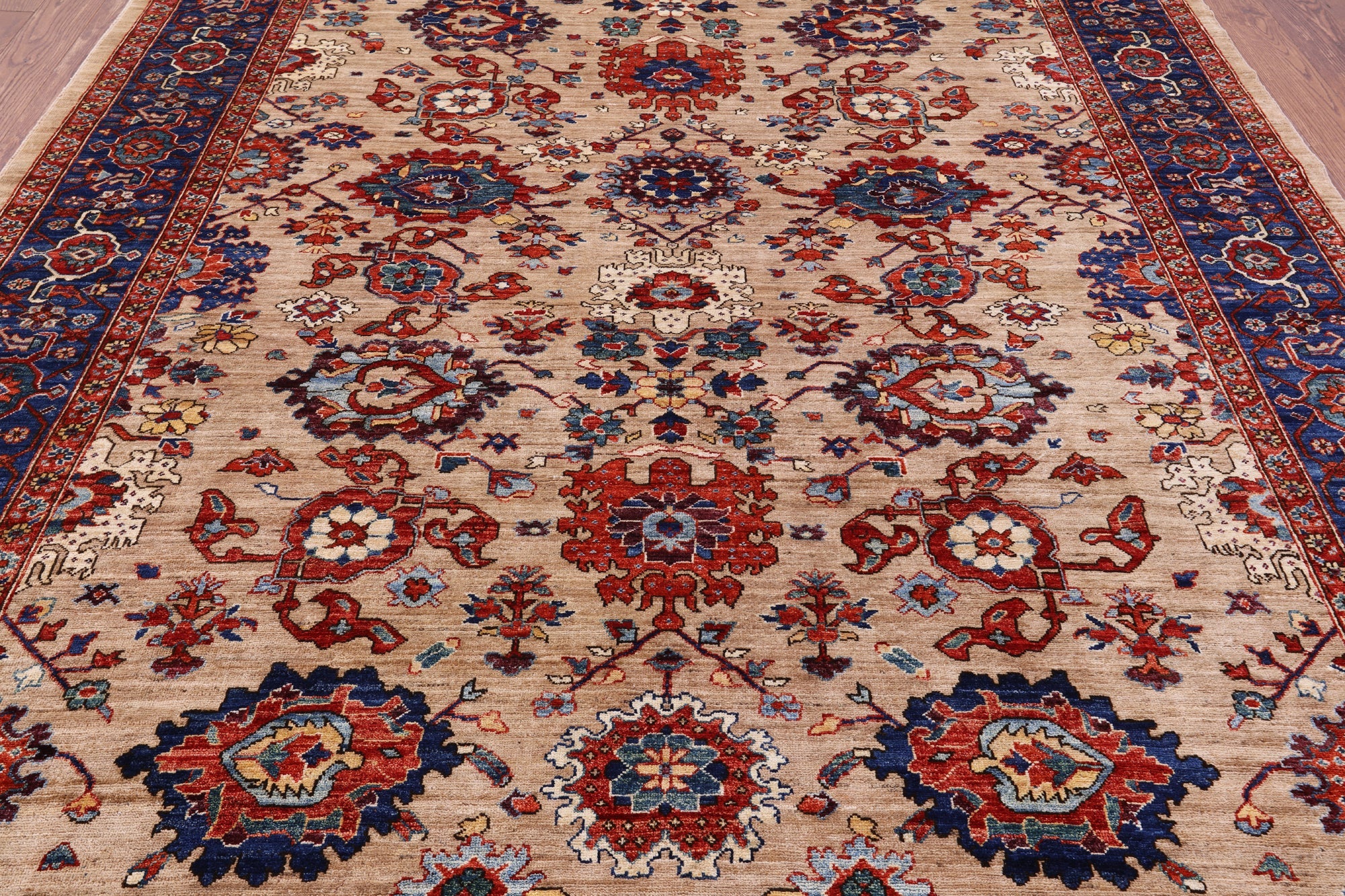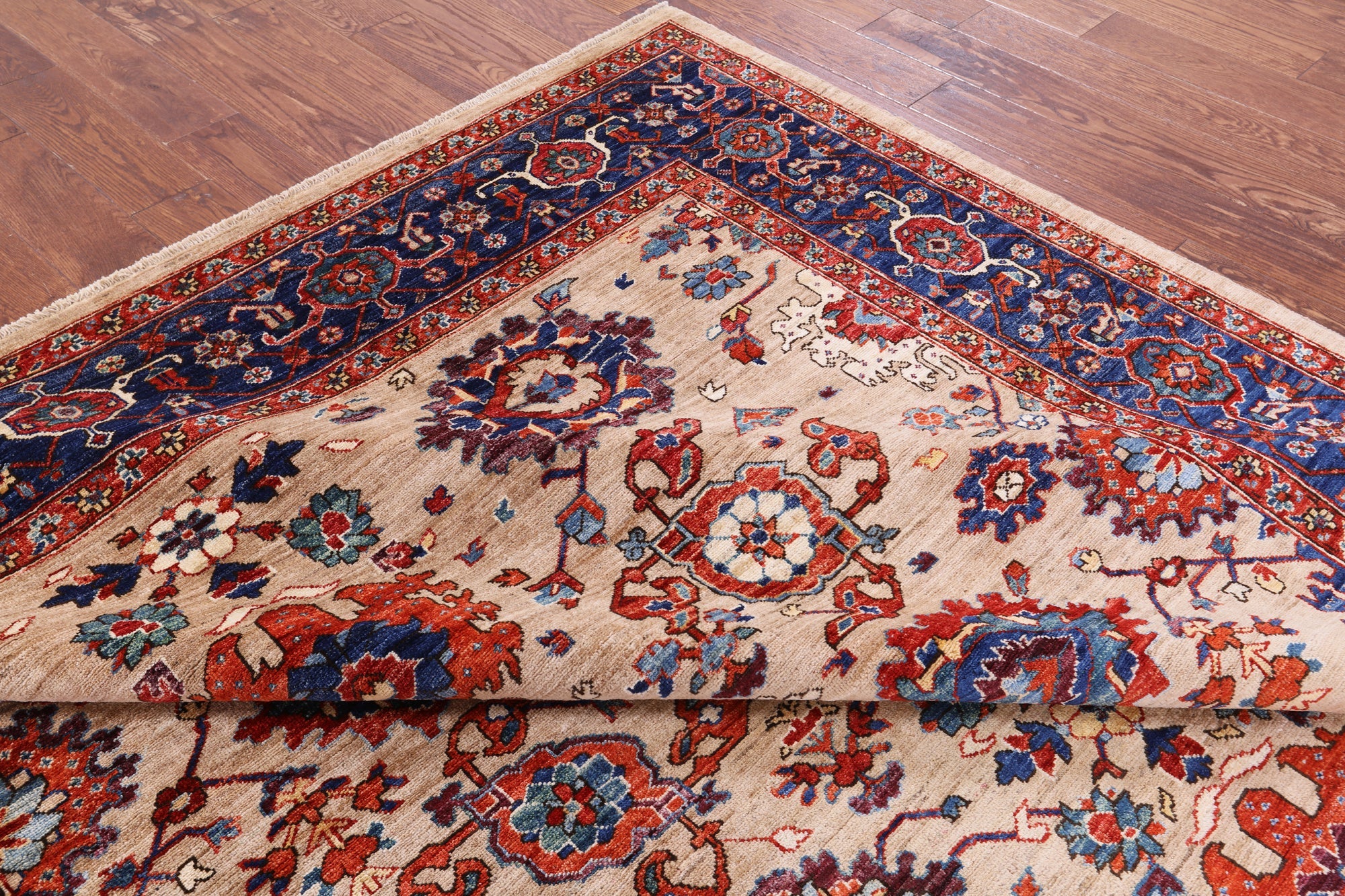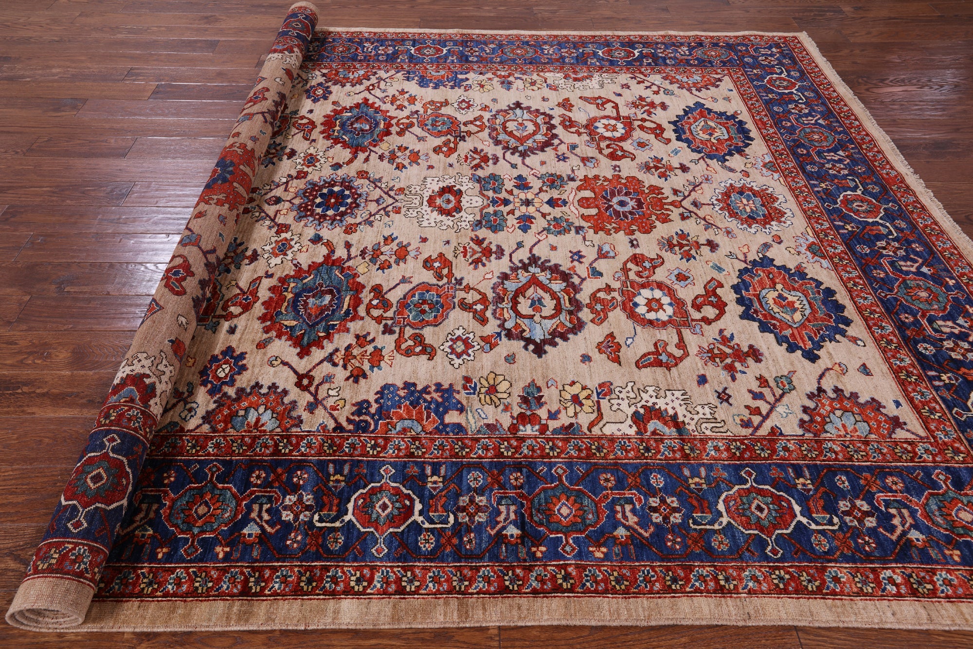 Heriz, Serapi rugs are well known for their bold and angular designs. Many being symmetric, they withhold boldly done geometric and floral-inspired shapes. These shapes are brought out with rich reds, blues, greens, and yellows contrasted against ivory. Heriz, Serapi rugs are very elegant and durable, perfect for a variety of different rooms and spaces within a home.