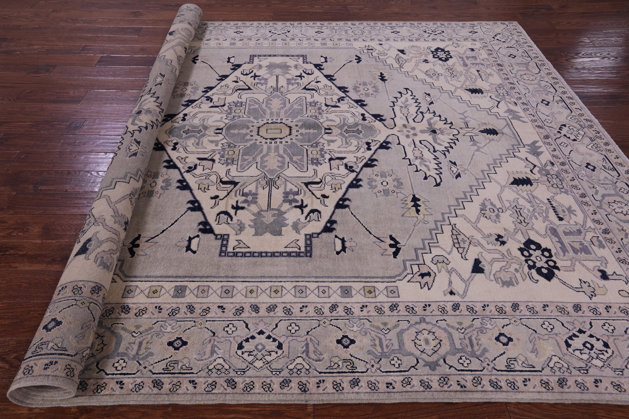 Light Grey Hand Knotted Persian Heriz Serapi Wool Rug 8' 1" X 10' 0" - Q23909 is backordered and will ship as soon as it is back in stock.