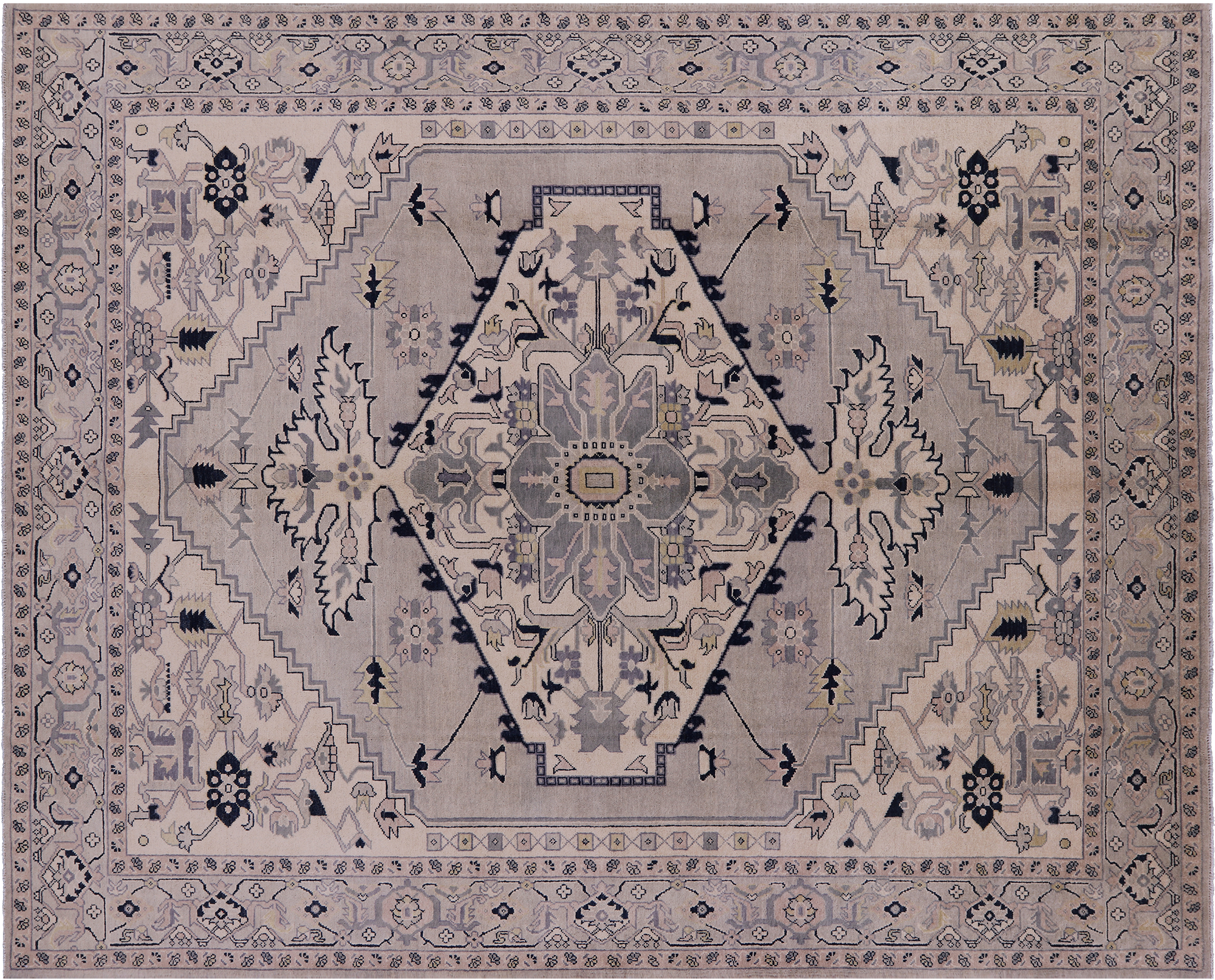 Light Grey Hand Knotted Persian Heriz Serapi Wool Rug 8' 1" X 10' 0" - Q23909
