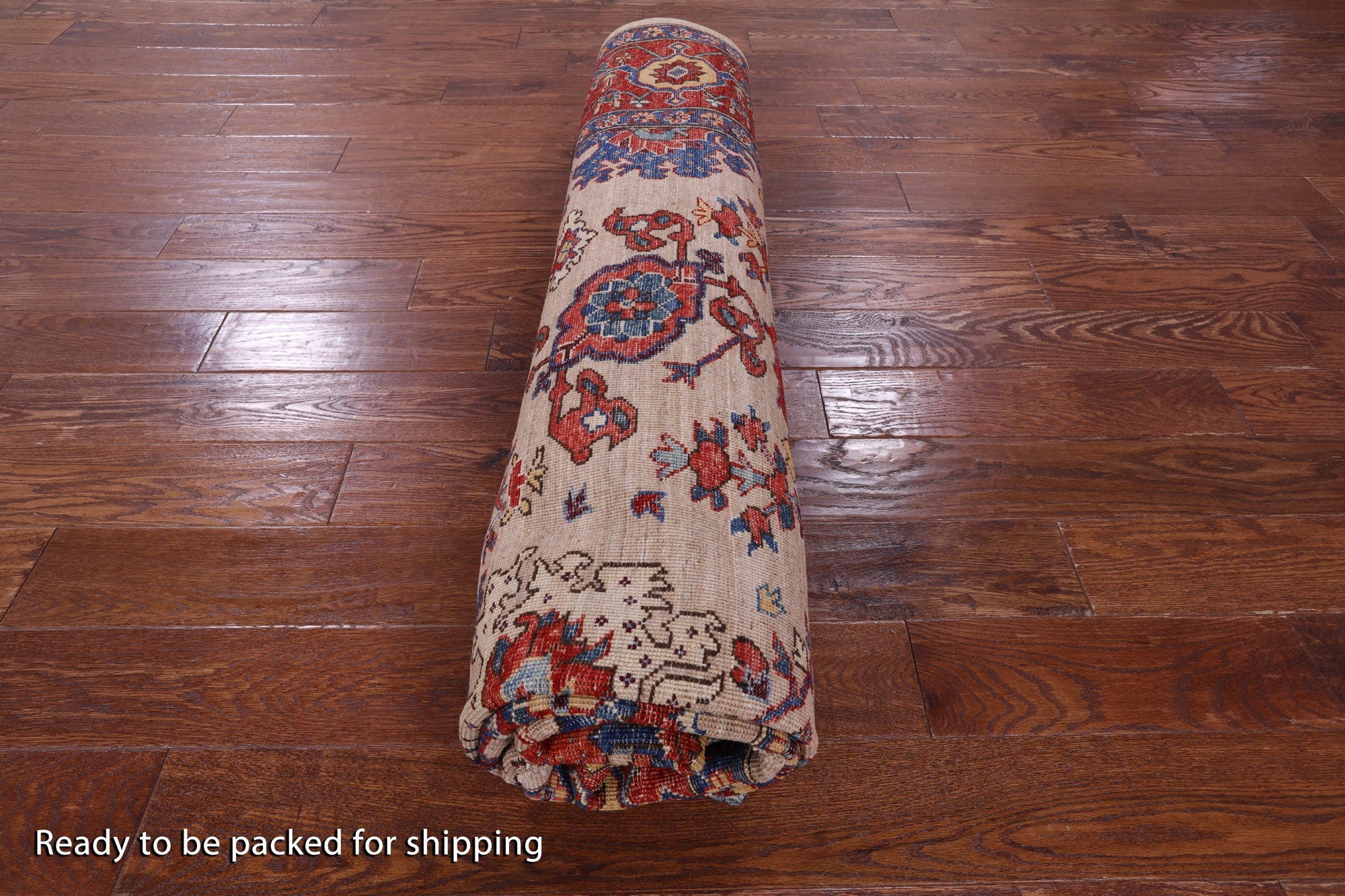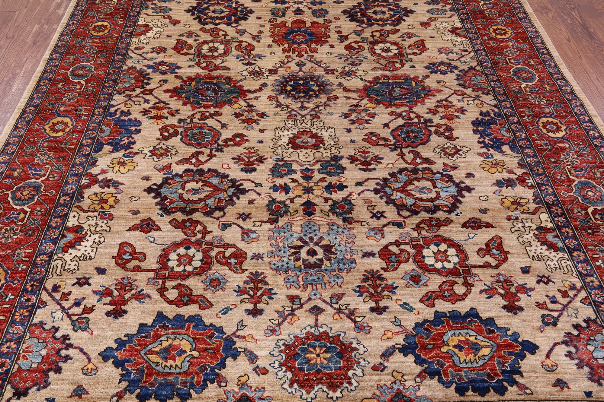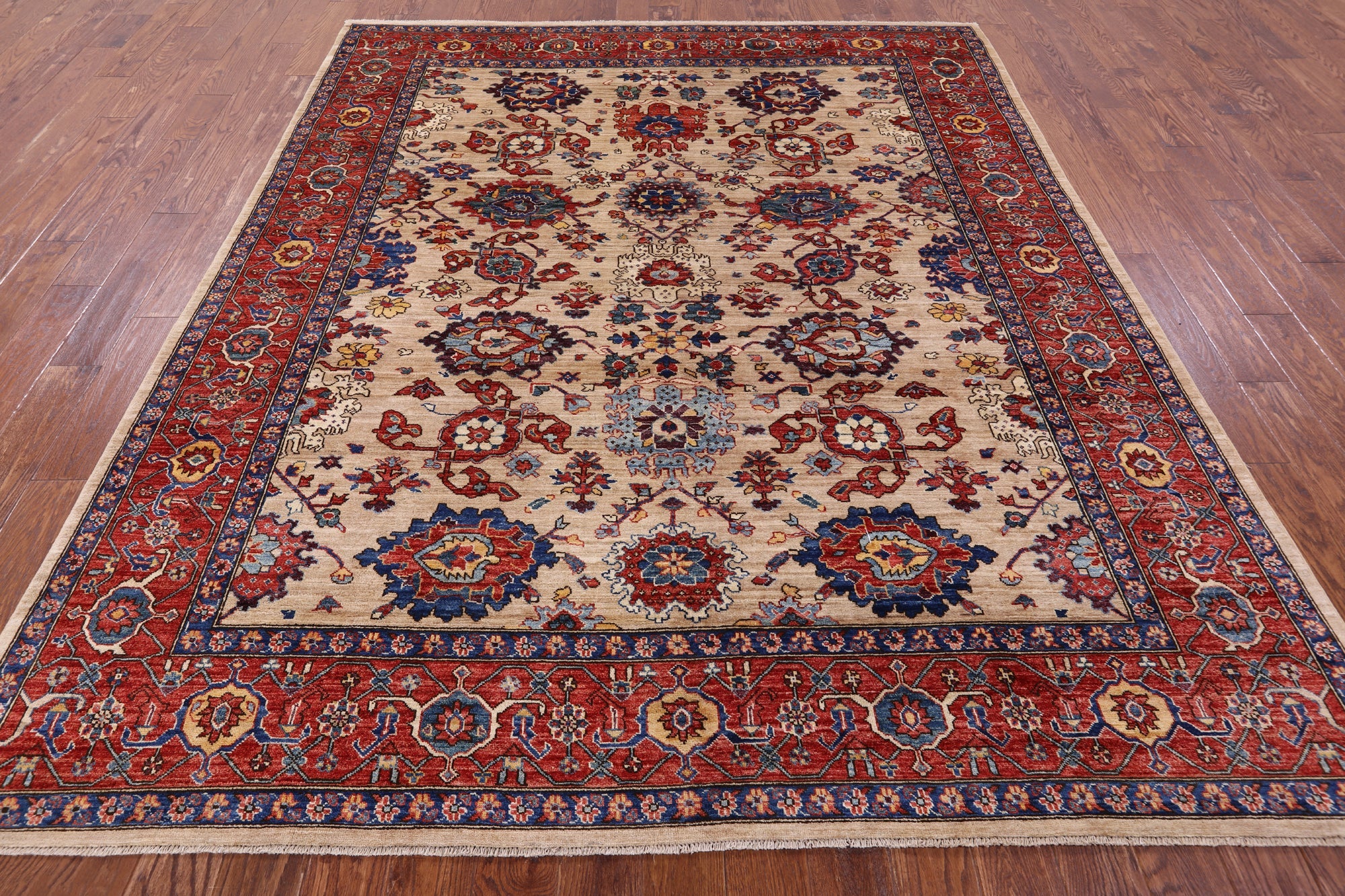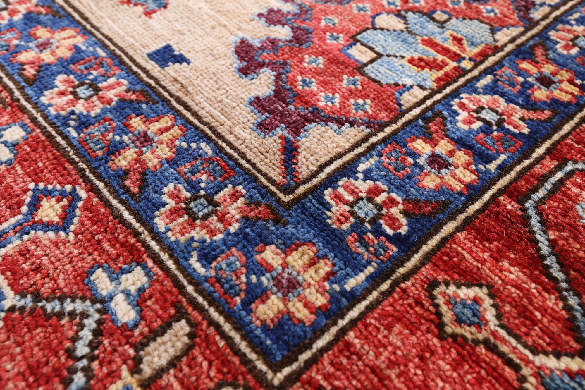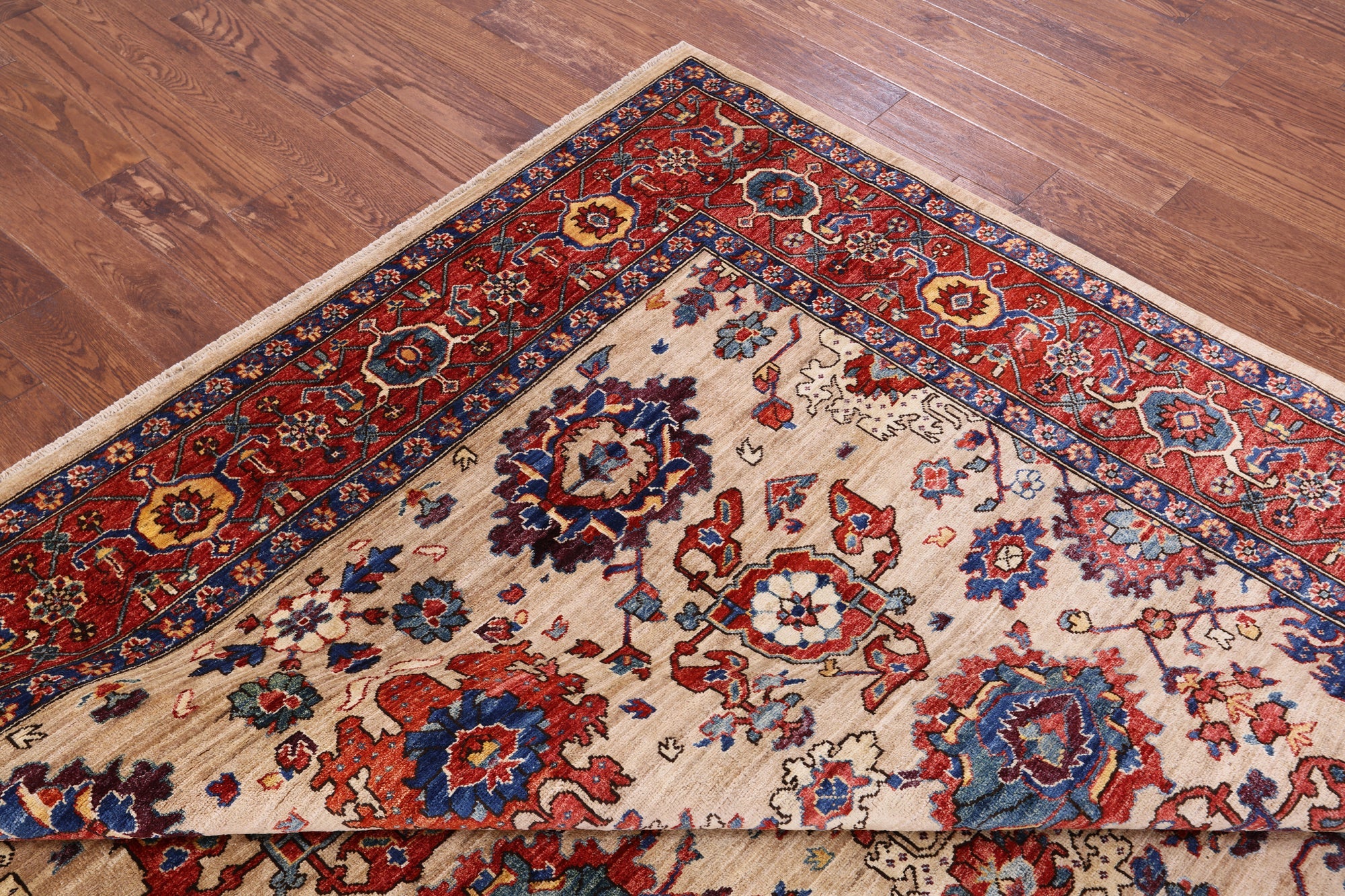 Heriz, Serapi rugs are well known for their bold and angular designs. Many being symmetric, they withhold boldly done geometric and floral-inspired shapes. These shapes are brought out with rich reds, blues, greens, and yellows contrasted against ivory. Heriz, Serapi rugs are very elegant and durable, perfect for a variety of different rooms and spaces within a home.