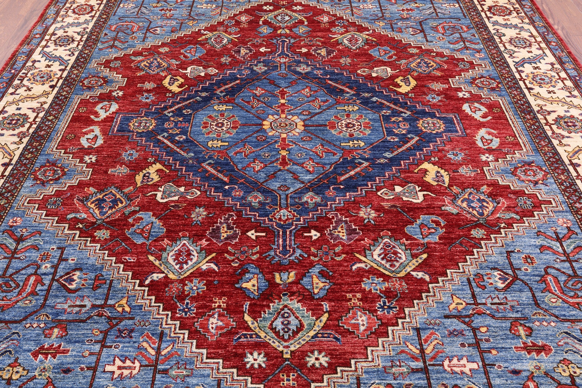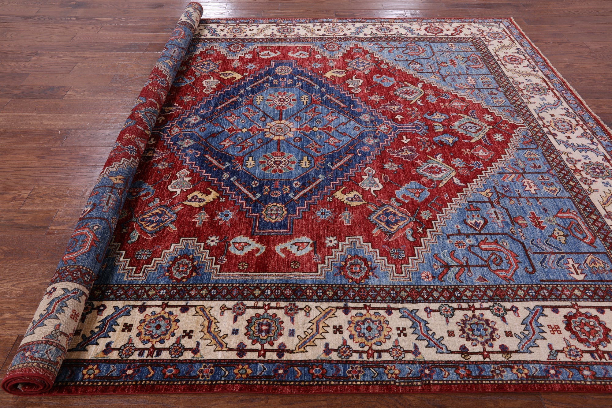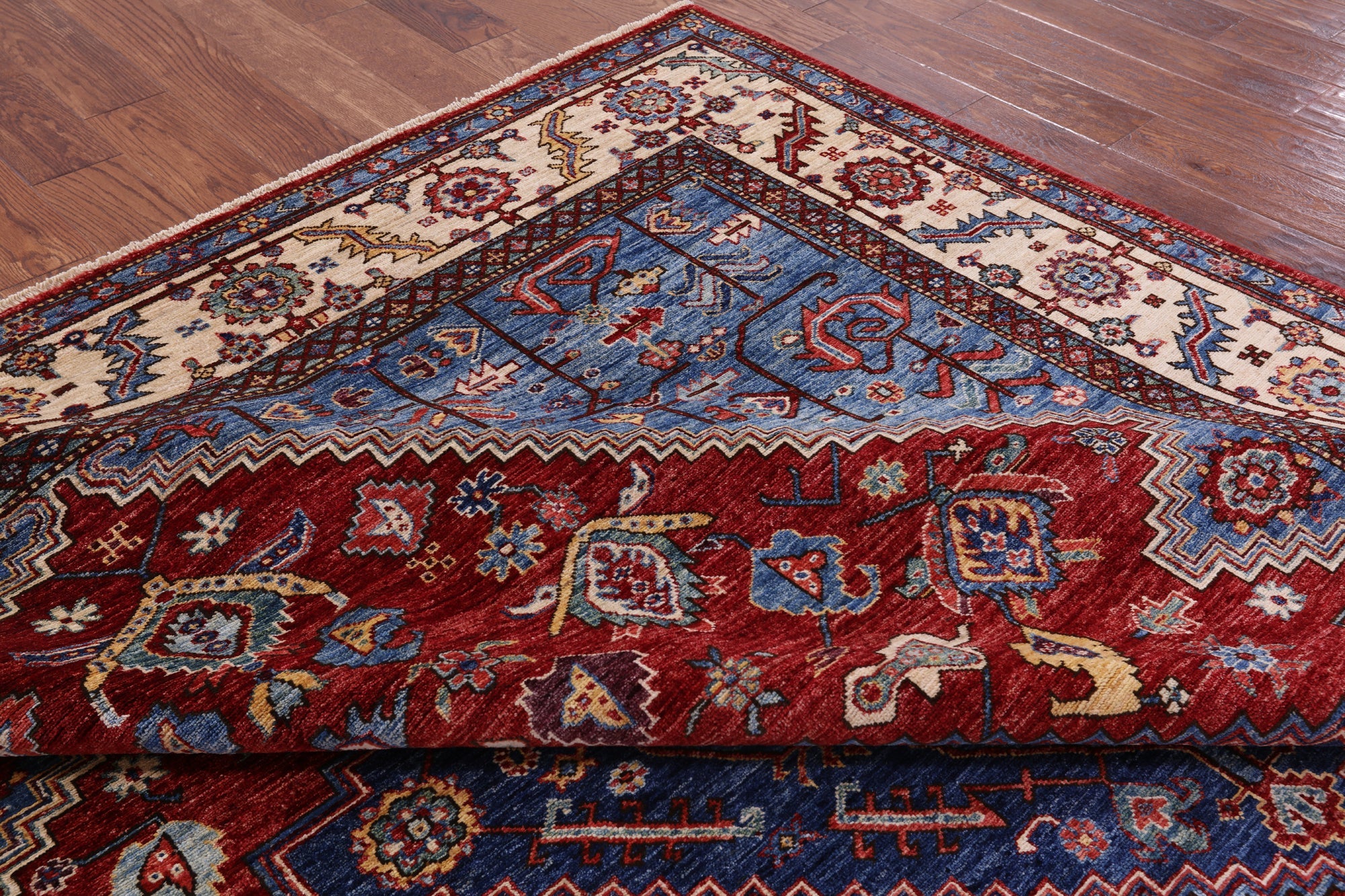 The nature-inspired color palette of Serapi/Heriz rugs gives them an antique look, which has historically sought after for many years. They commonly feature intricate medallions, followed by abstract florals and geometric designs. What makes the Serapi/Heriz so desirable, is their high endurance and longevity under high traffic. Serapi/Heriz rugs are constructed by a labor intensive hand knotting process, made from thick plush piles of wool.