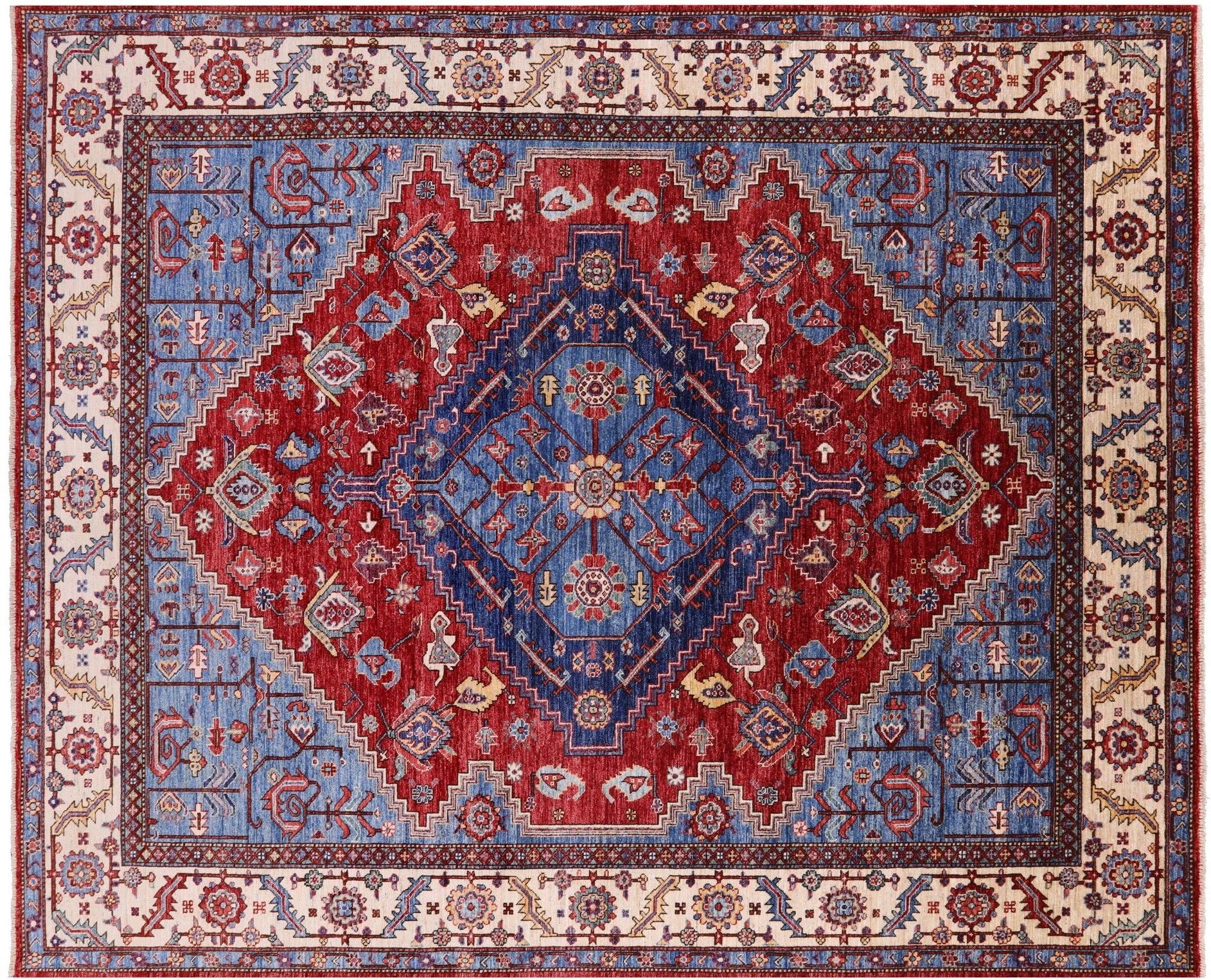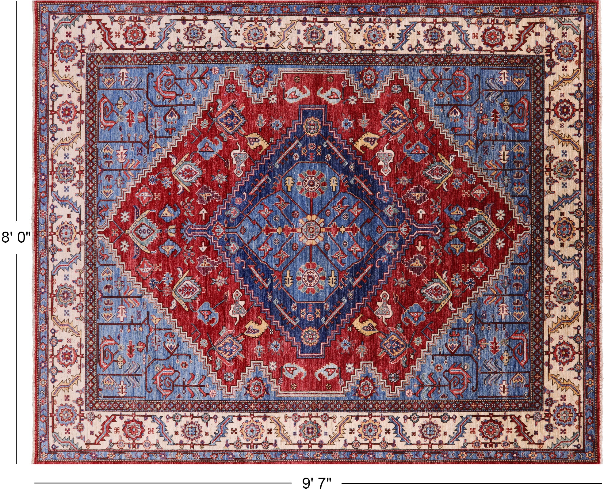 Red 8' 0" X 9' 7" Persian Fine Serapi Hand-Knotted Wool Rug - Q5608