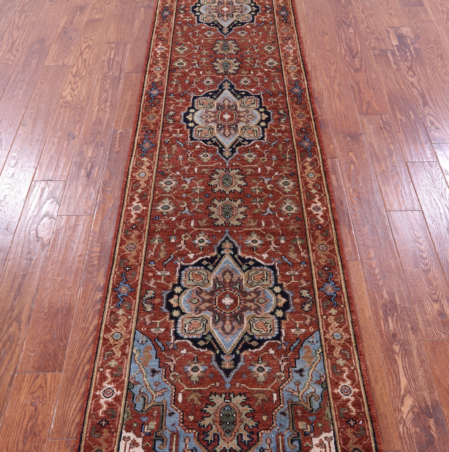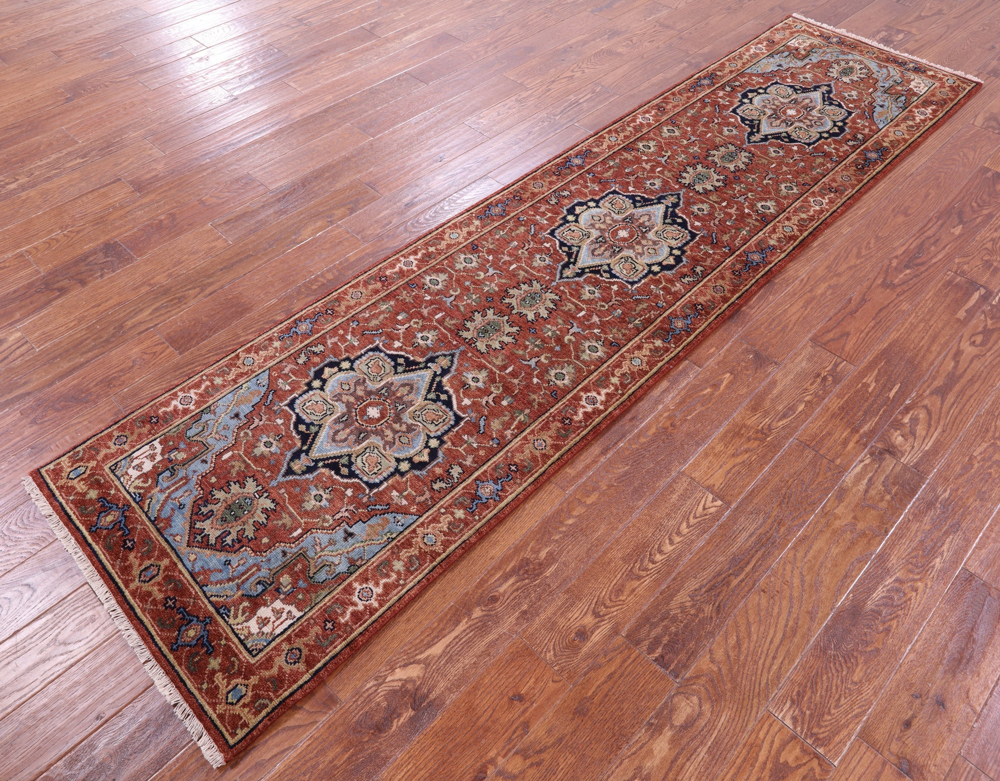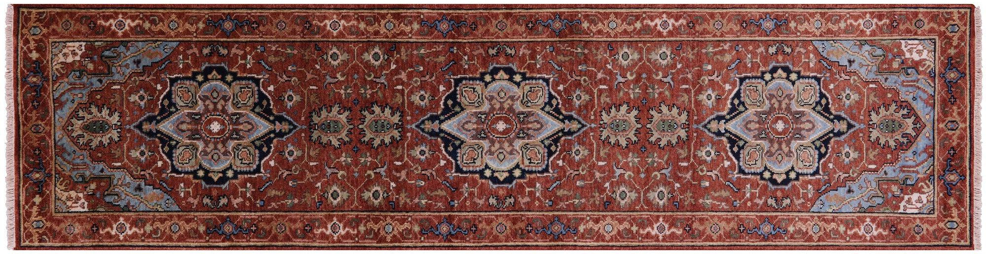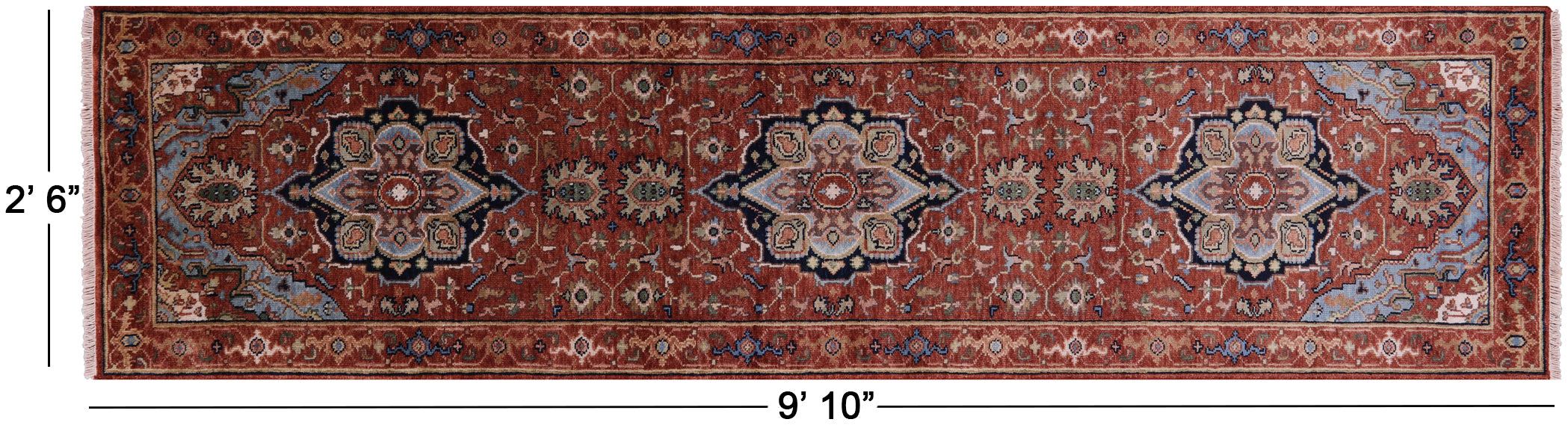 Rust Handmade Heriz Serapi Wool Runner Rug 2' 6" X 9' 10" - Q21066