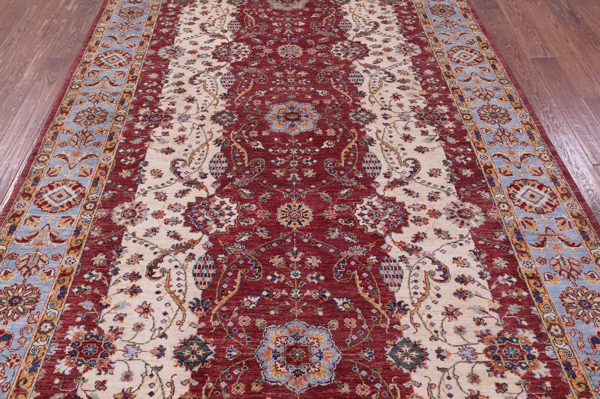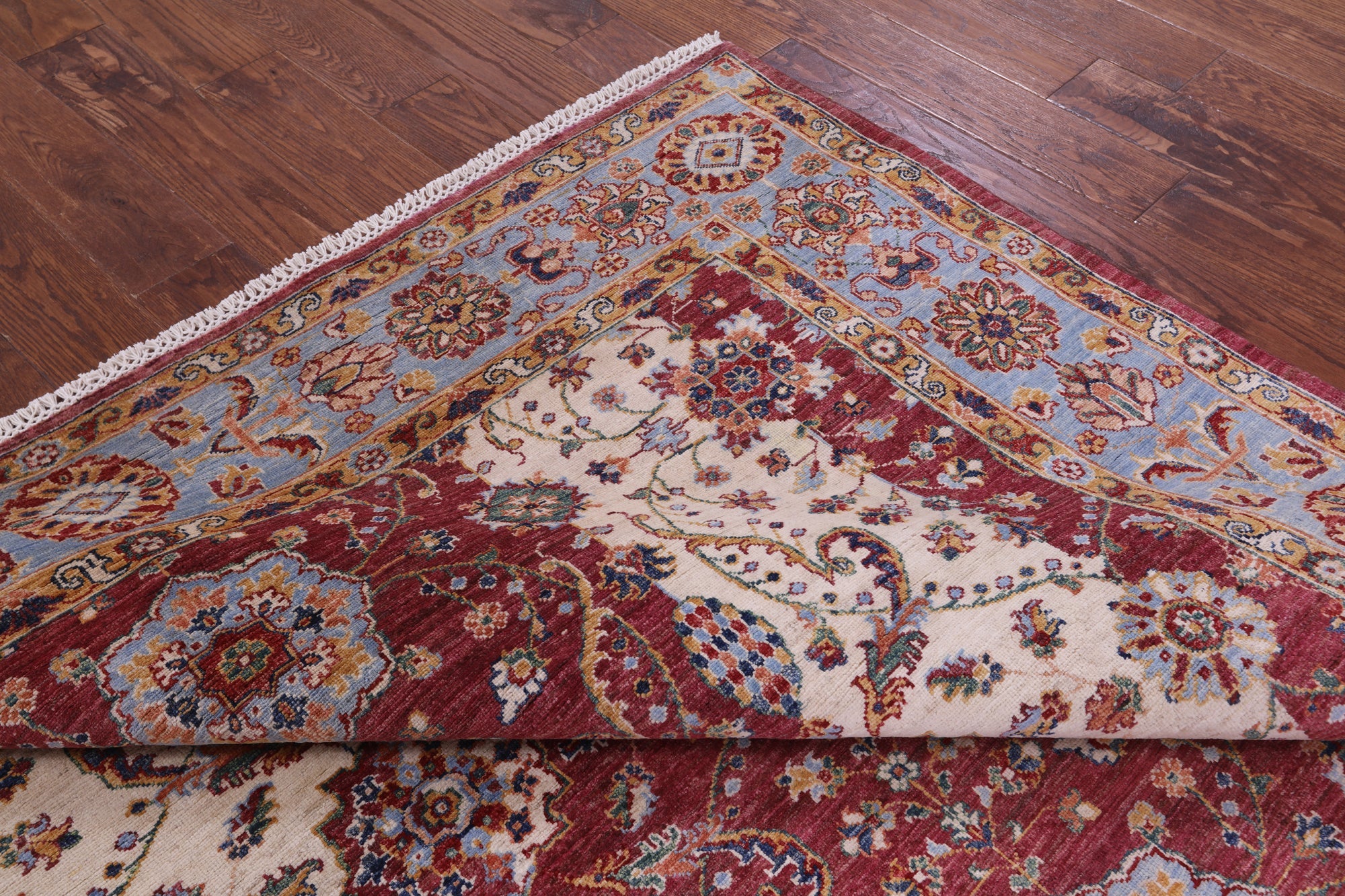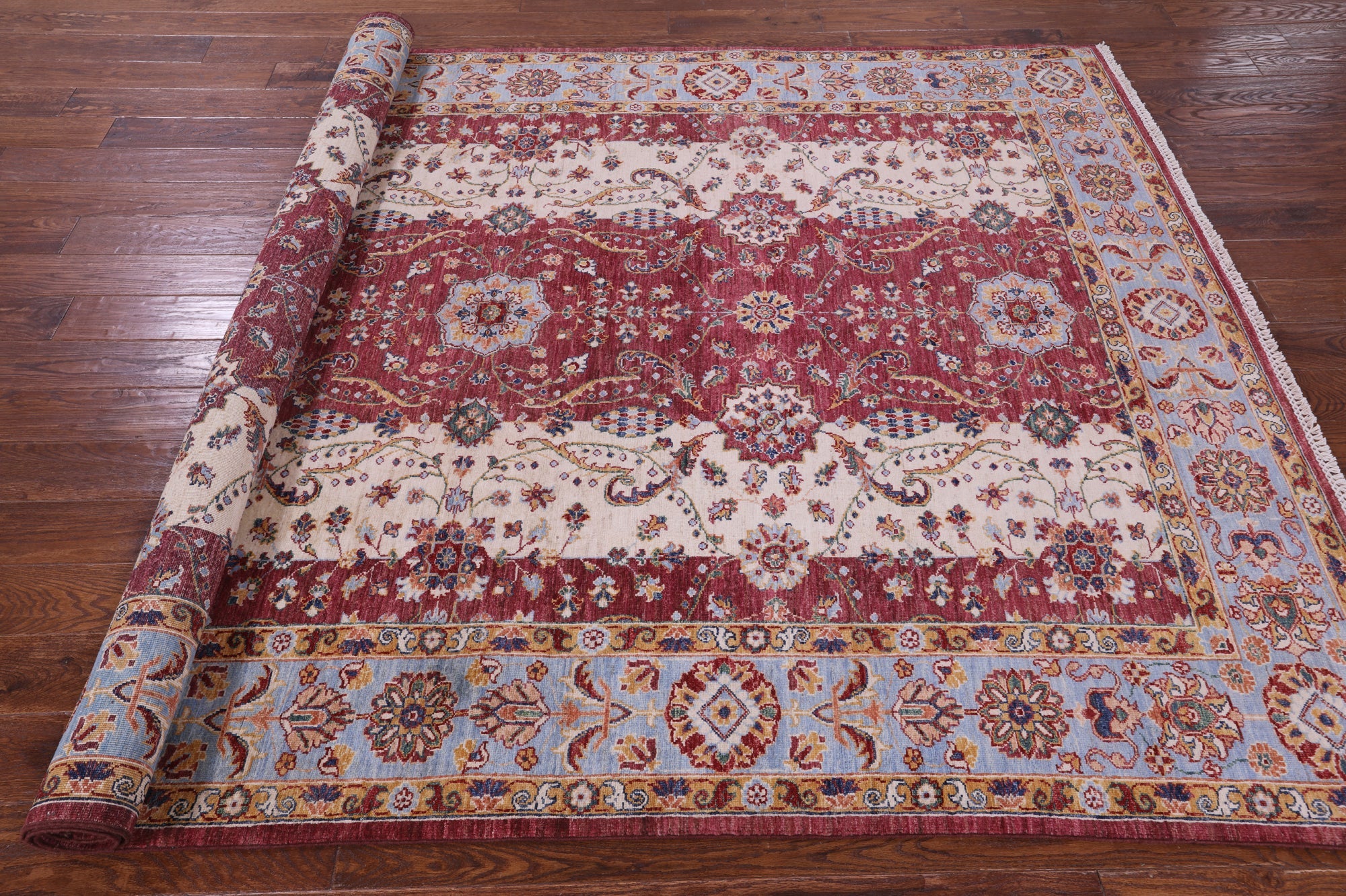 Heriz, Serapi rugs are well known for their bold and angular designs. Many being symmetric, they withhold boldly done geometric and floral-inspired shapes. These shapes are brought out with rich reds, blues, greens, and yellows contrasted against ivory. Heriz, Serapi rugs are very elegant and durable, perfect for a variety of different rooms and spaces within a home.