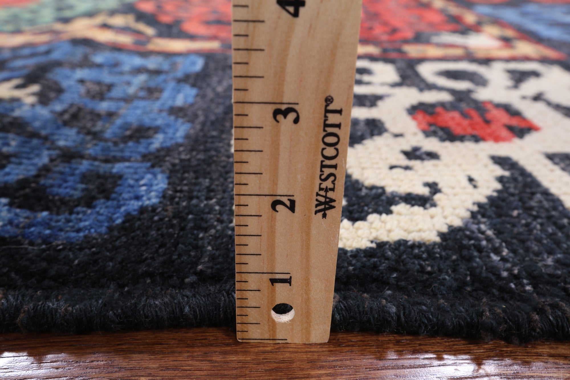 Black 5' Square Ikat Hand-Knotted Wool Rug - P6440 is backordered and will ship as soon as it is back in stock.