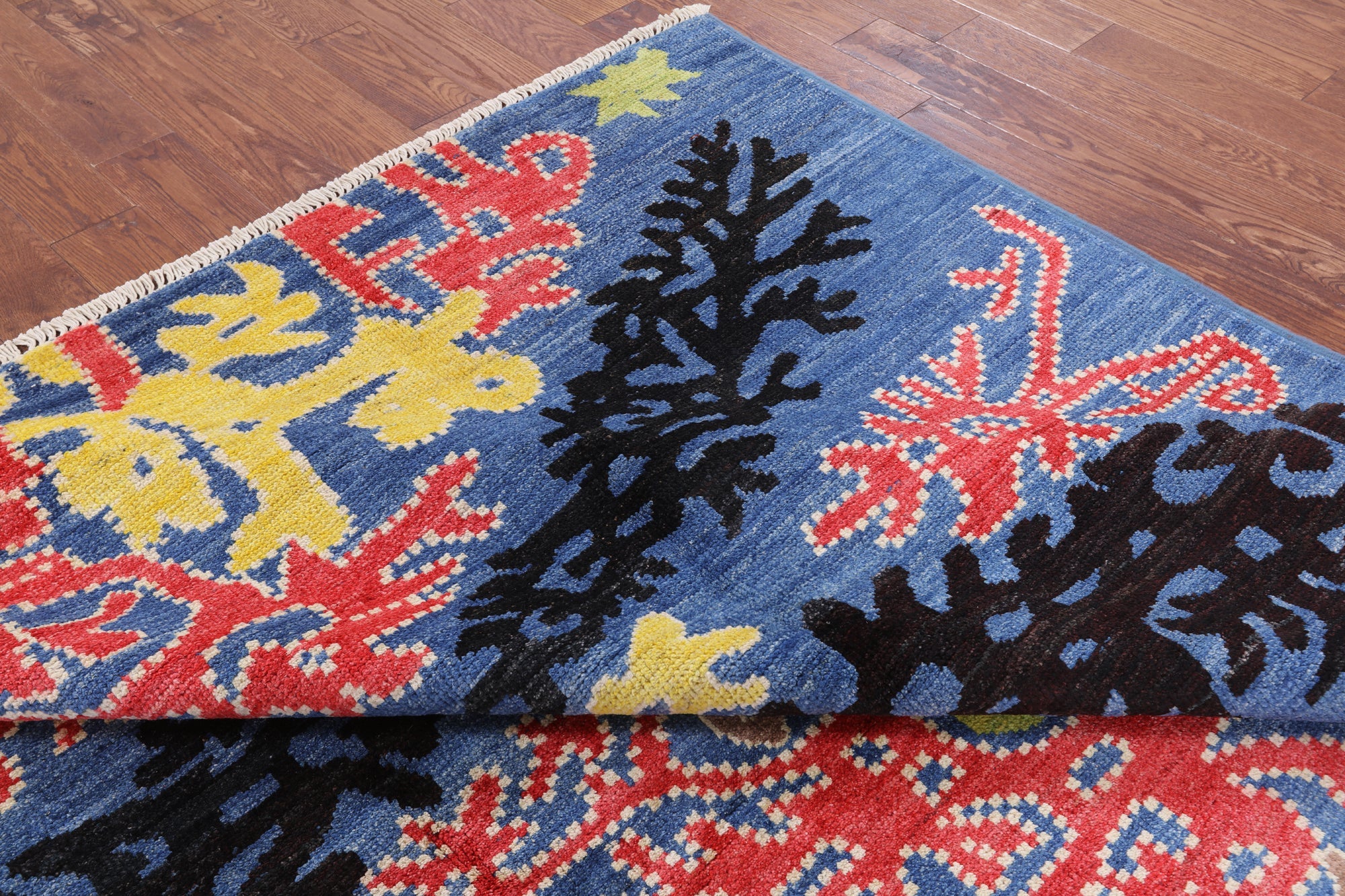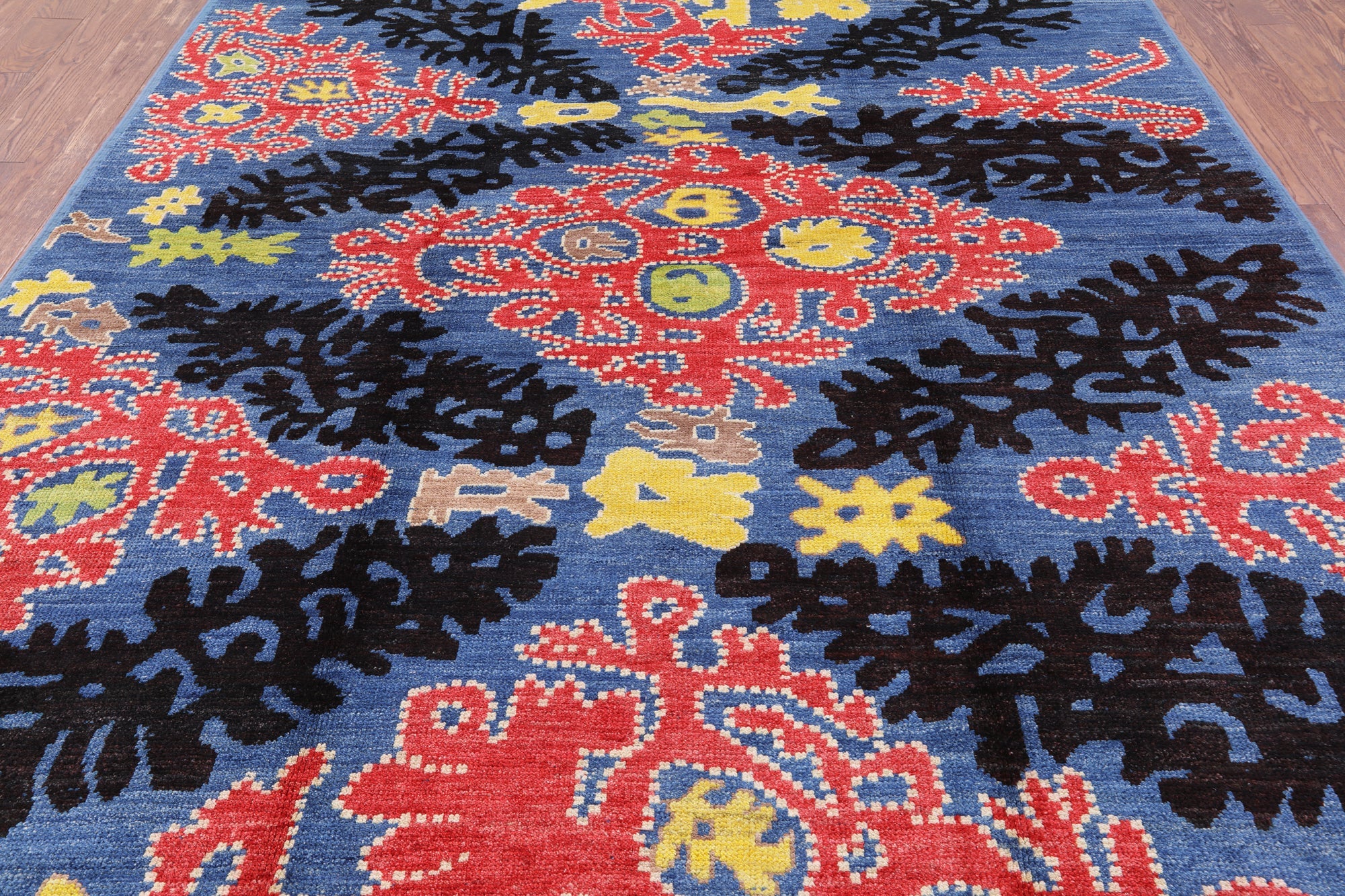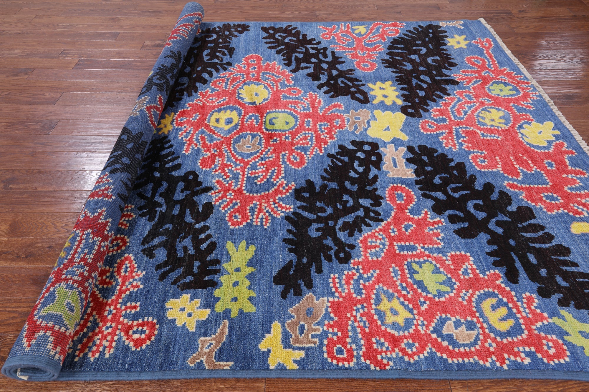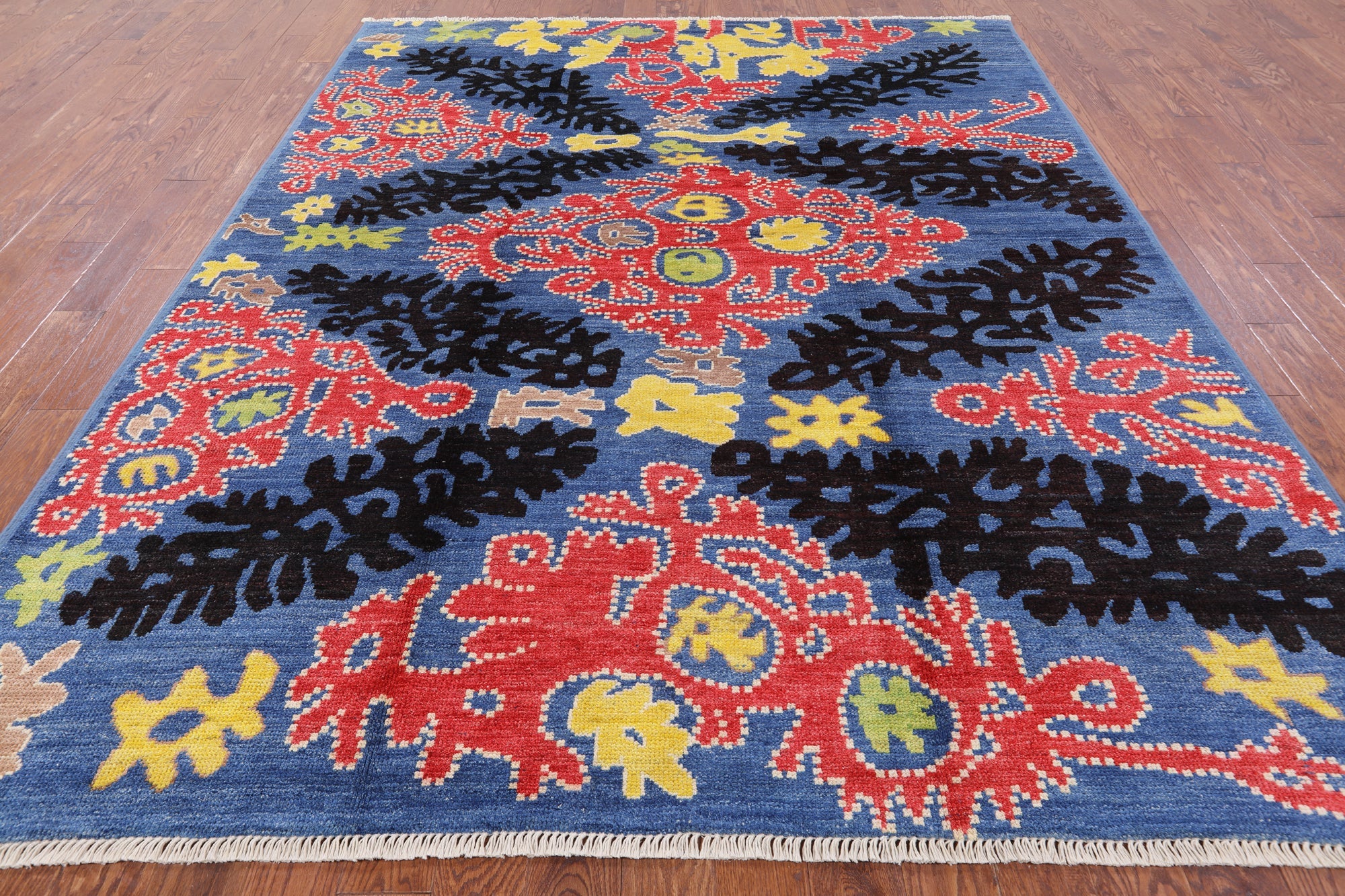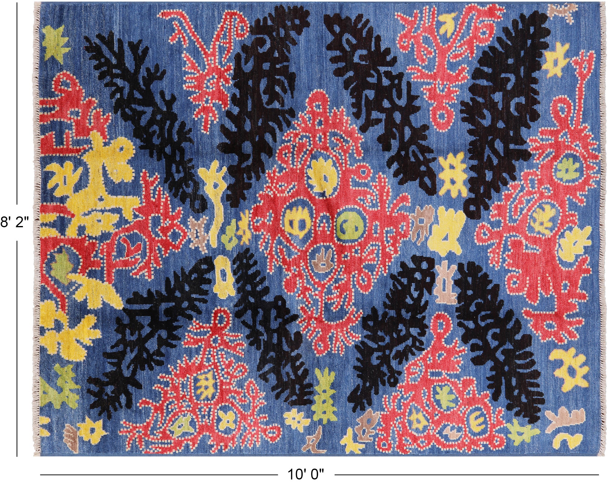 Blue 8' 2" X 10' 0" Ikat Handmade Wool Area Rug - P5529