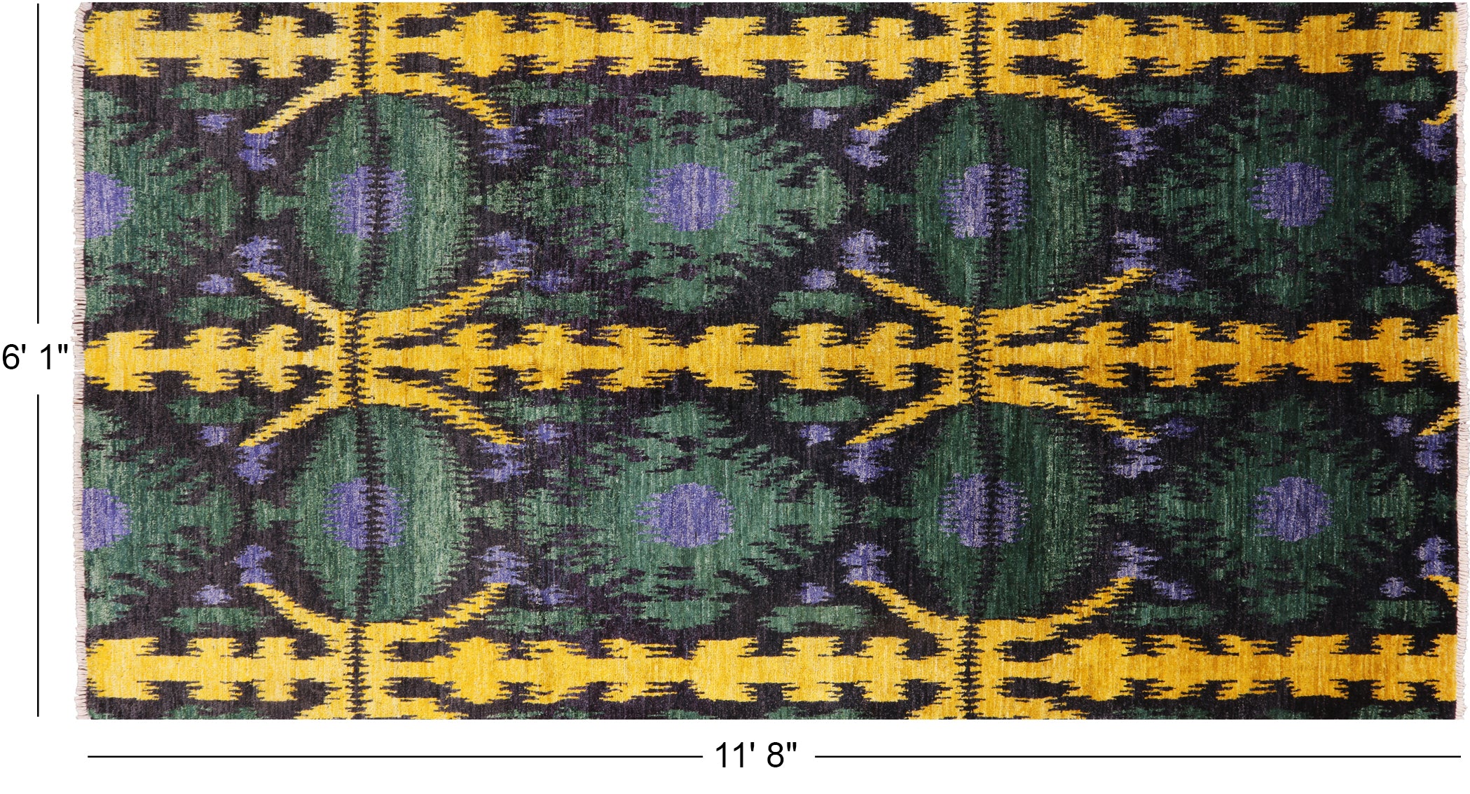 6' 1" X 11' 8" Hand Knotted Ikat Area Rug - P6022