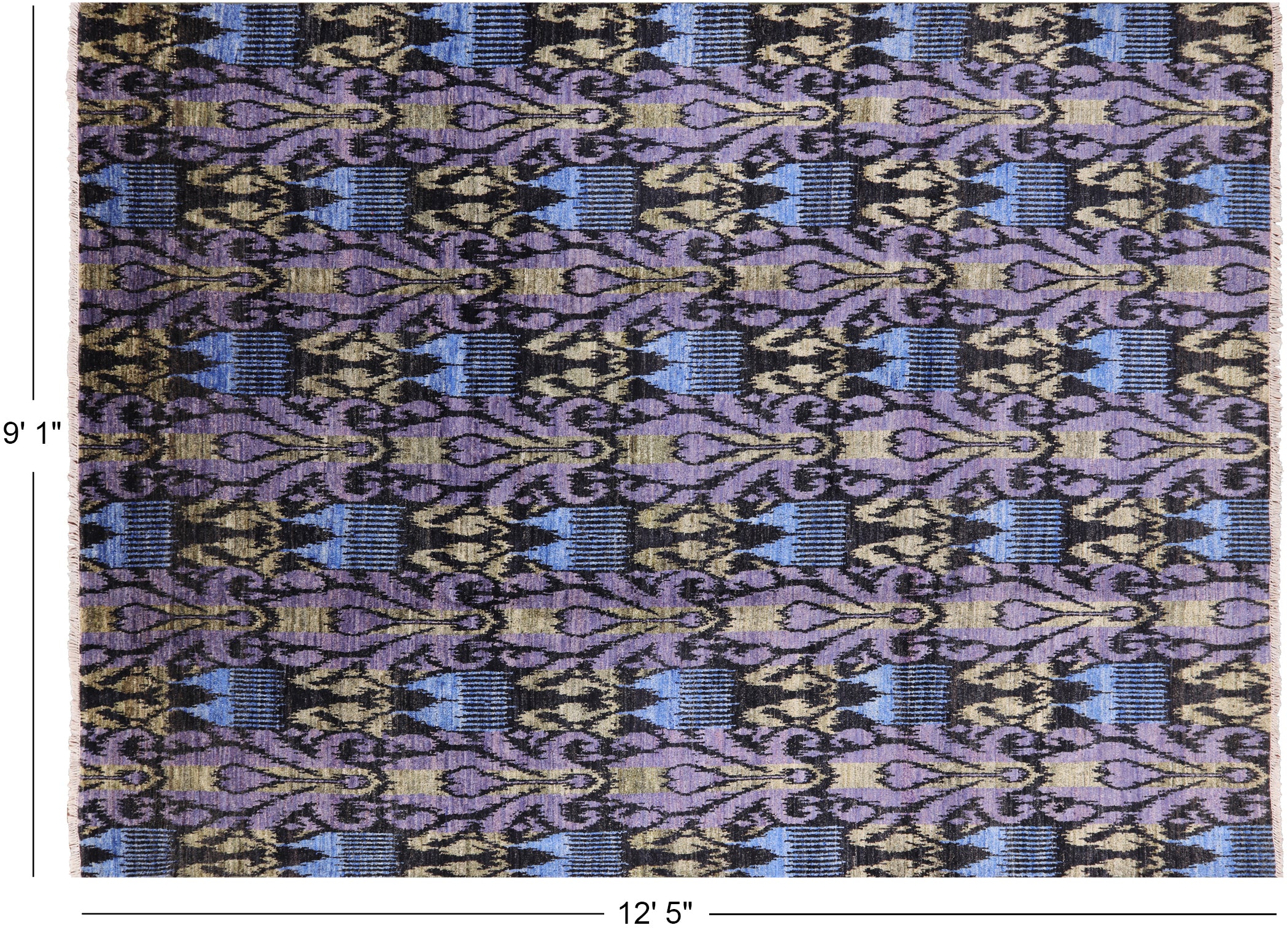 9' 1" X 12' 5" Ikat Hand Knotted Wool Rug - P3814