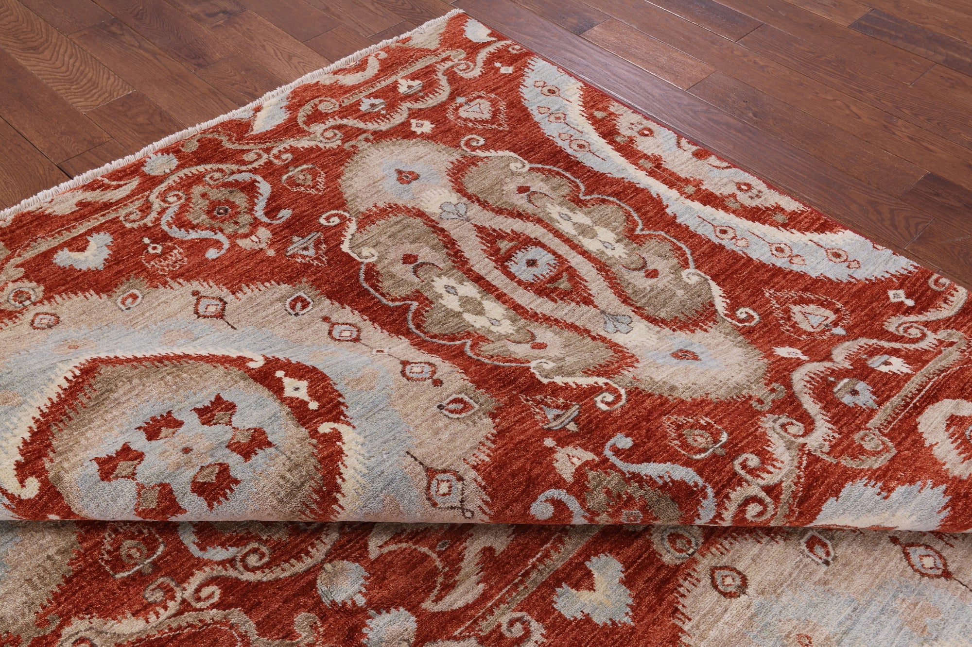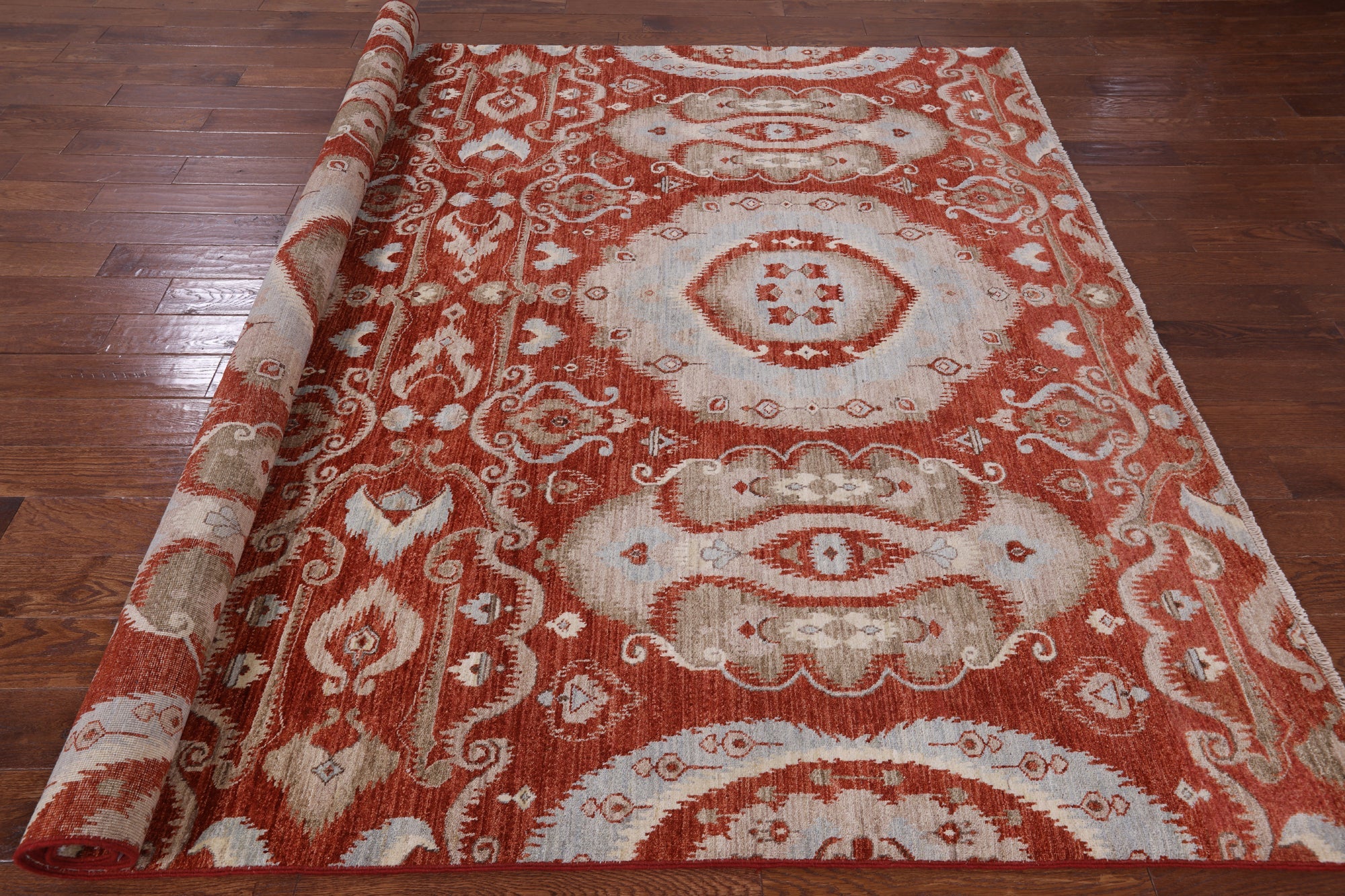Red 8' 3" X 10' 3" Ikat Hand Knotted Wool Rug - H5960 is backordered and will ship as soon as it is back in stock.
